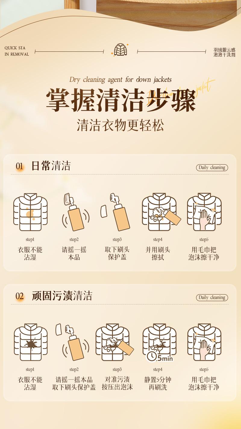Chamarra de plumón estilo medio Espuma tipo nube Agente de limpieza en seco Tipo espuma Sin lavado Quitamanchas de aceite Quitamanchas Limpiador de ropa