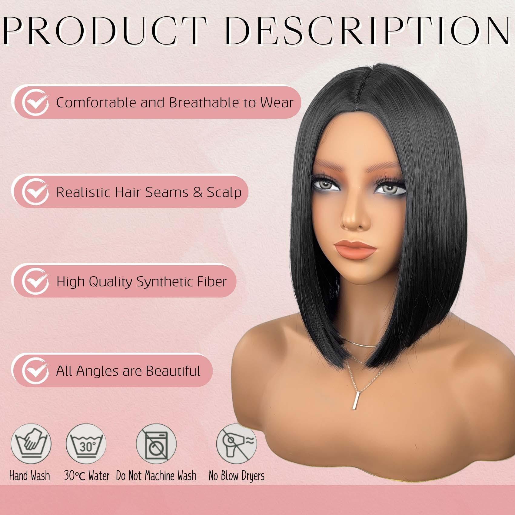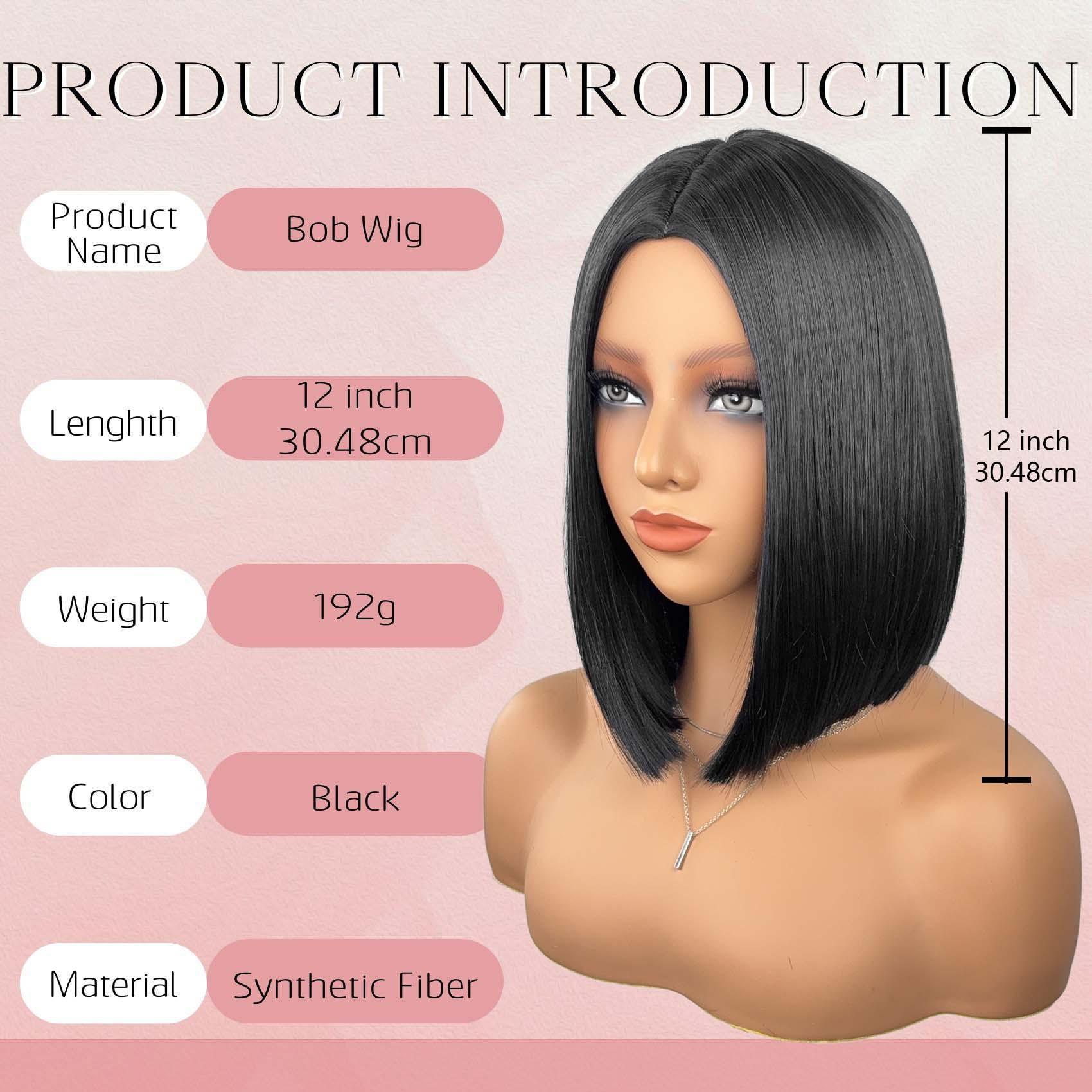 Peluca sintética europea y americana transfronteriza de alta temperatura Peluca Bob recta Cabello corto Peluca de fibra de alta temperatura