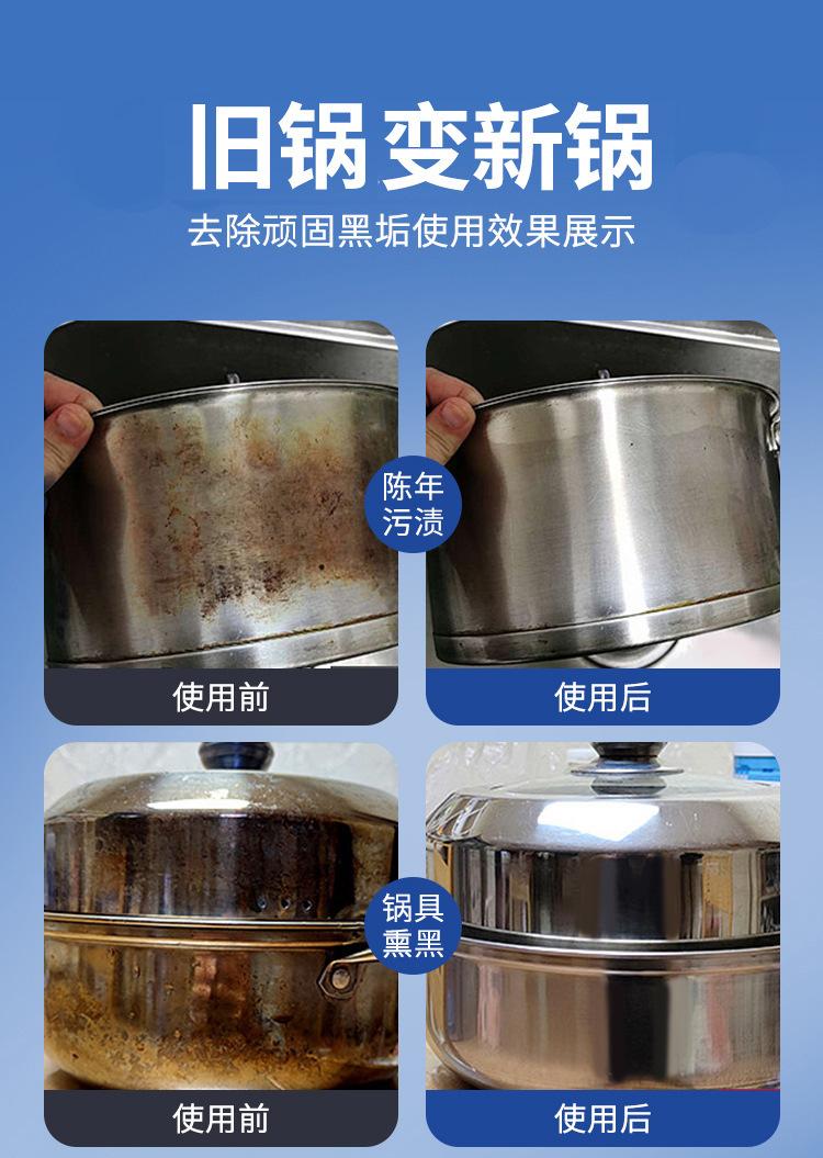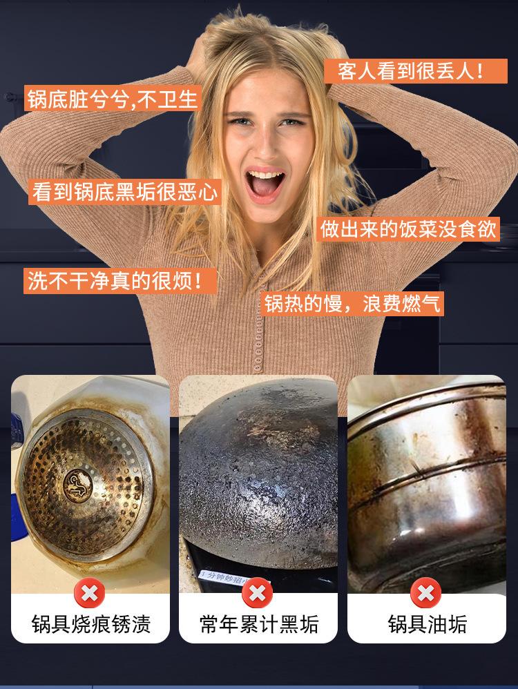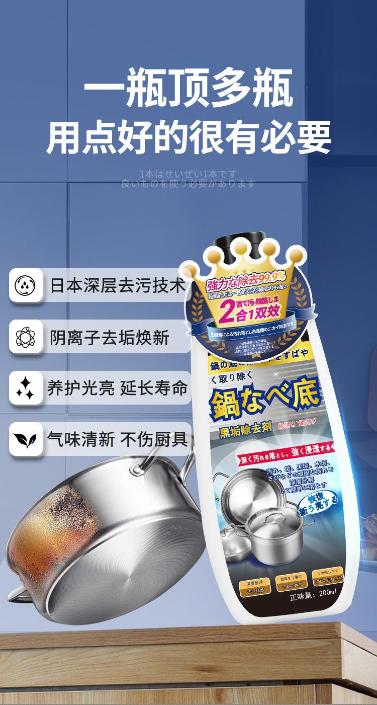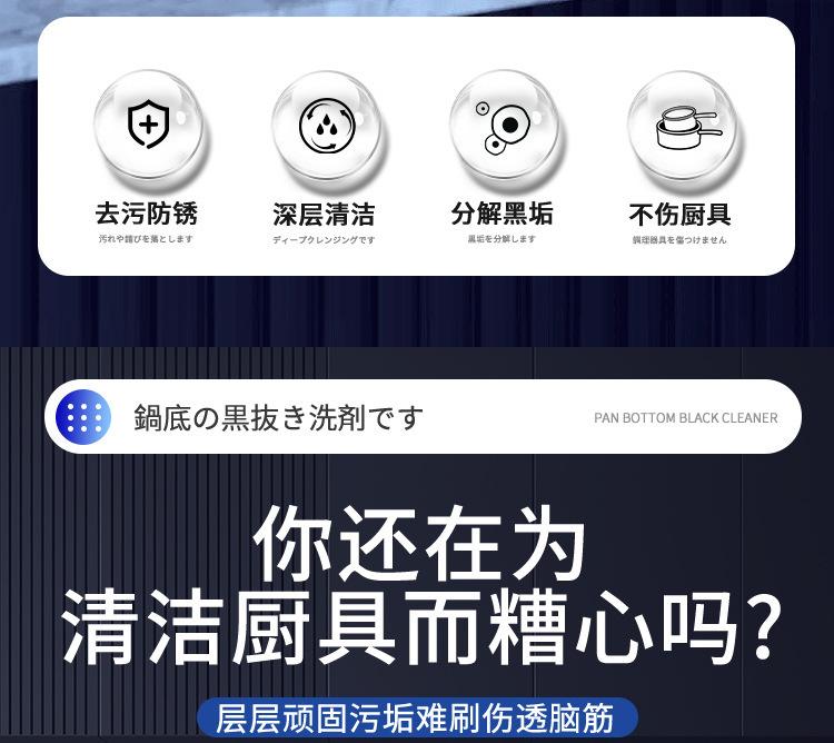 Limpiador de sarro negro para fondo de olla de almacén global, limpiador multifuncional para ollas de hierro y acero inoxidable, potente descontaminación y eliminación de sarro para el hogar.