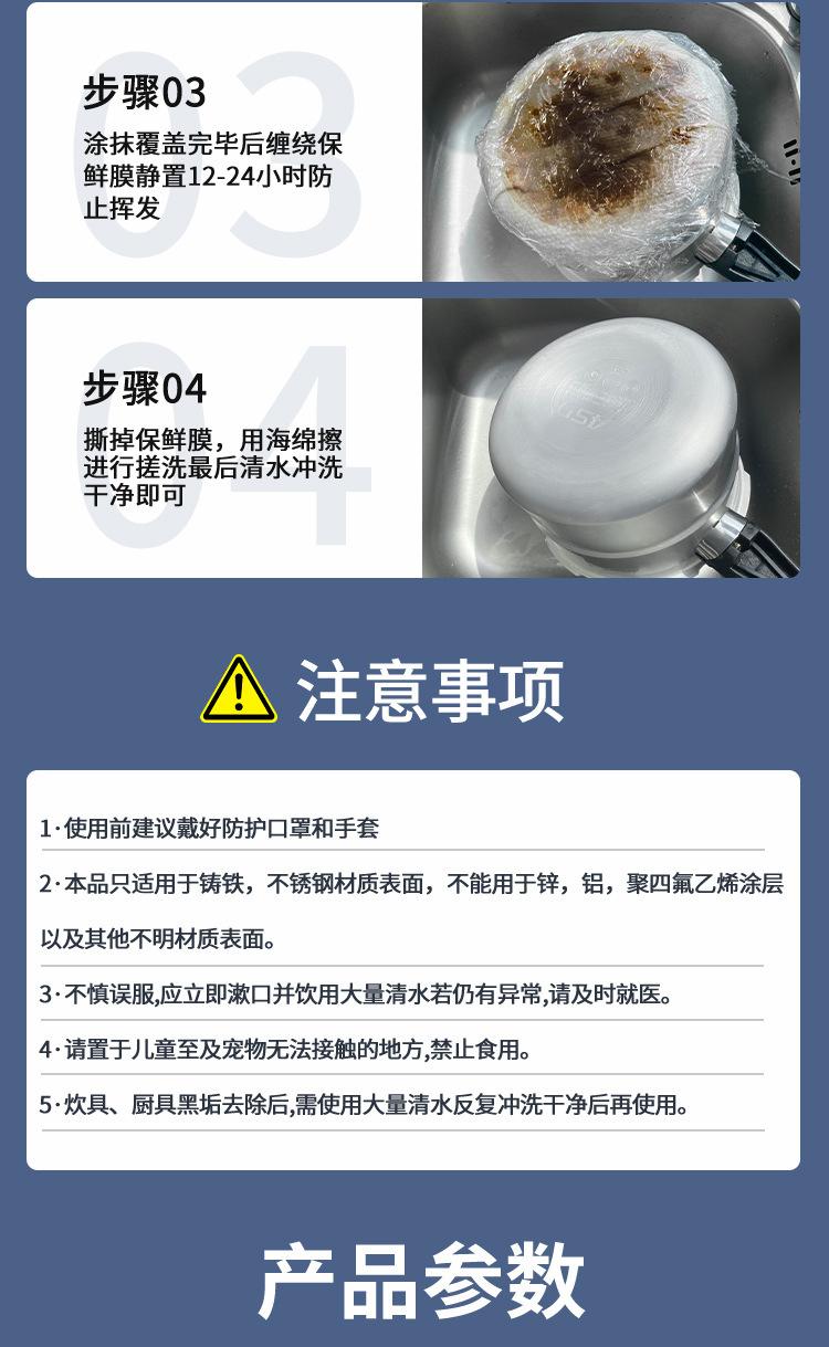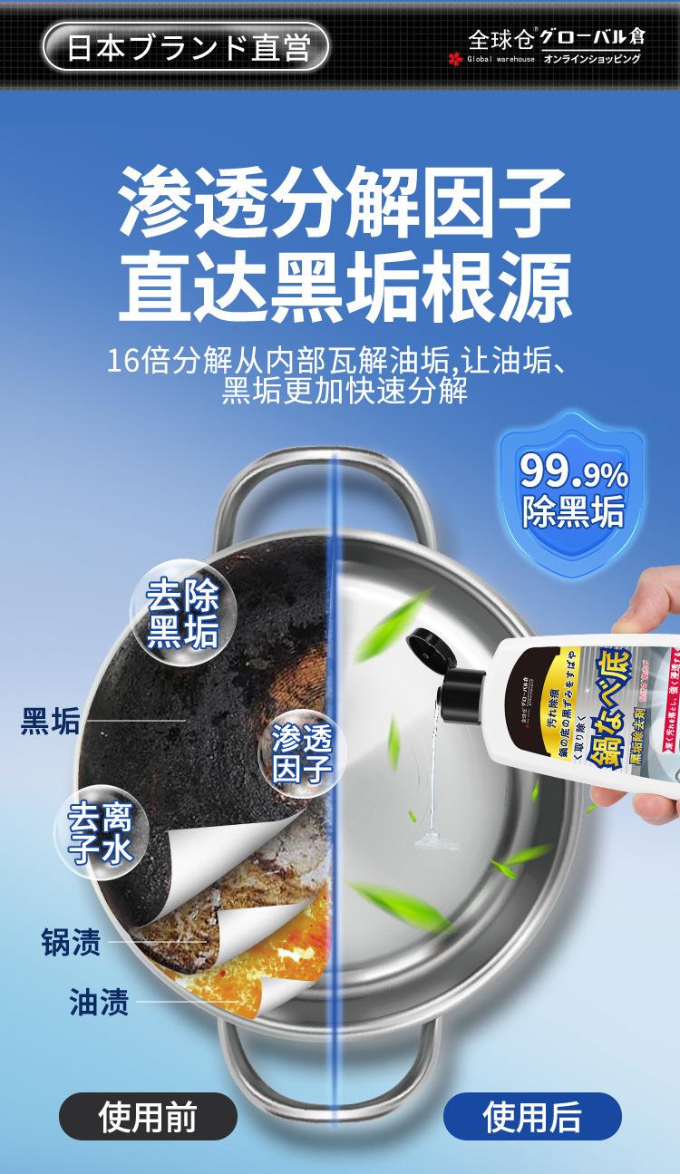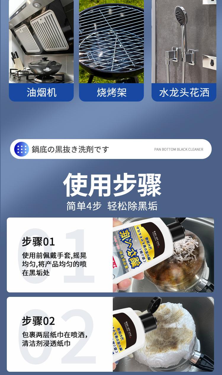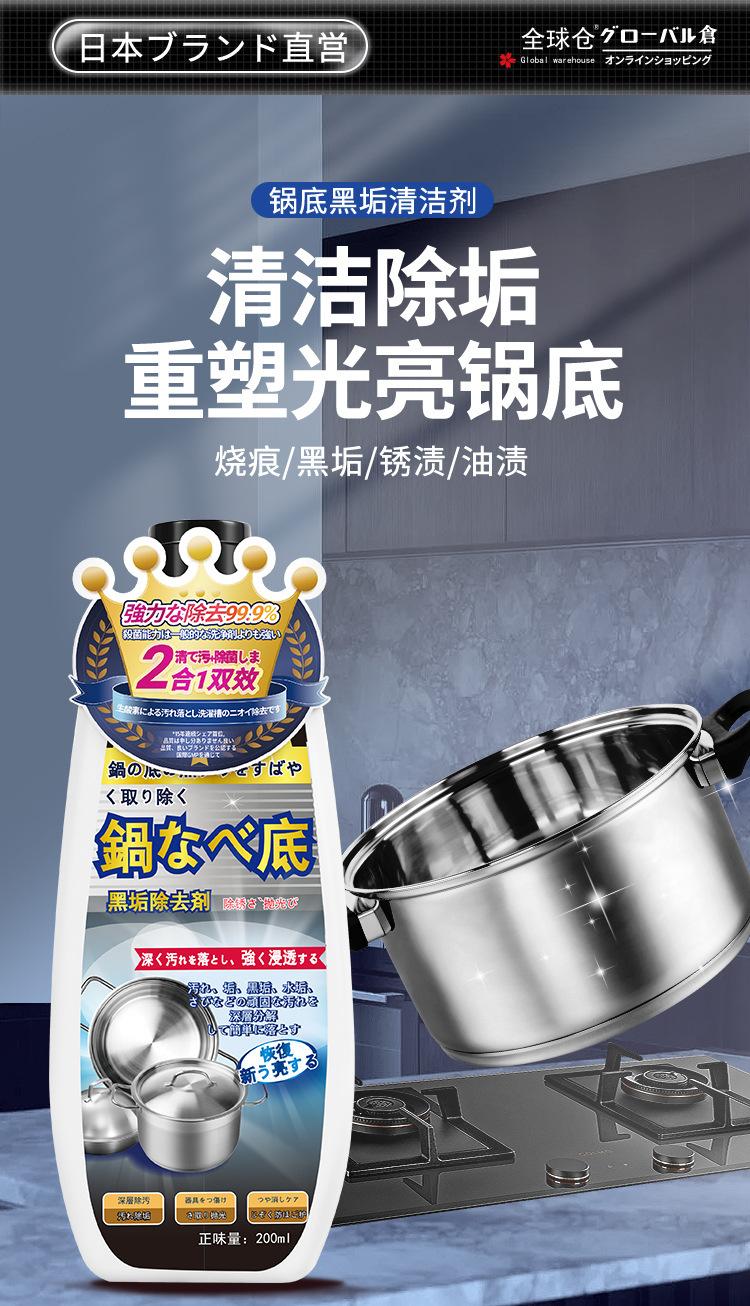 Limpiador de sarro negro para fondo de olla de almacén global, limpiador multifuncional para ollas de hierro y acero inoxidable, potente descontaminación y eliminación de sarro para el hogar.