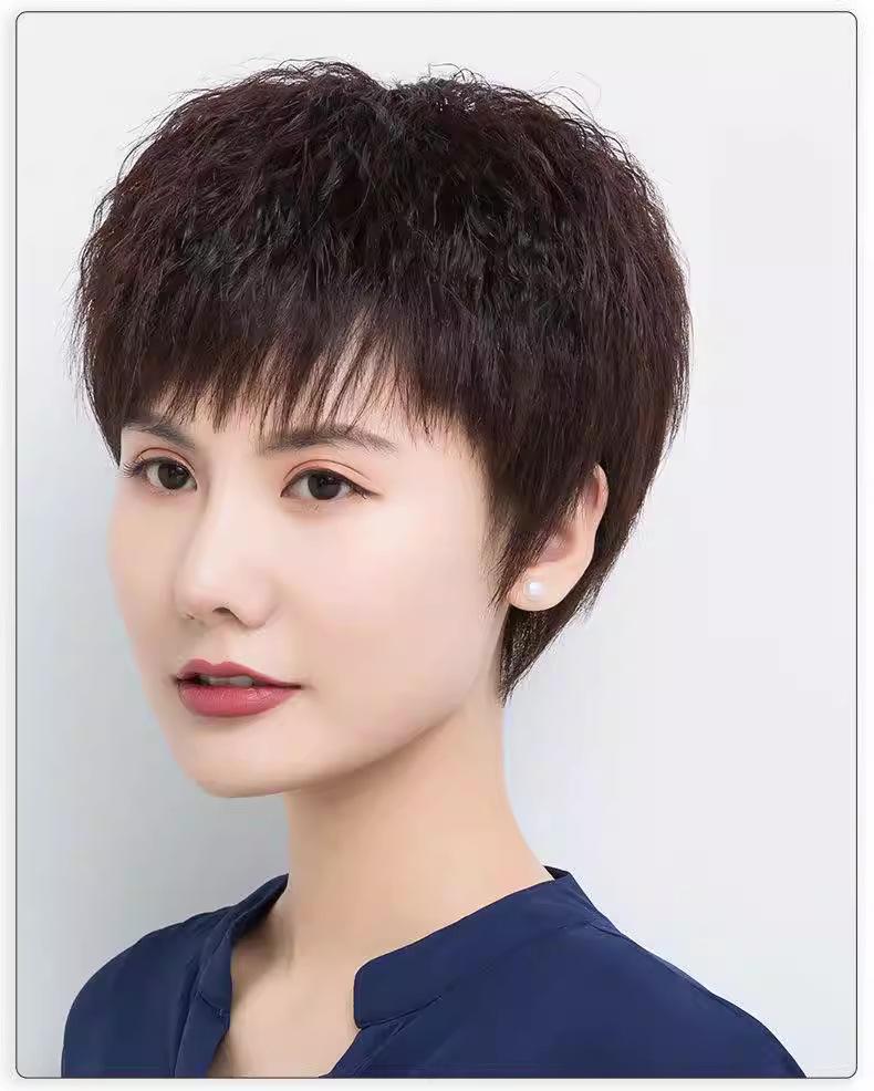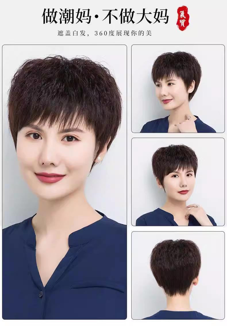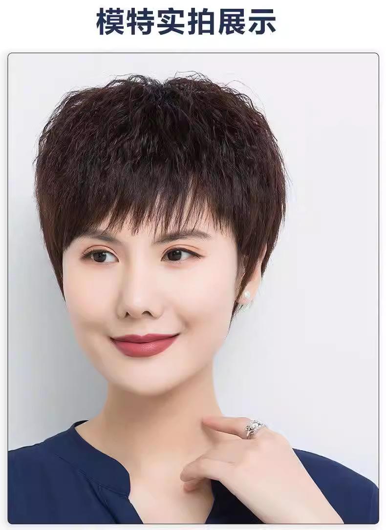 Peluca para Mujer de Mediana Edad y Anciana Cabello Corto Rizado Textura Caliente Cubierta Completa para la Cabeza Cabello Real de Madre Esponjoso Natural Peluca de Cabello Corto Cubierta para la Cabeza
