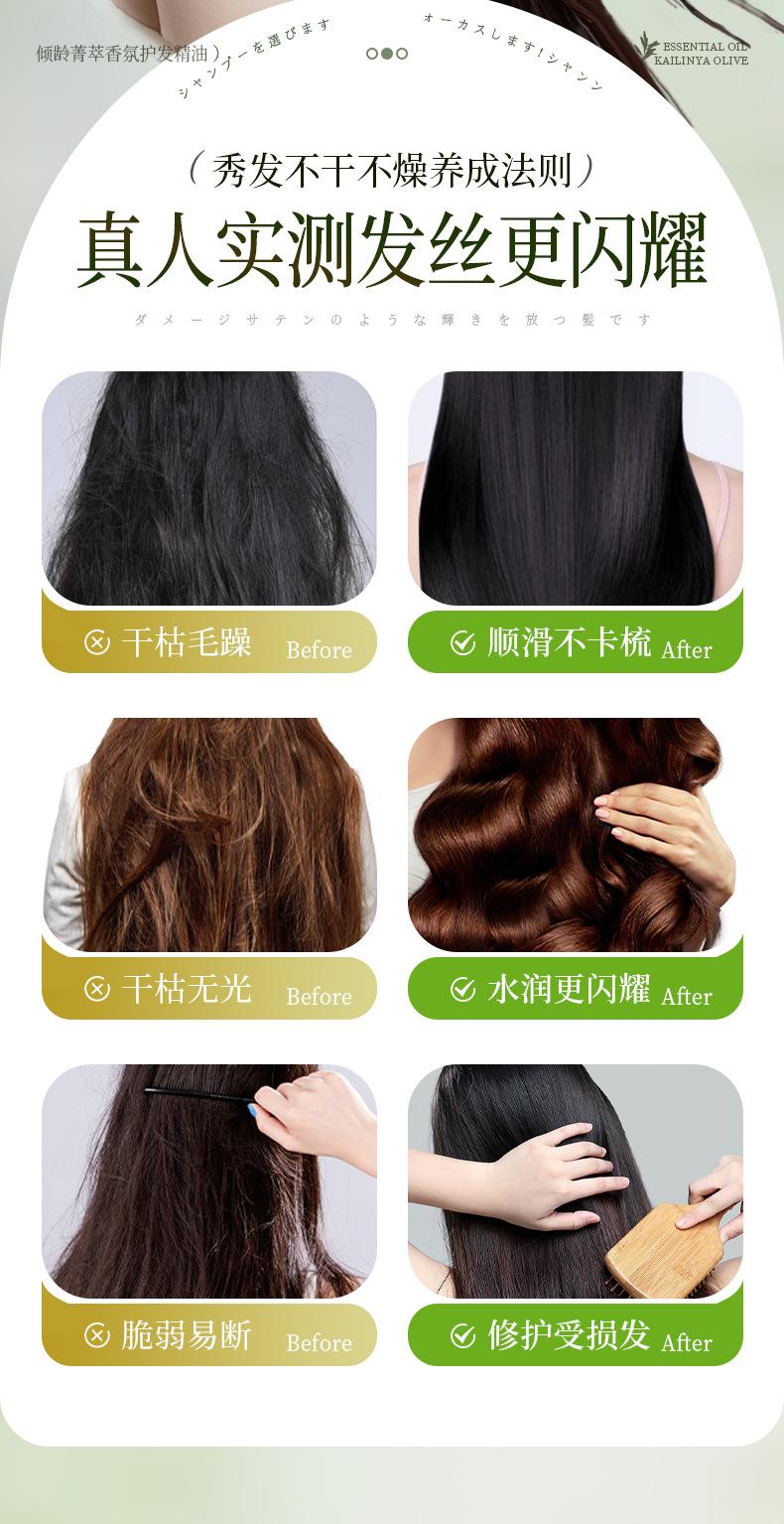 Selección estricta de aceites esenciales para el cuidado del cabello con fragancia antienvejecimiento, hidratantes para mejorar el frizz, control de suavidad áspera, aceite esencial para el cuidado del cabello esponjoso