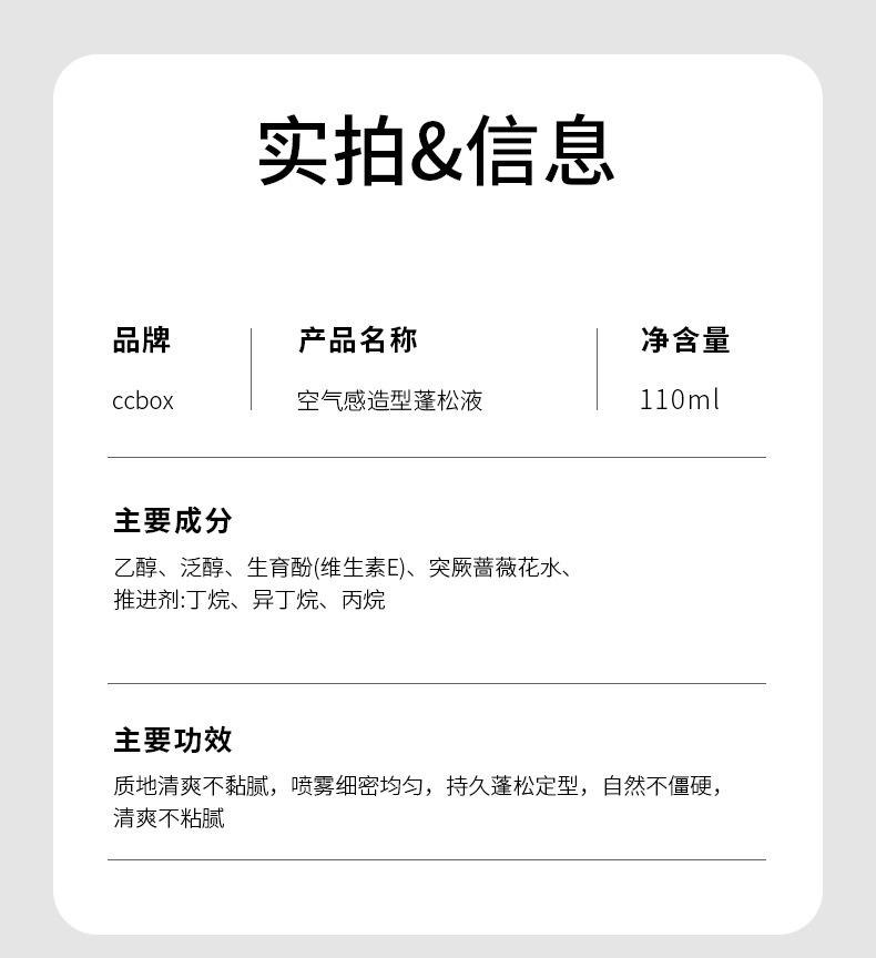 Ccbox Air Sense Modelado Líquido Esponjoso Flequillo Superior Craneal Alto Estereotipo Spray Libre de Gestión Gel para el Cabello Unisex