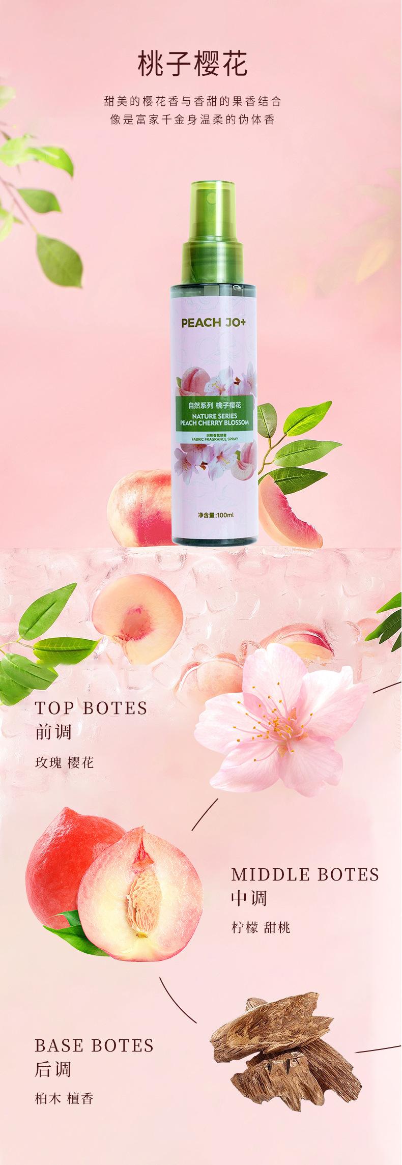 PEACH JO Durazno para Fragancia Natural Ropa Desodorizante en Spray Té Blanco Durazno Flor de Cerezo para Hombres y Mujeres Perfume de Fragancia Ligera