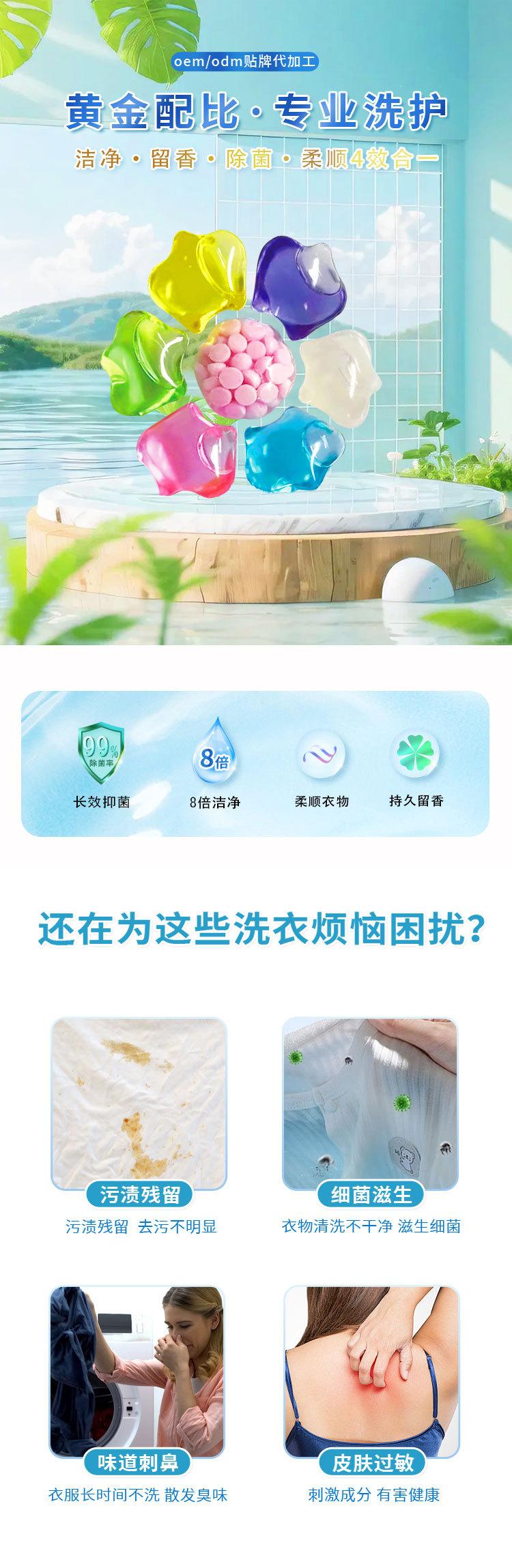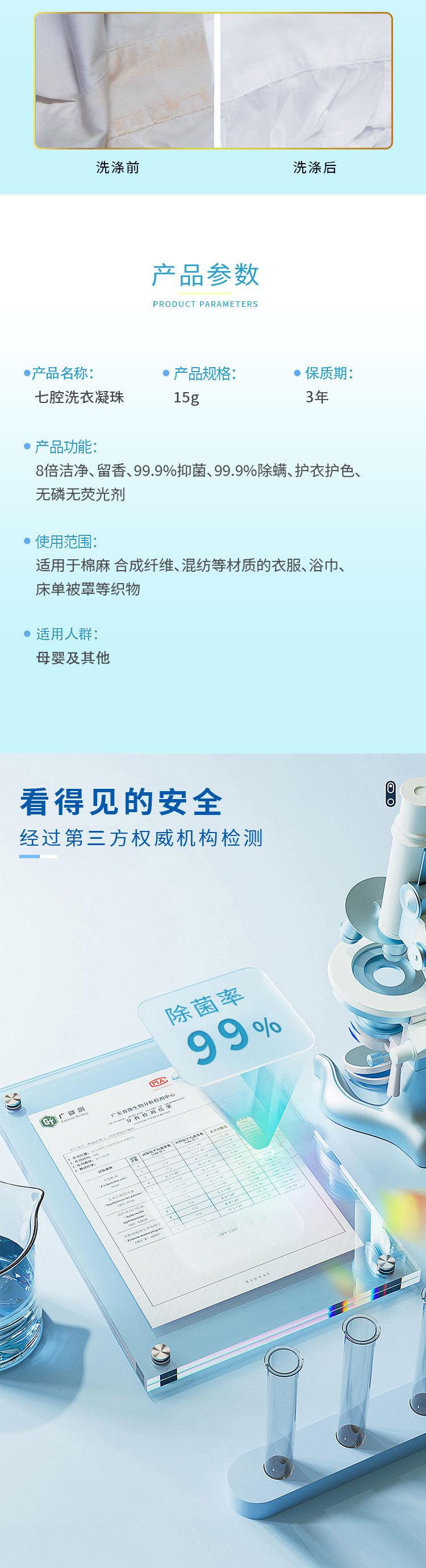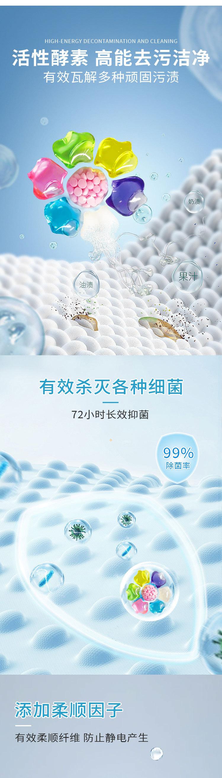 Perlas de Lavandería Siete en Uno del Fabricante 15g, Antibacterianas, Eliminación de Ácaros, Fragancia Duradera, Descontaminación y Suavidad, Cápsula de Lavandería al por Mayor
