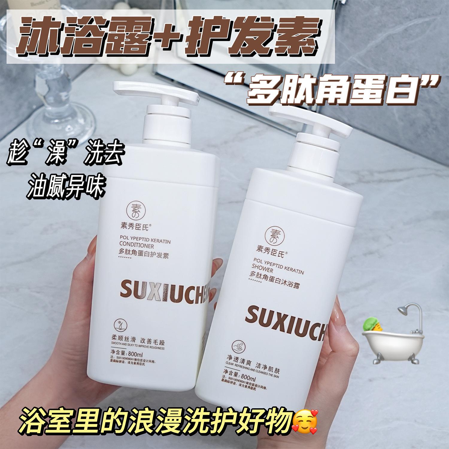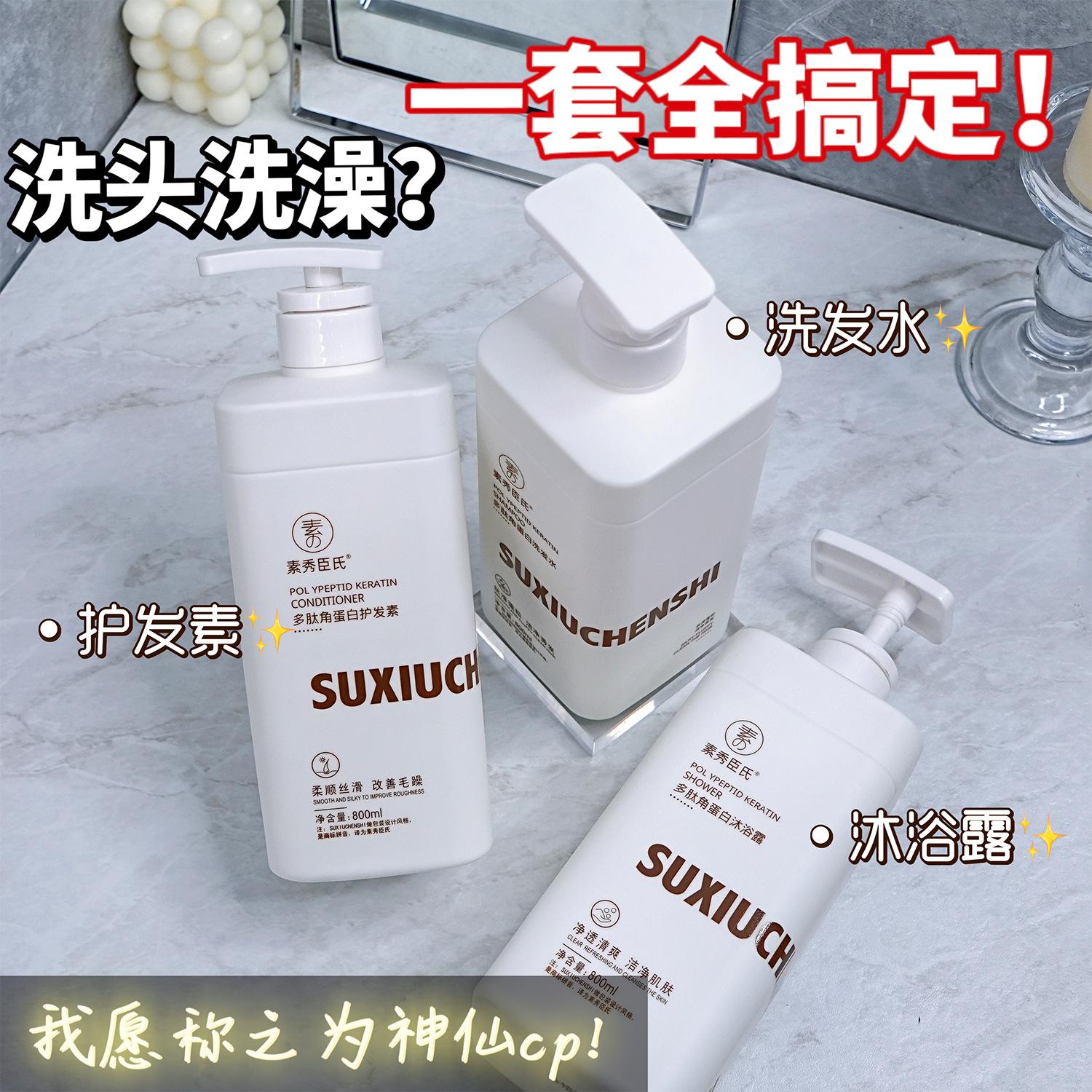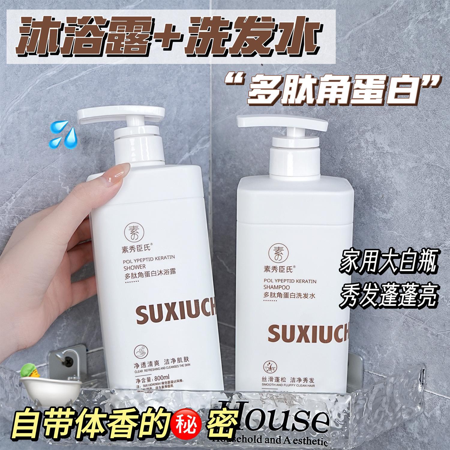 Champú de queratina con polipéptidos Suxiushen, control de grasa y eliminación de caspa, jabón corporal con fragancia duradera, acondicionador hidratante para el cabello