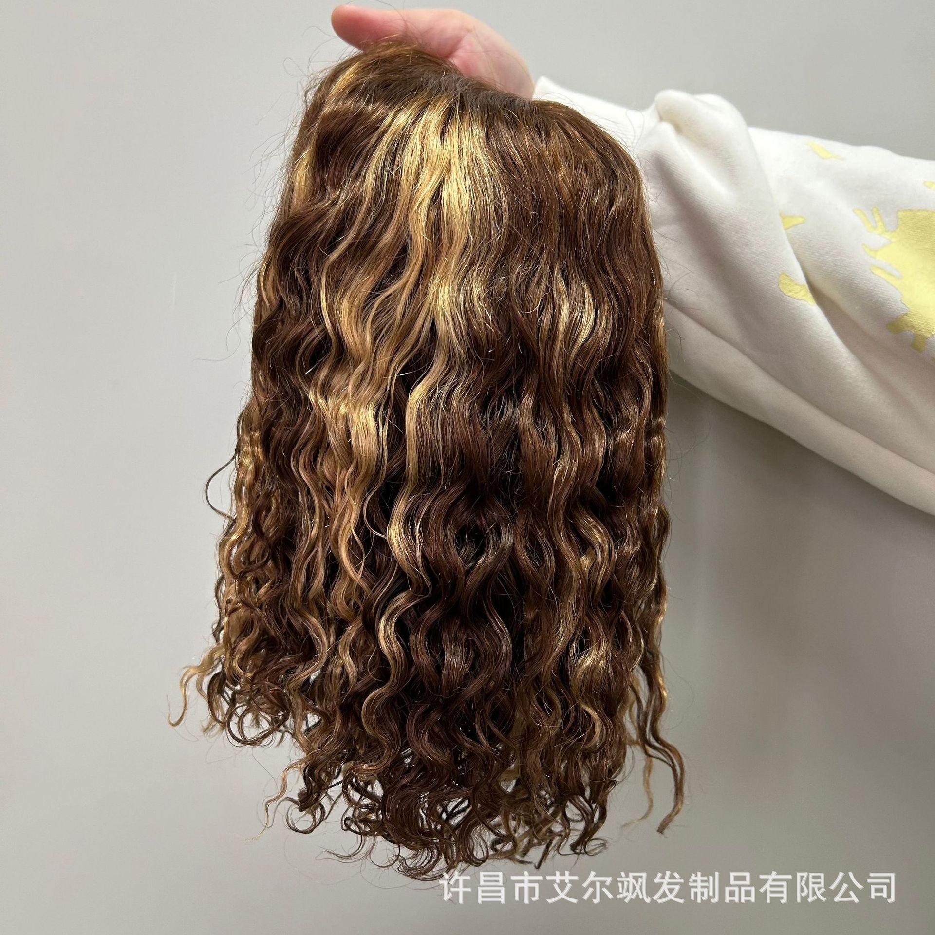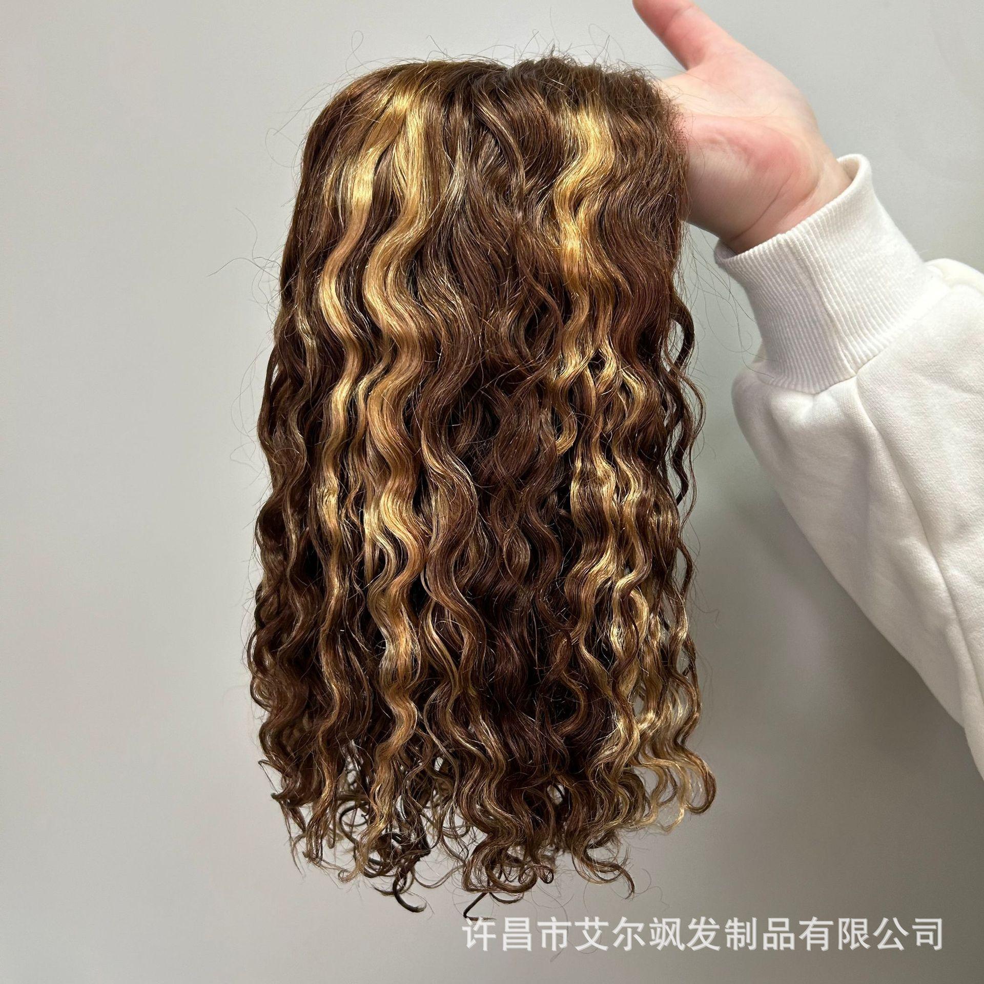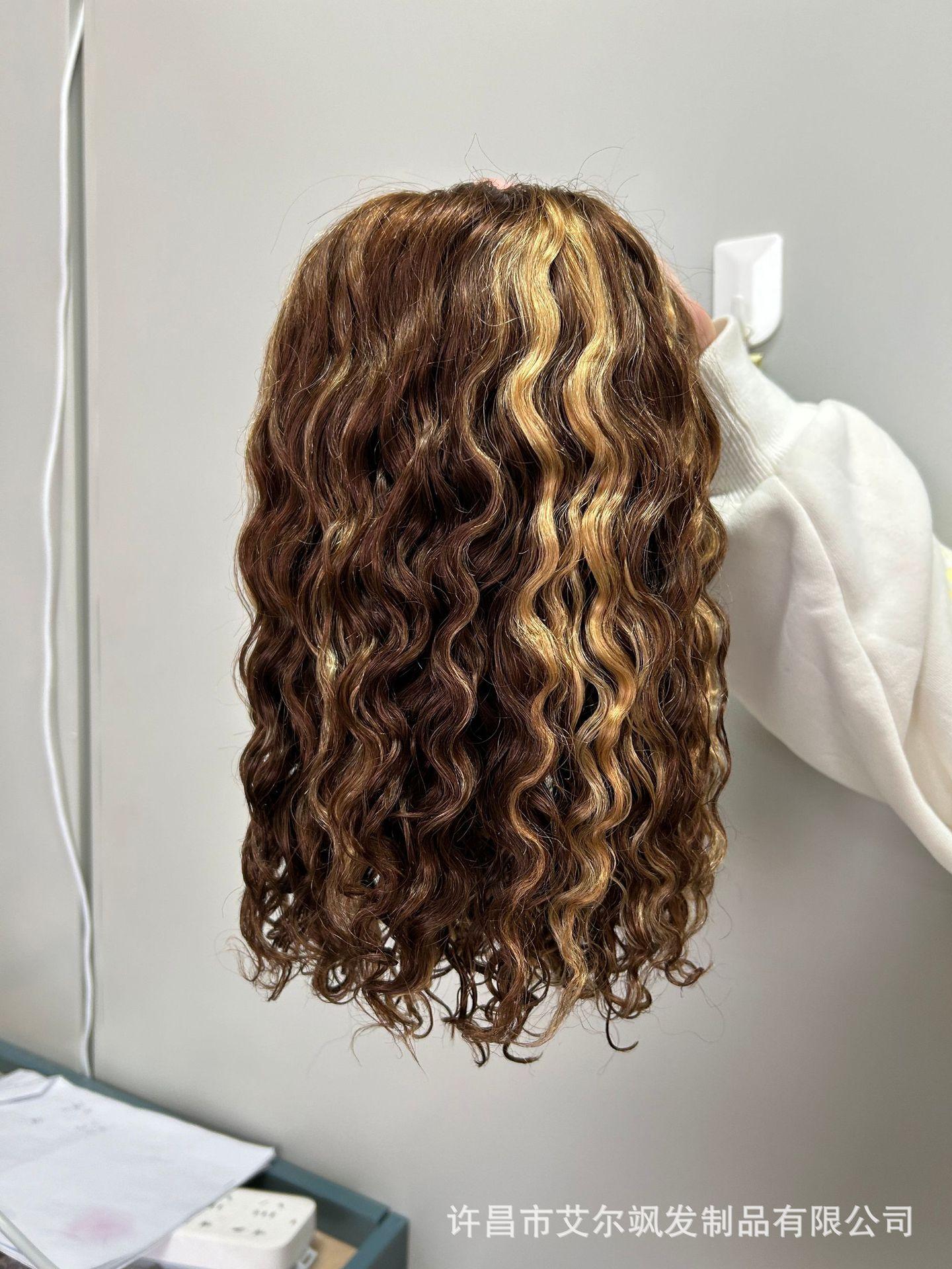 Venta directa de fábrica, conjunto de pelucas de cabello real, conjunto de cabeza tejida a mano, pelucas largas y rizadas, peluca de cabello real caliente de Europa y Estados Unidos