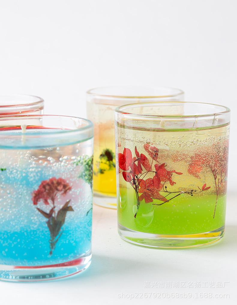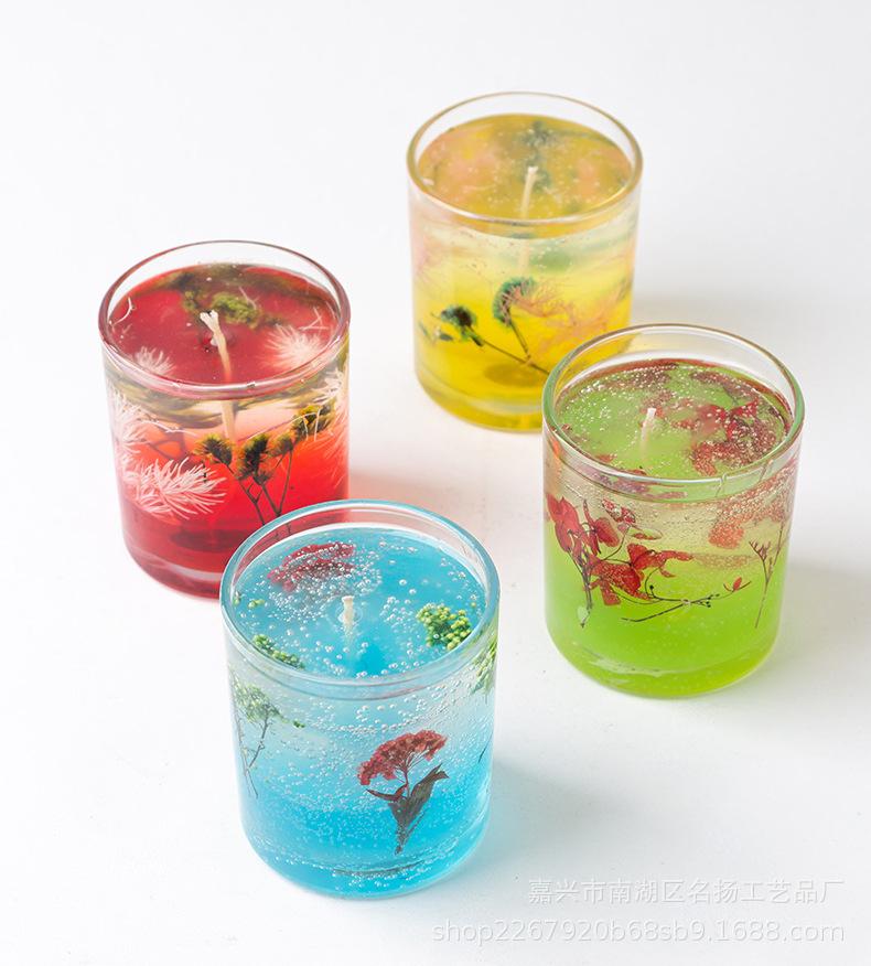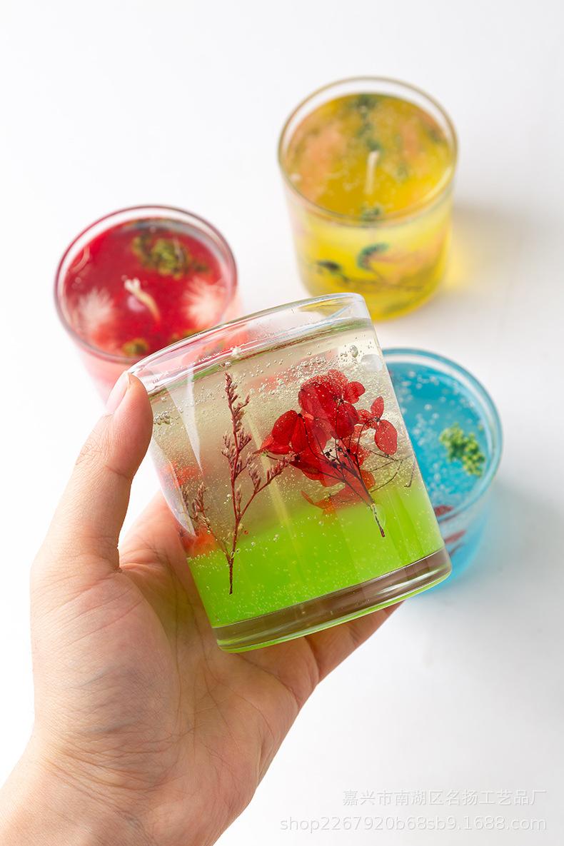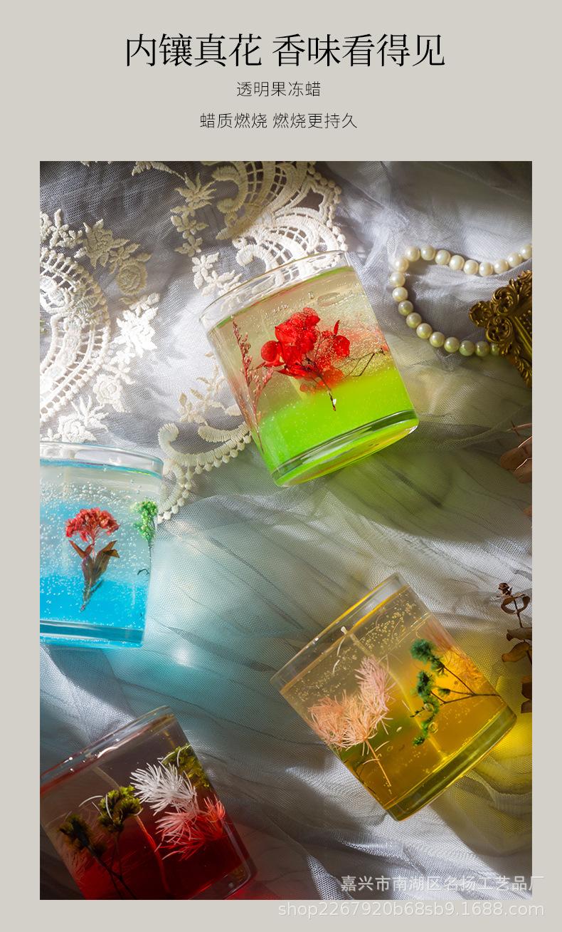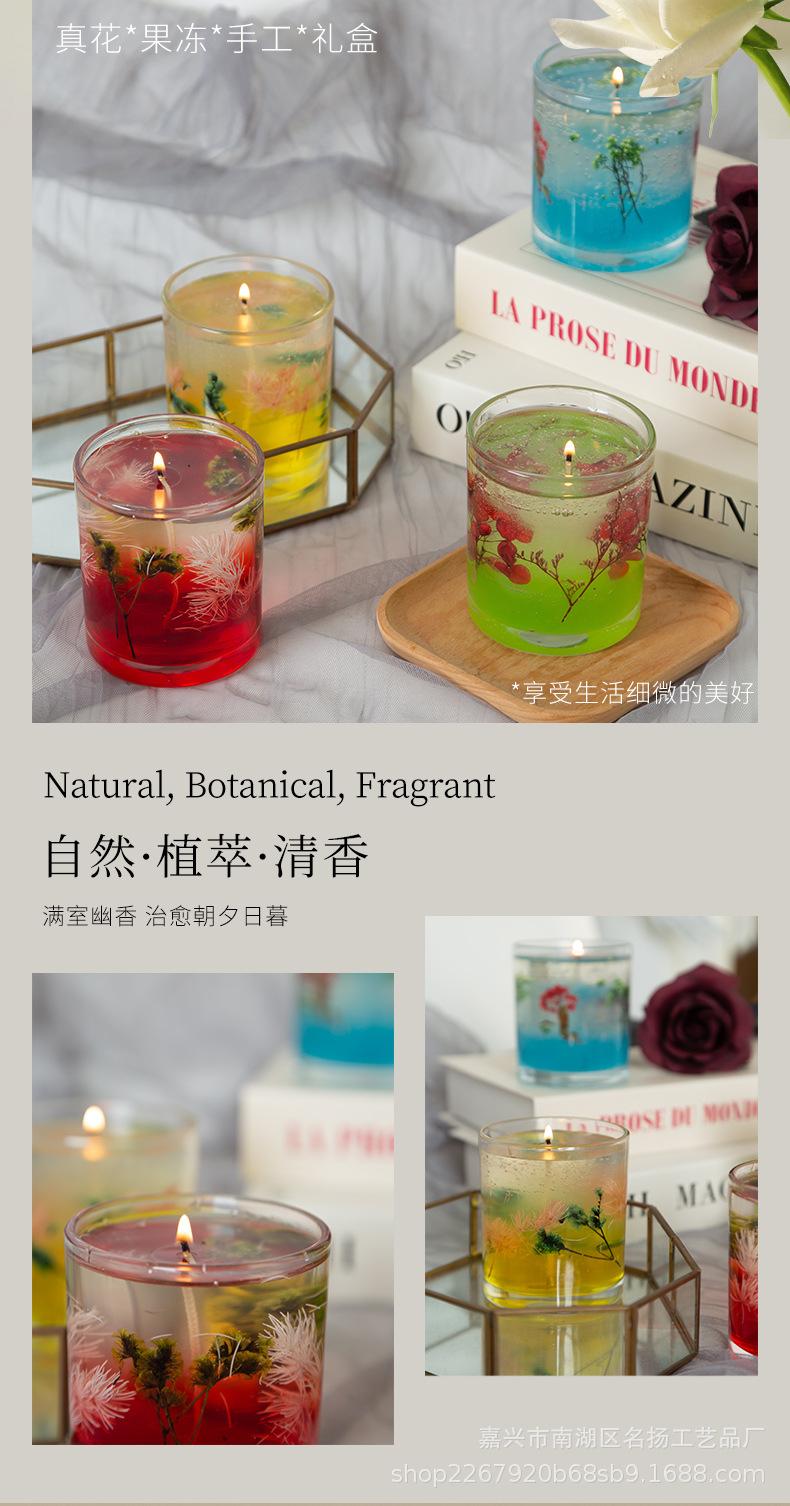 Vela de aromaterapia con aceite esencial de planta, vela de cera de gelatina de incienso artesanal, taza de vela con fragancia, regalo, taza de vela de flores secas, traje al por mayor