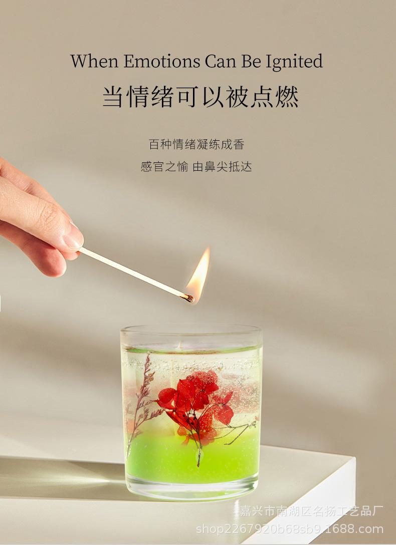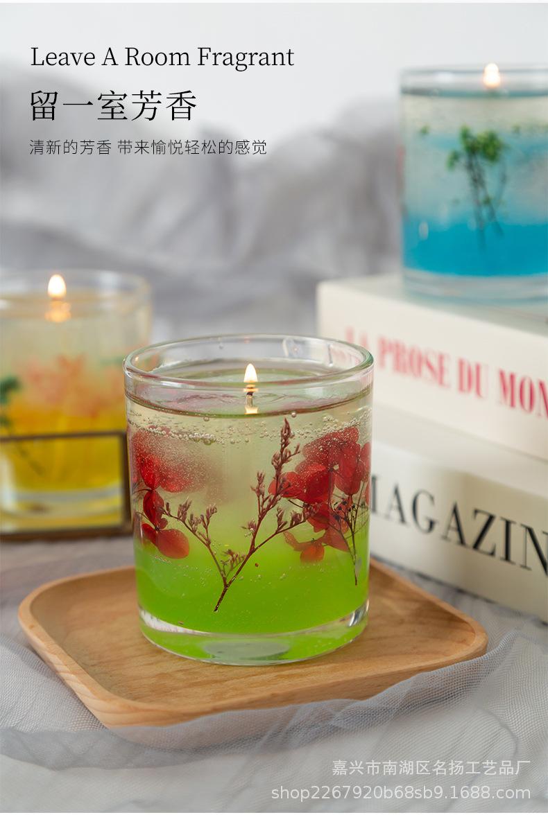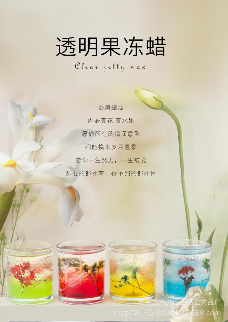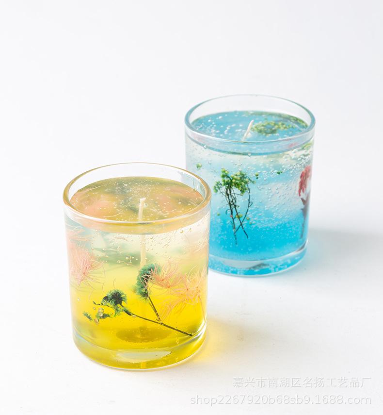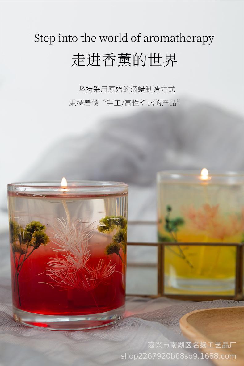 Vela de aromaterapia con aceite esencial de planta, vela de cera de gelatina de incienso artesanal, taza de vela con fragancia, regalo, taza de vela de flores secas, traje al por mayor