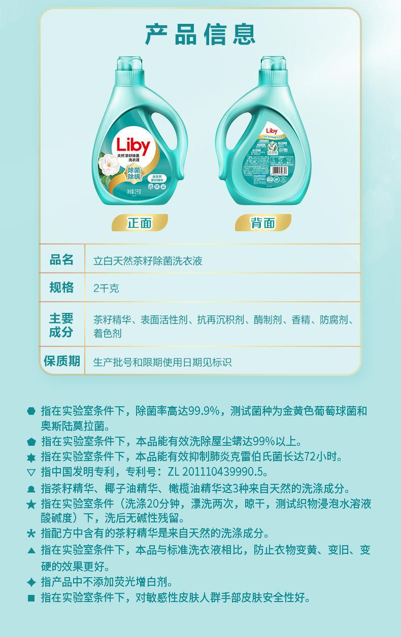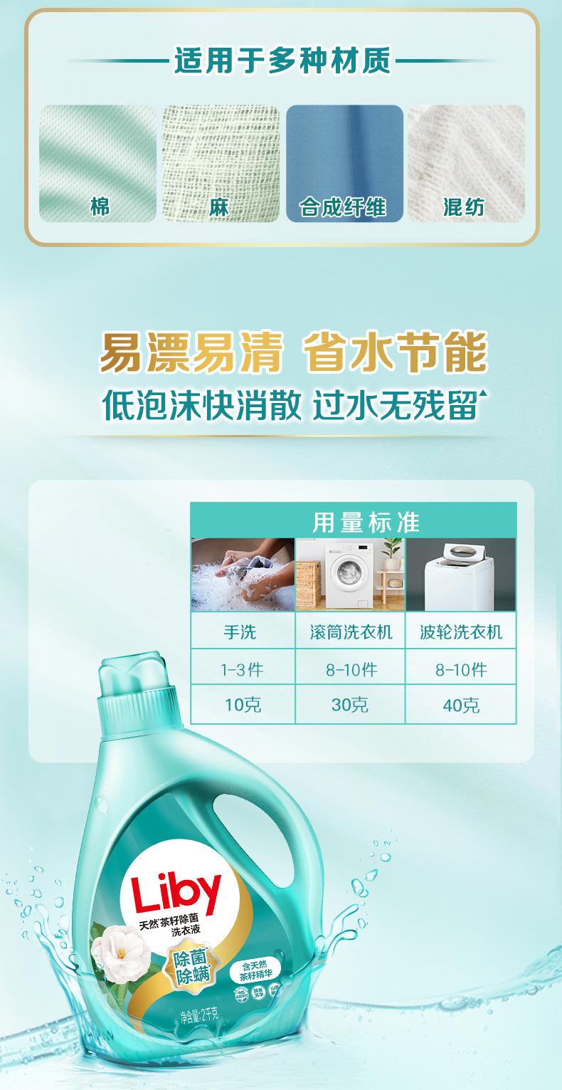 Detergente para Ropa Liby 2kg Semilla de Té Antibacteriano, Antiácaros, Detergente para Ropa Antibacteriano Caja al por Mayor para Uso Doméstico Producto Genuino