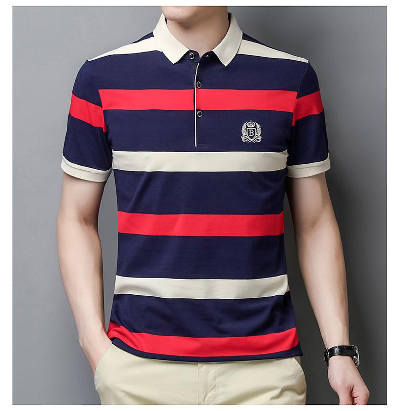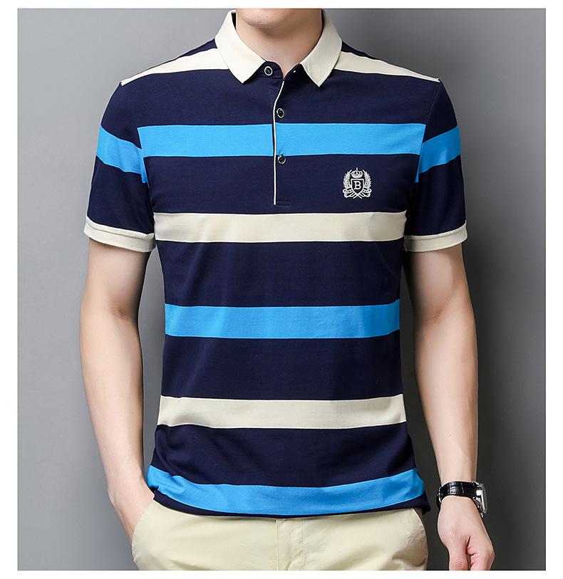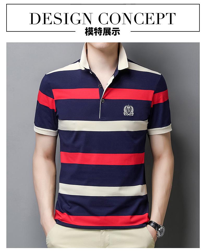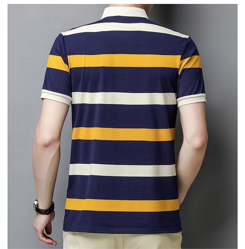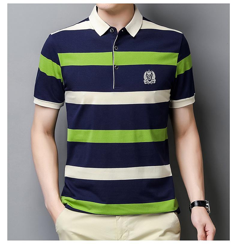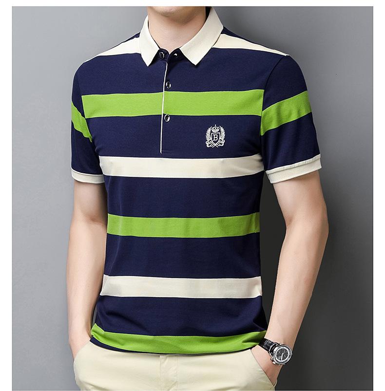 Camiseta de manga corta de verano 2024 para hombre, nueva camiseta de negocios para hombre, de algodón con solapa a rayas, camisa polo de media manga para hombre, de moda