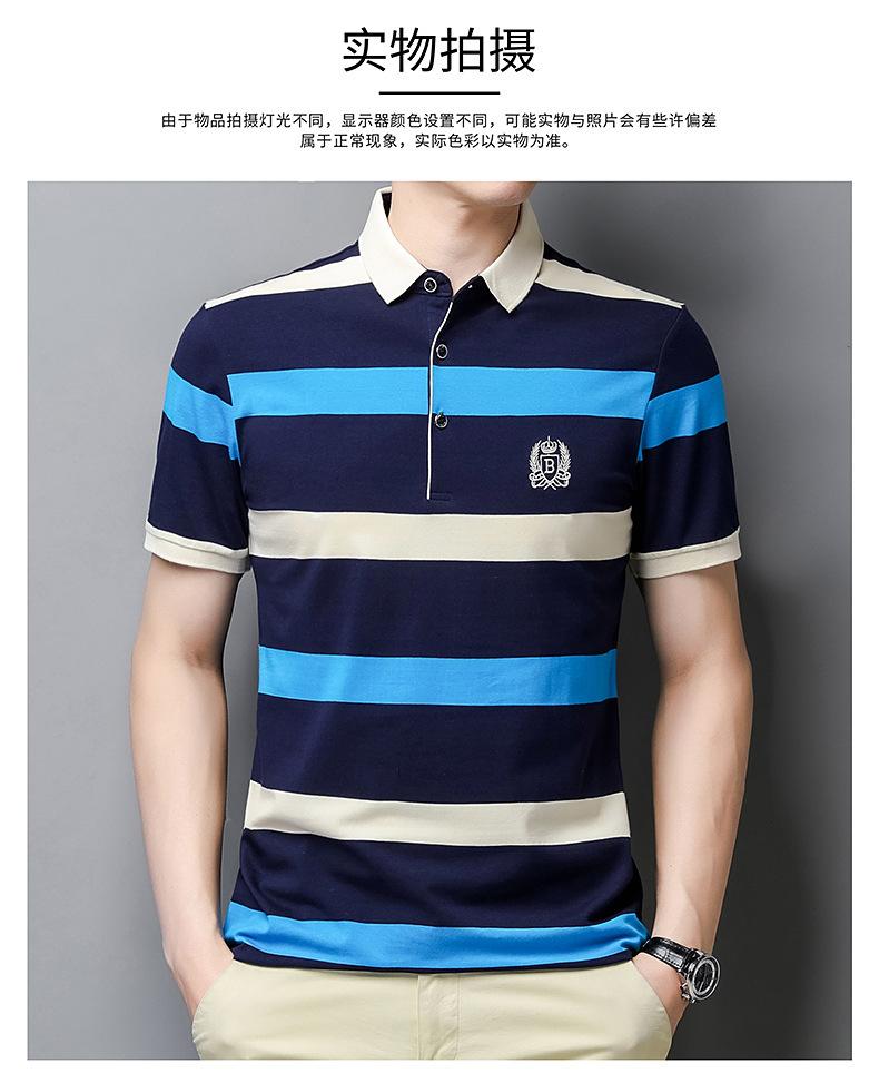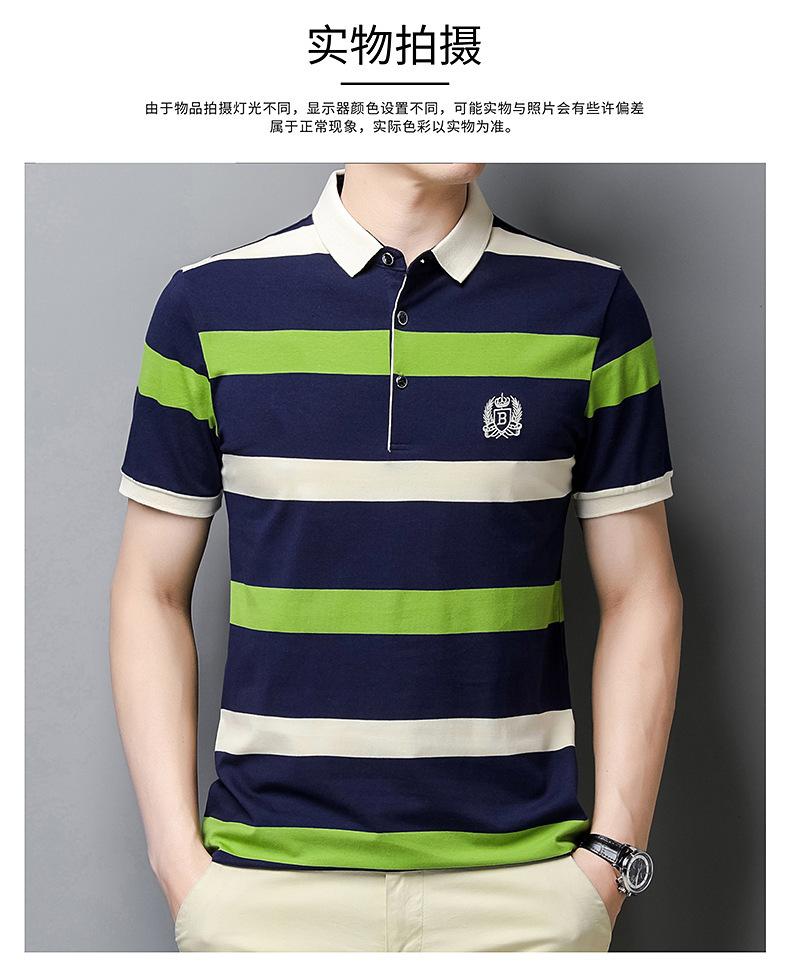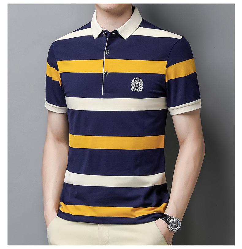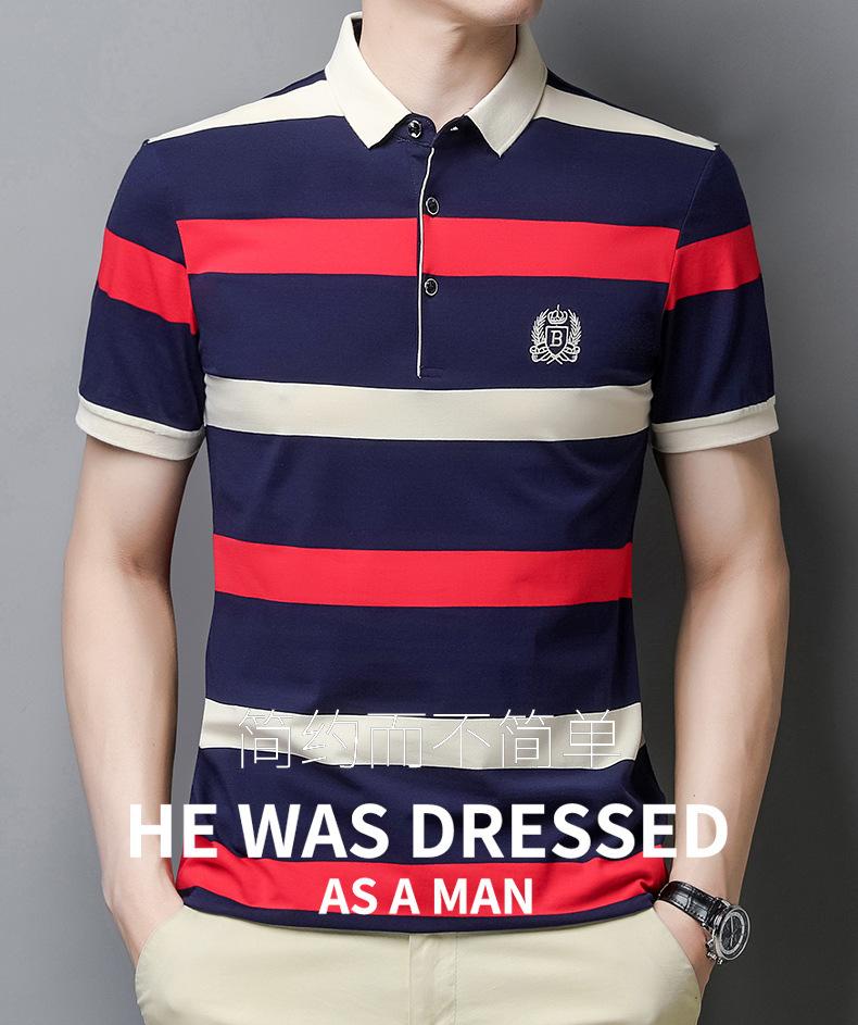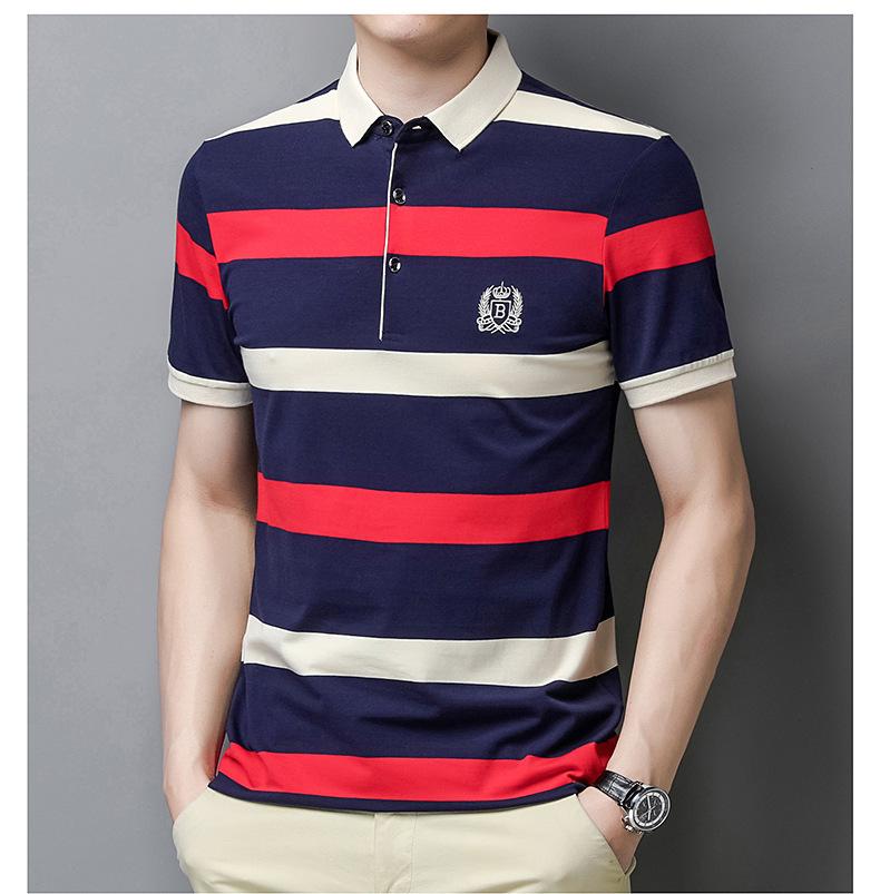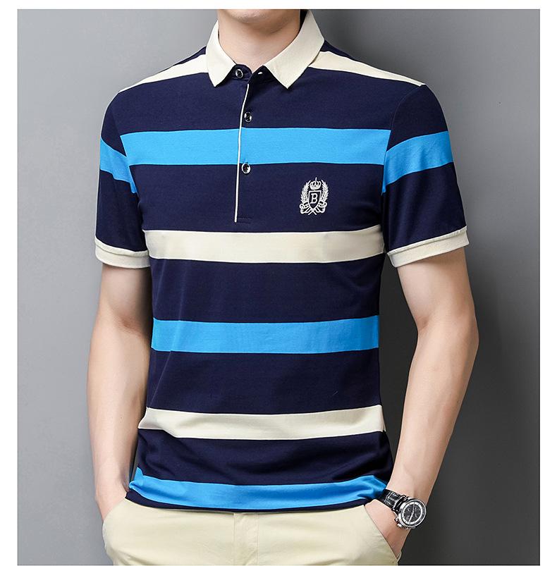 Camiseta de manga corta de verano 2024 para hombre, nueva camiseta de negocios para hombre, de algodón con solapa a rayas, camisa polo de media manga para hombre, de moda