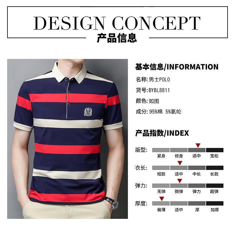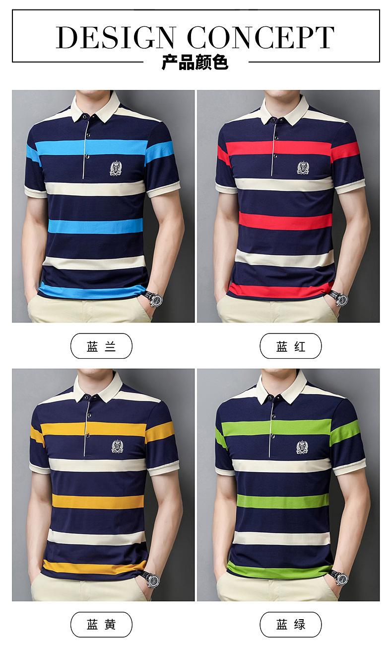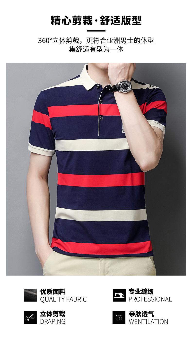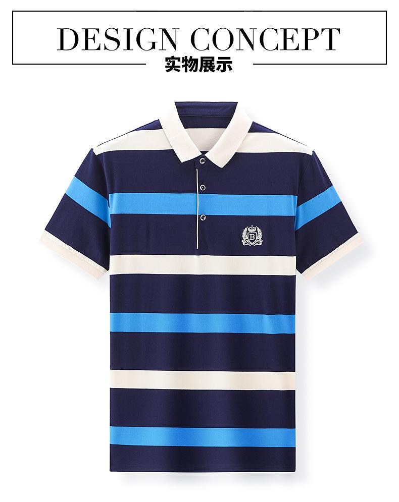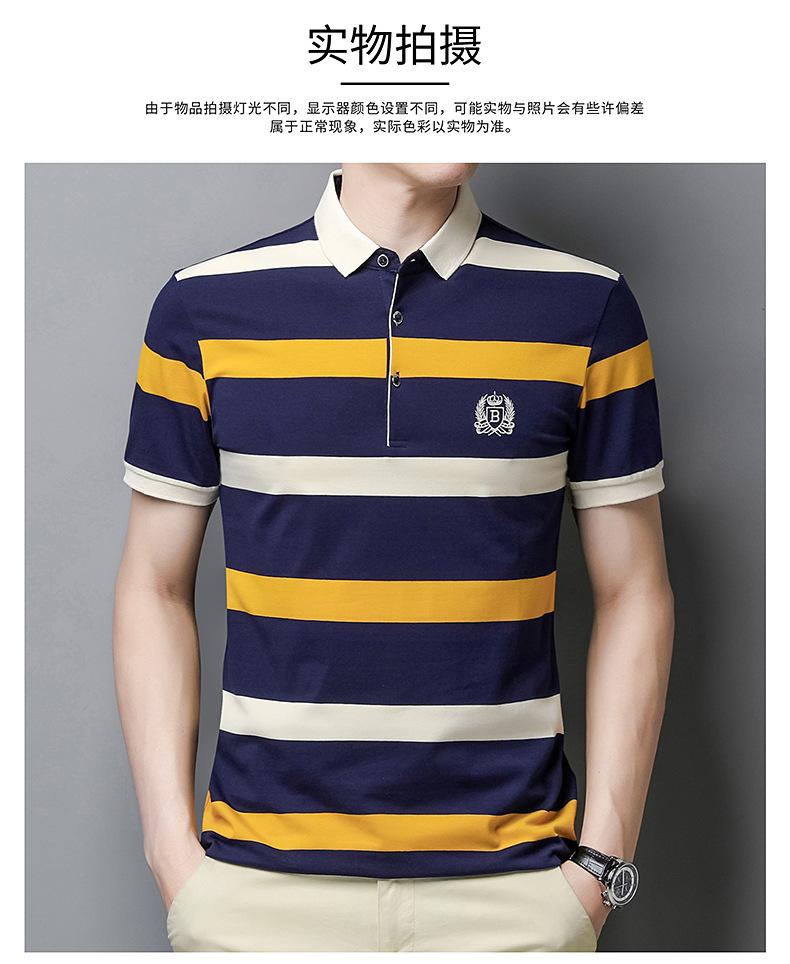 Camiseta de manga corta de verano 2024 para hombre, nueva camiseta de negocios para hombre, de algodón con solapa a rayas, camisa polo de media manga para hombre, de moda