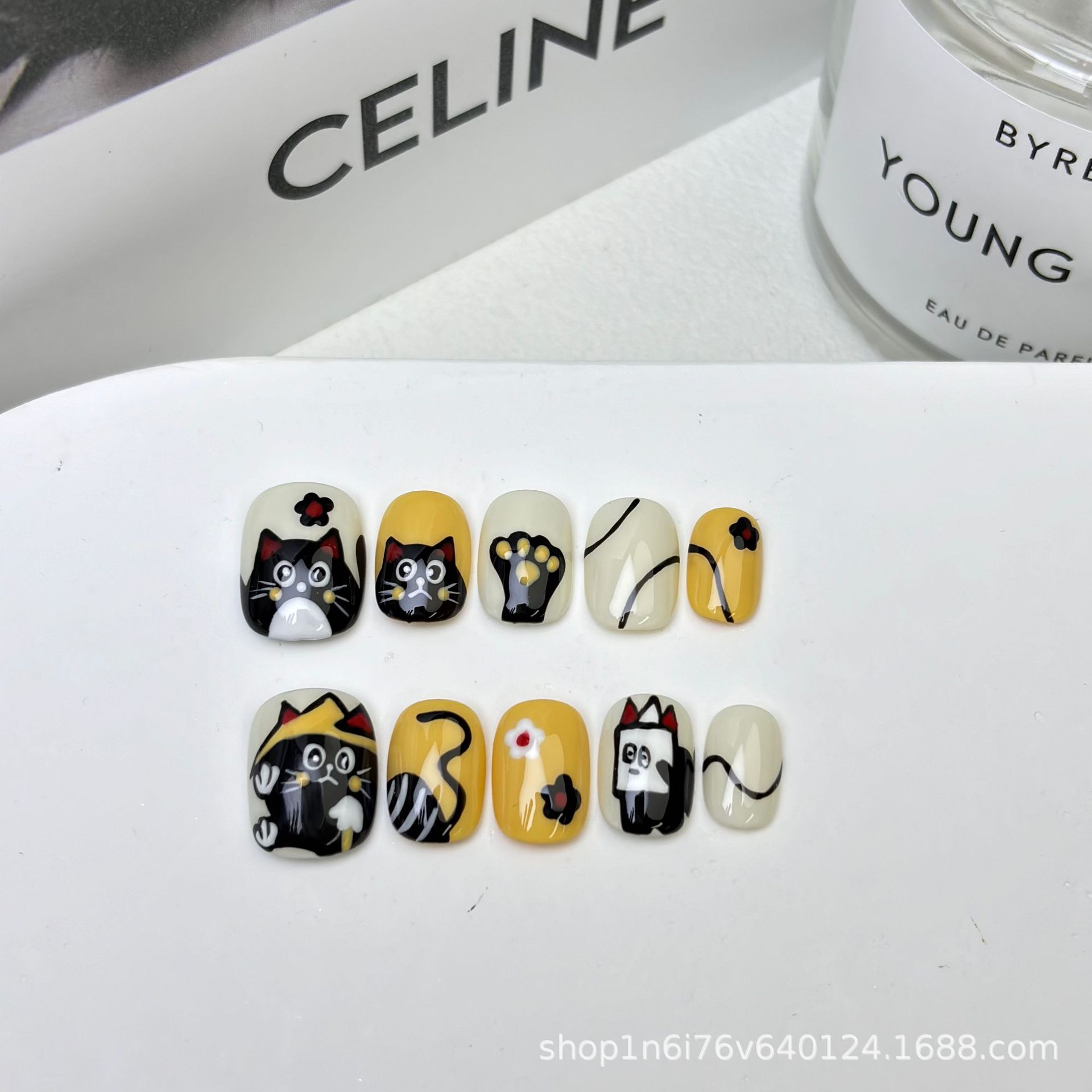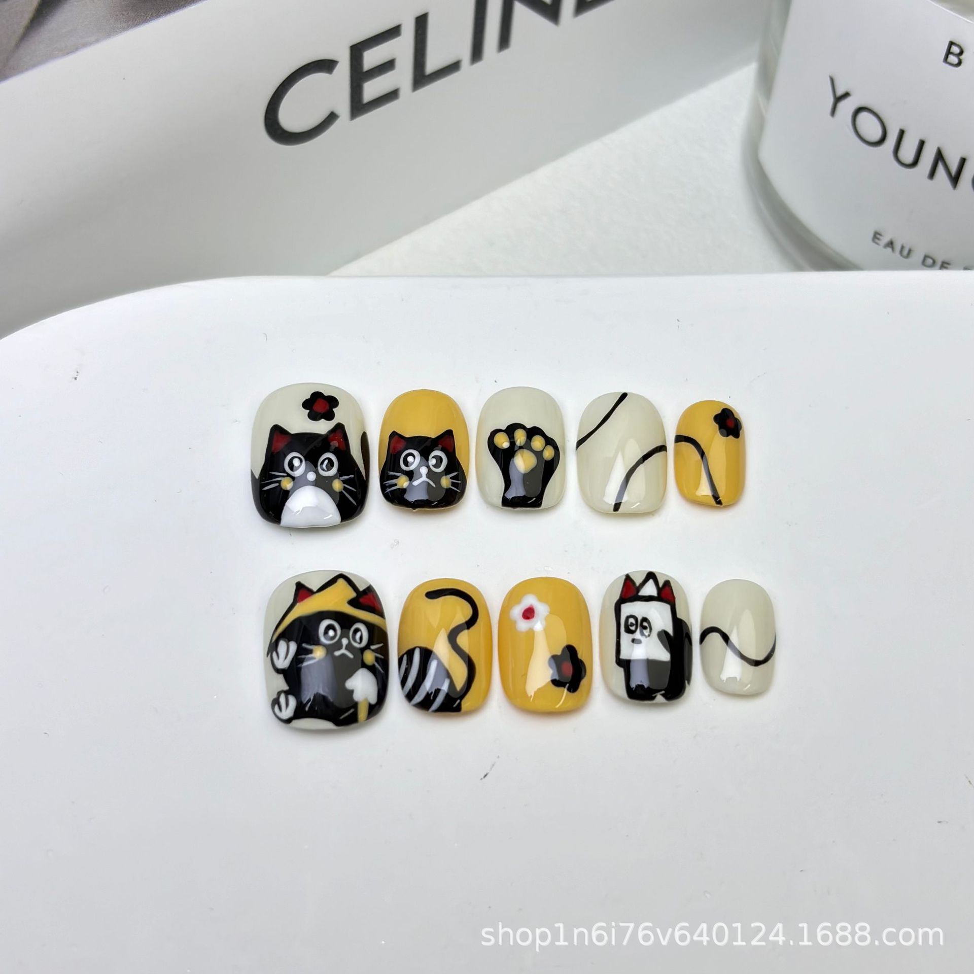 [Gato Negro Sheriff] Piezas de Uñas Acabadas para Llevar en la Mano Venta al por Mayor Arte de Uñas Cortas Blanco Pegamento para Uñas Postizas Removibles