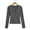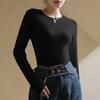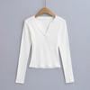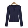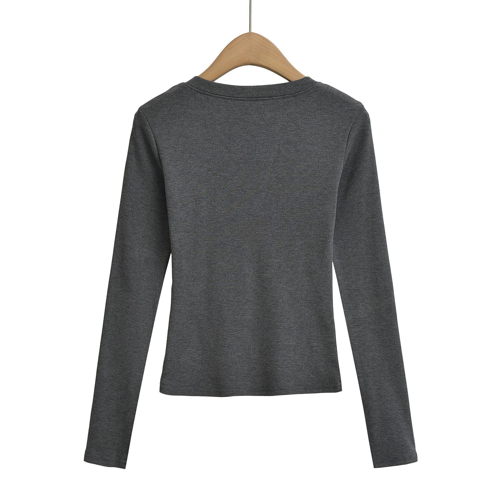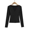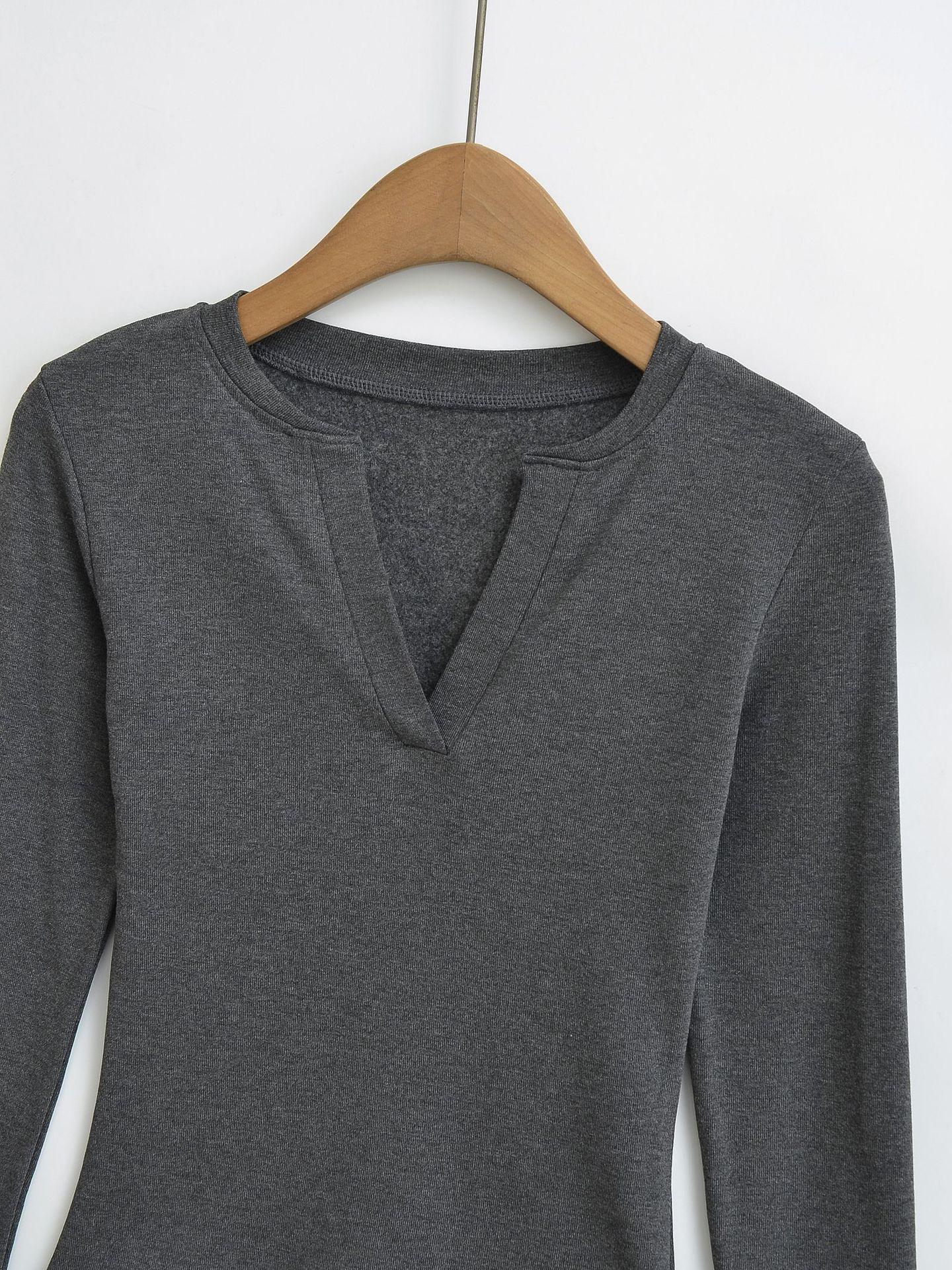Top básico sexy ajustado simple de cuello en V pequeño para chica hot para mujer, otoño e invierno, forrado de vellón cálido, color sólido, manga larga, camiseta al por mayor