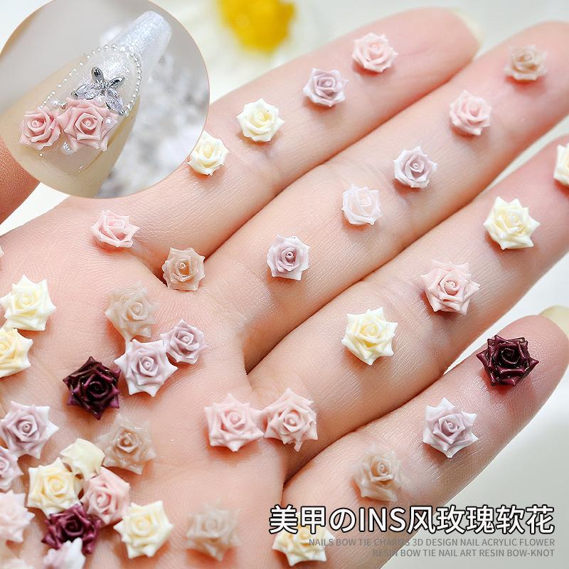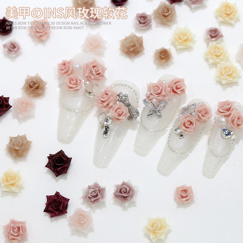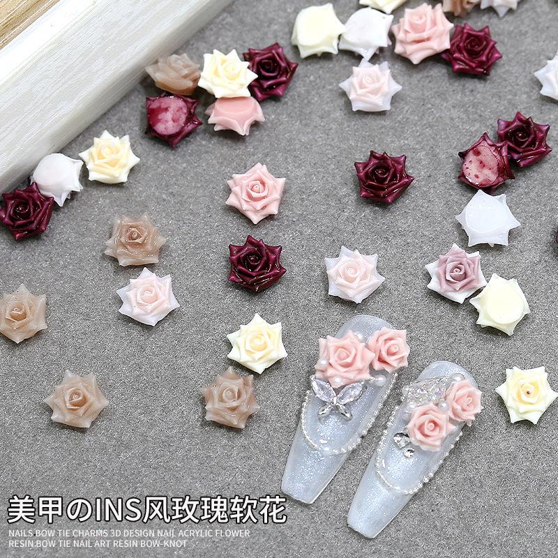 Decoración de Manicura de Rosa Tallada Suave Mixta Camelia Dulce Resina Diamante Xiaohongshu Nueva Joyería para Uñas al por Mayor