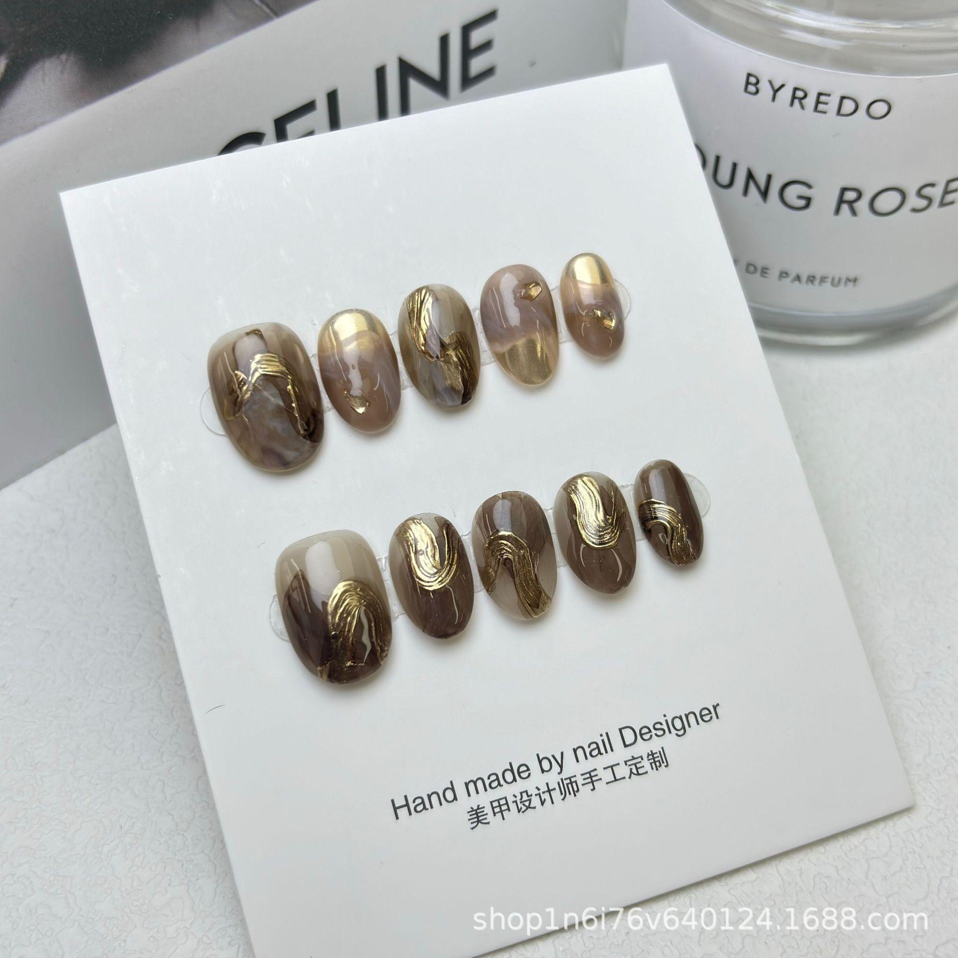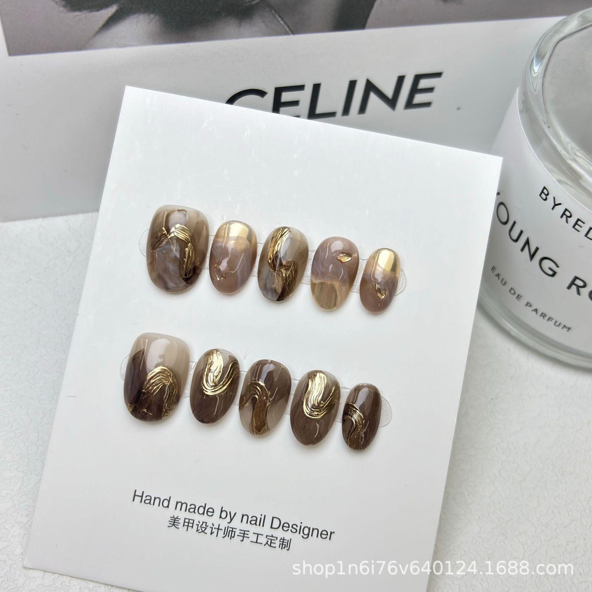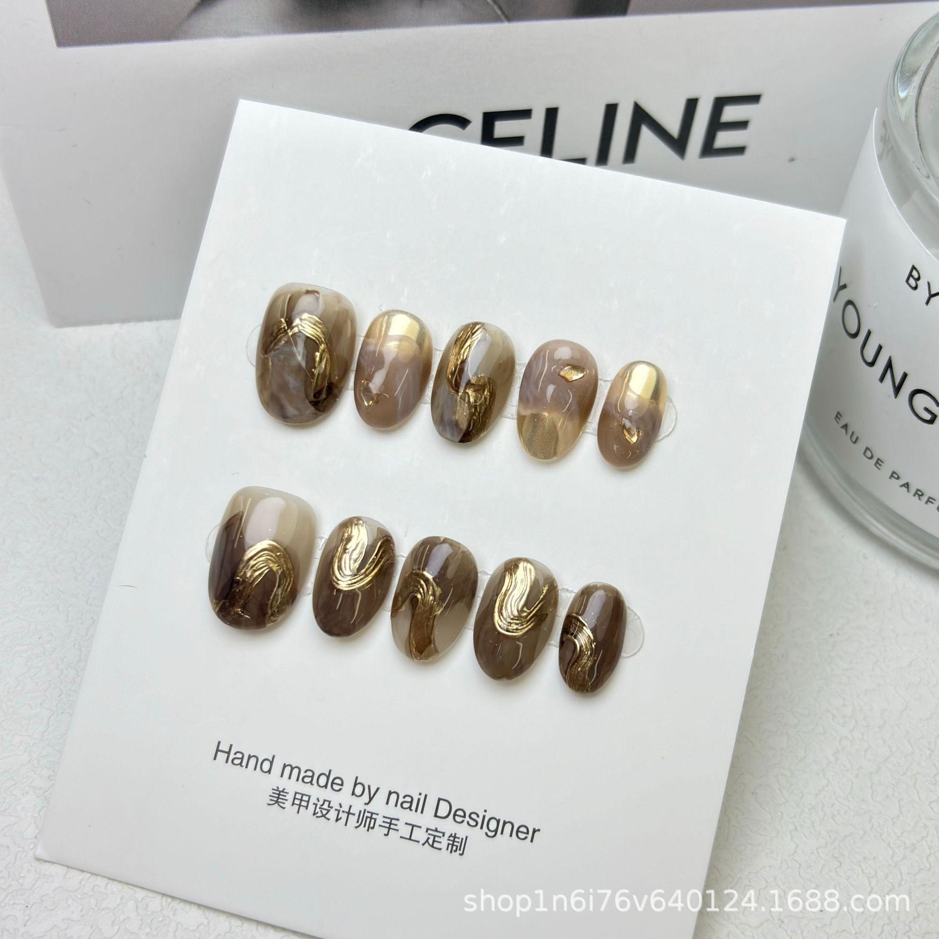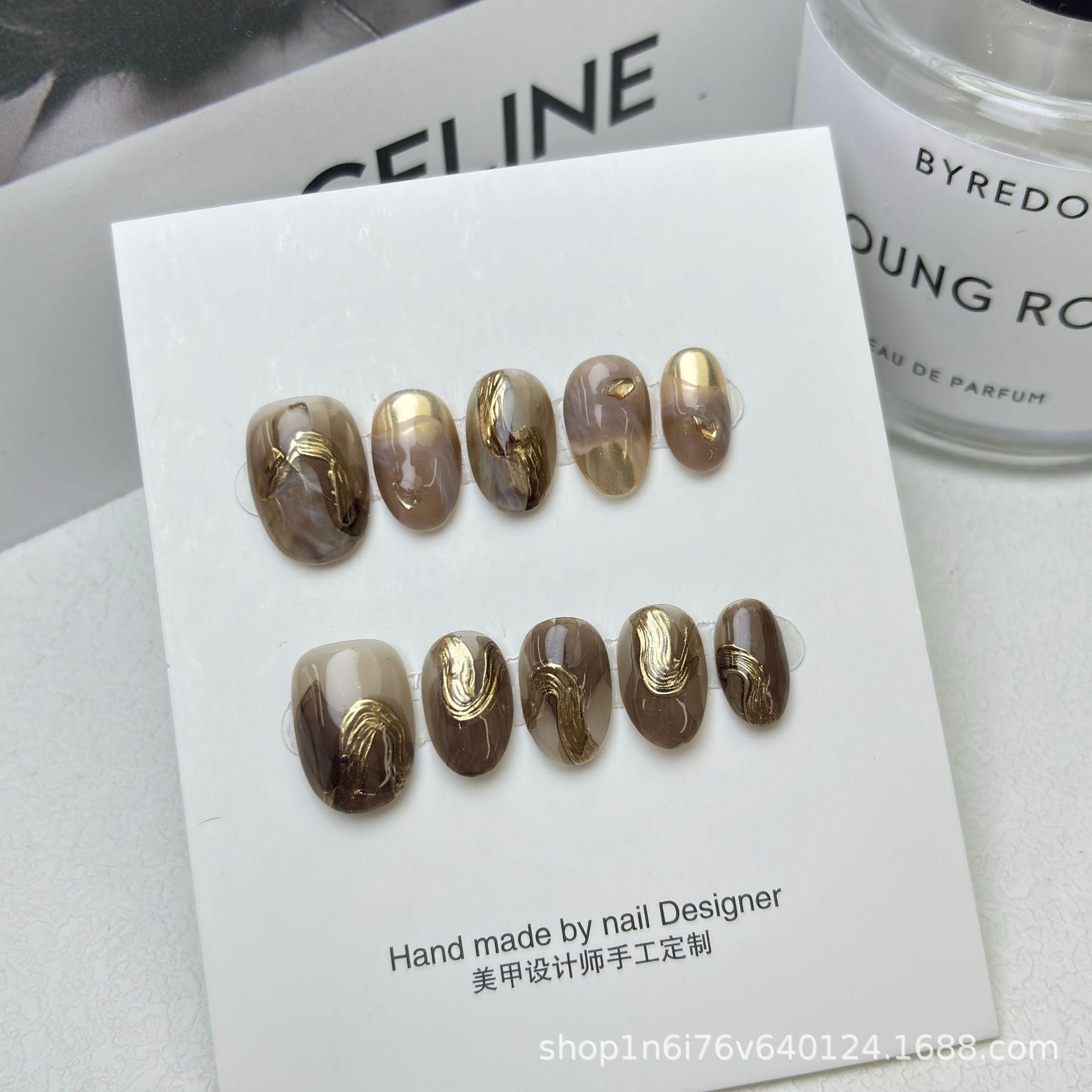[Wilderness] armadura pura desgastada a mano al por mayor halo negro lámina de oro diamante parche de uña postiza pieza de uña removible