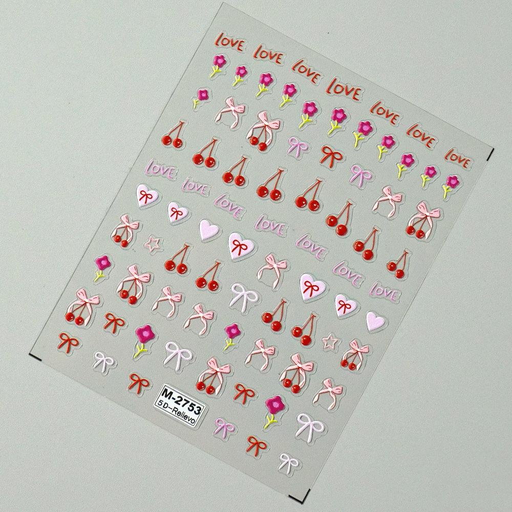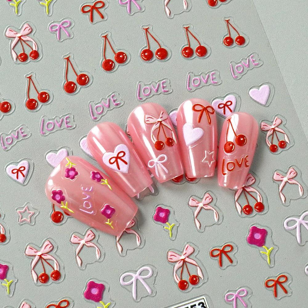 Nuevas pegatinas para uñas Redanco con lazo de amor rosa en relieve 5D, pegatinas tridimensionales para uñas M-2753