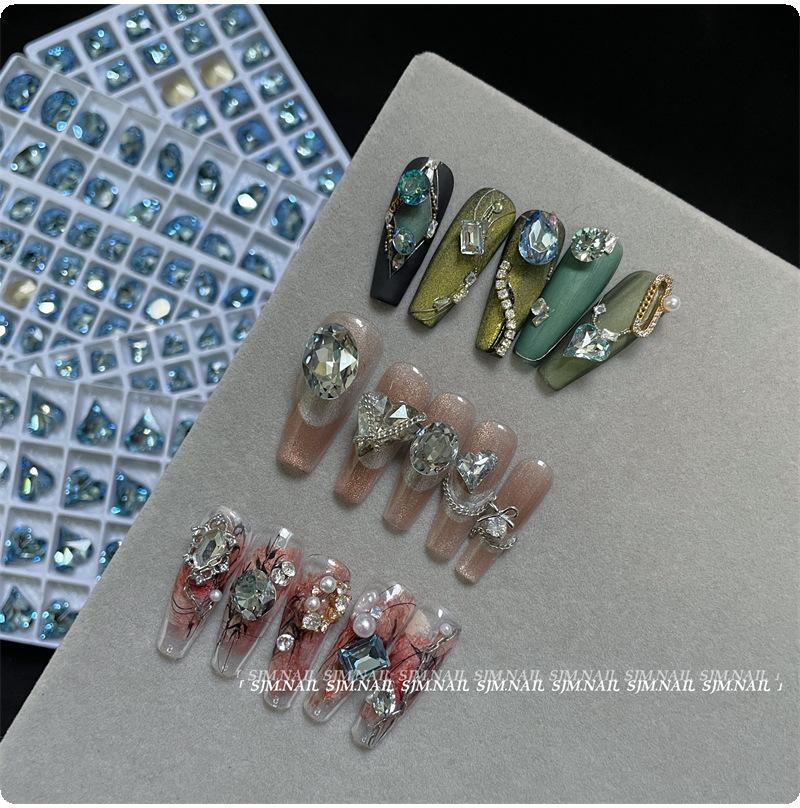 Broca para uñas Super Flash D Light, color azul turquesa, punta especial, K9, forma especial, forma de corazón de melocotón, gota de agua, redonda, accesorios para brocas apilables