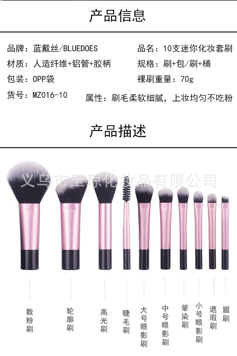 Juego de 10 mini brochas de maquillaje transfronterizas, combinación de brochas, brocha para rubor suave, brocha para maquillaje en polvo, brocha para huevo, bolsa, herramientas de belleza