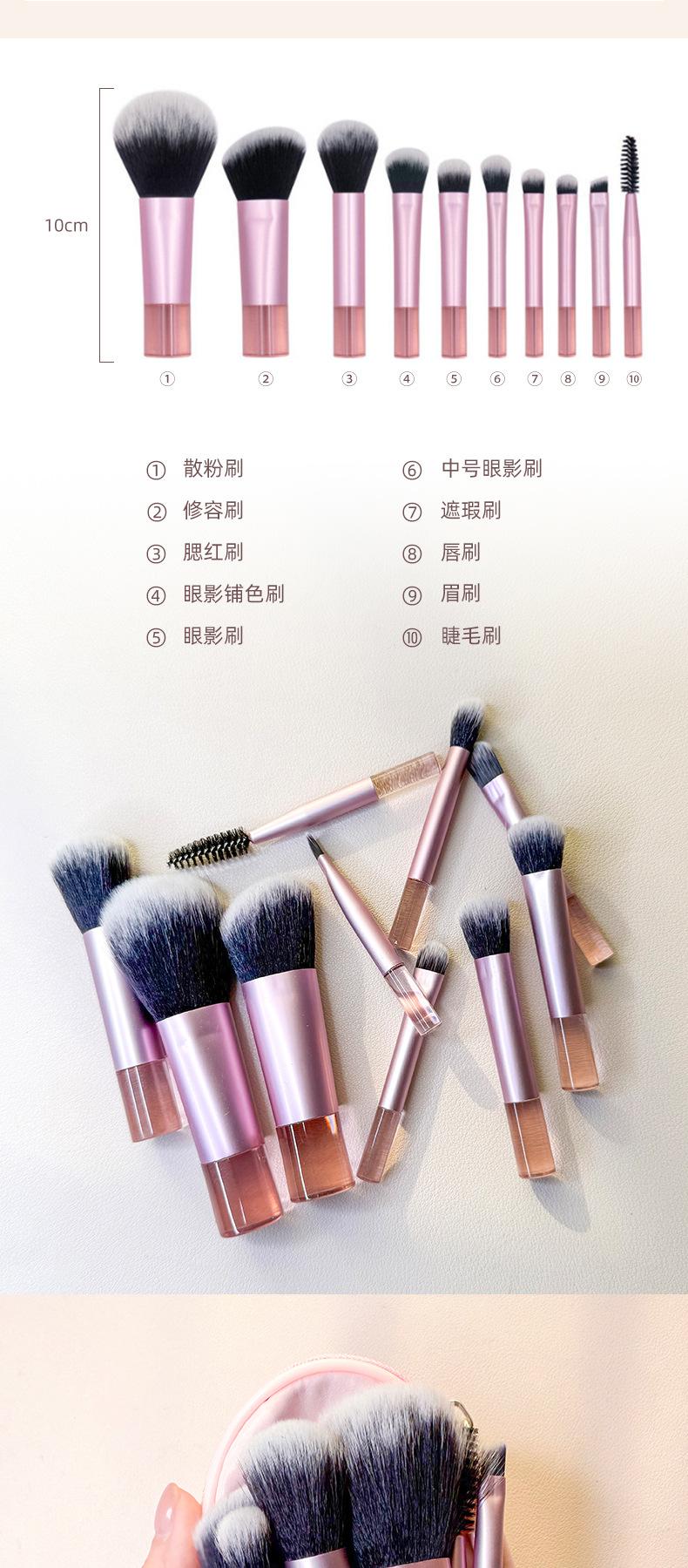 Brocha cosmética transfronteriza, 10 unidades, mini brocha de viaje portátil con mango de cristal para reparar polvos y rubor.
