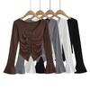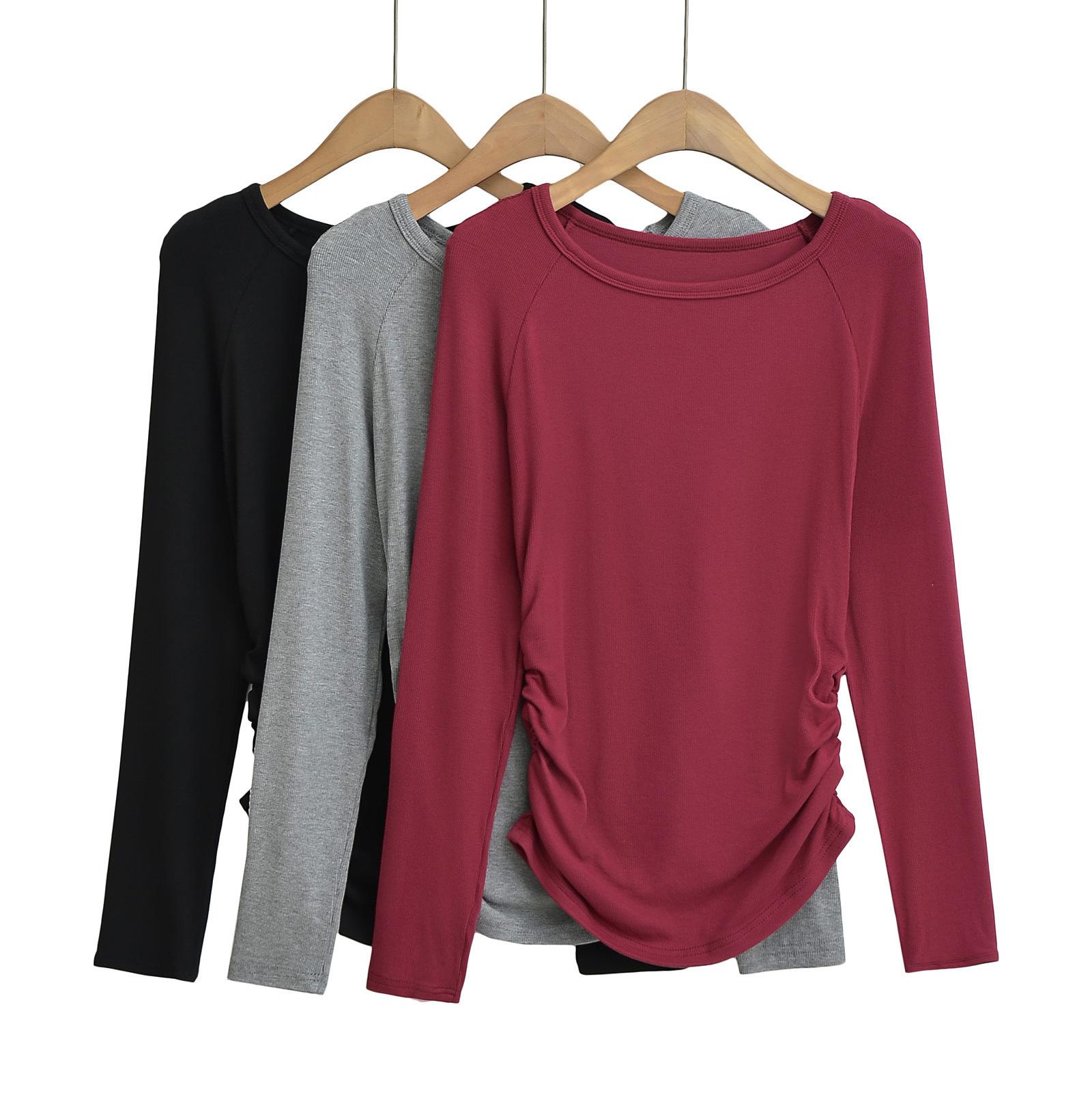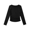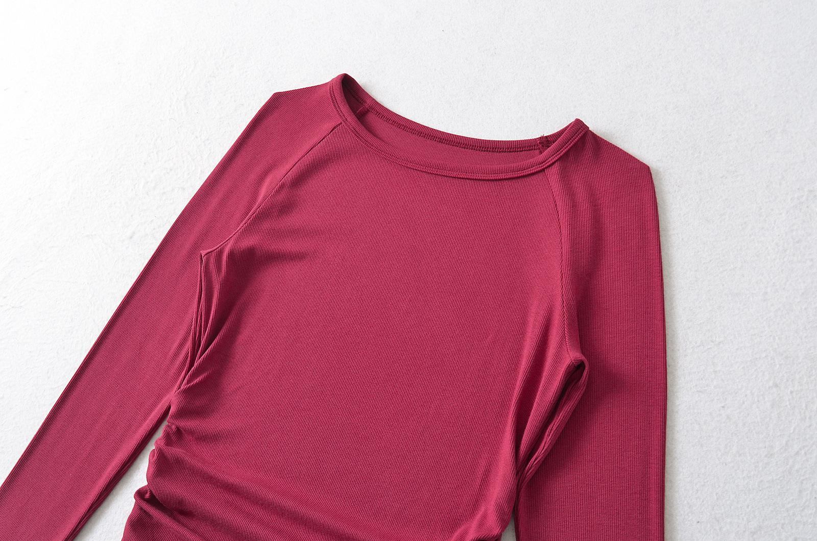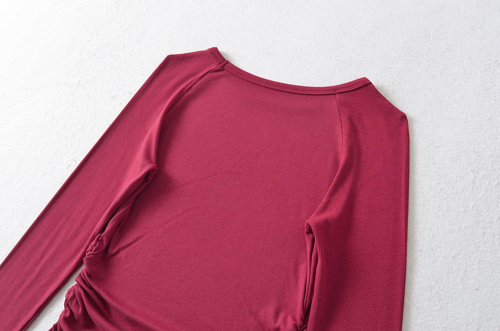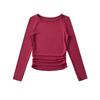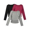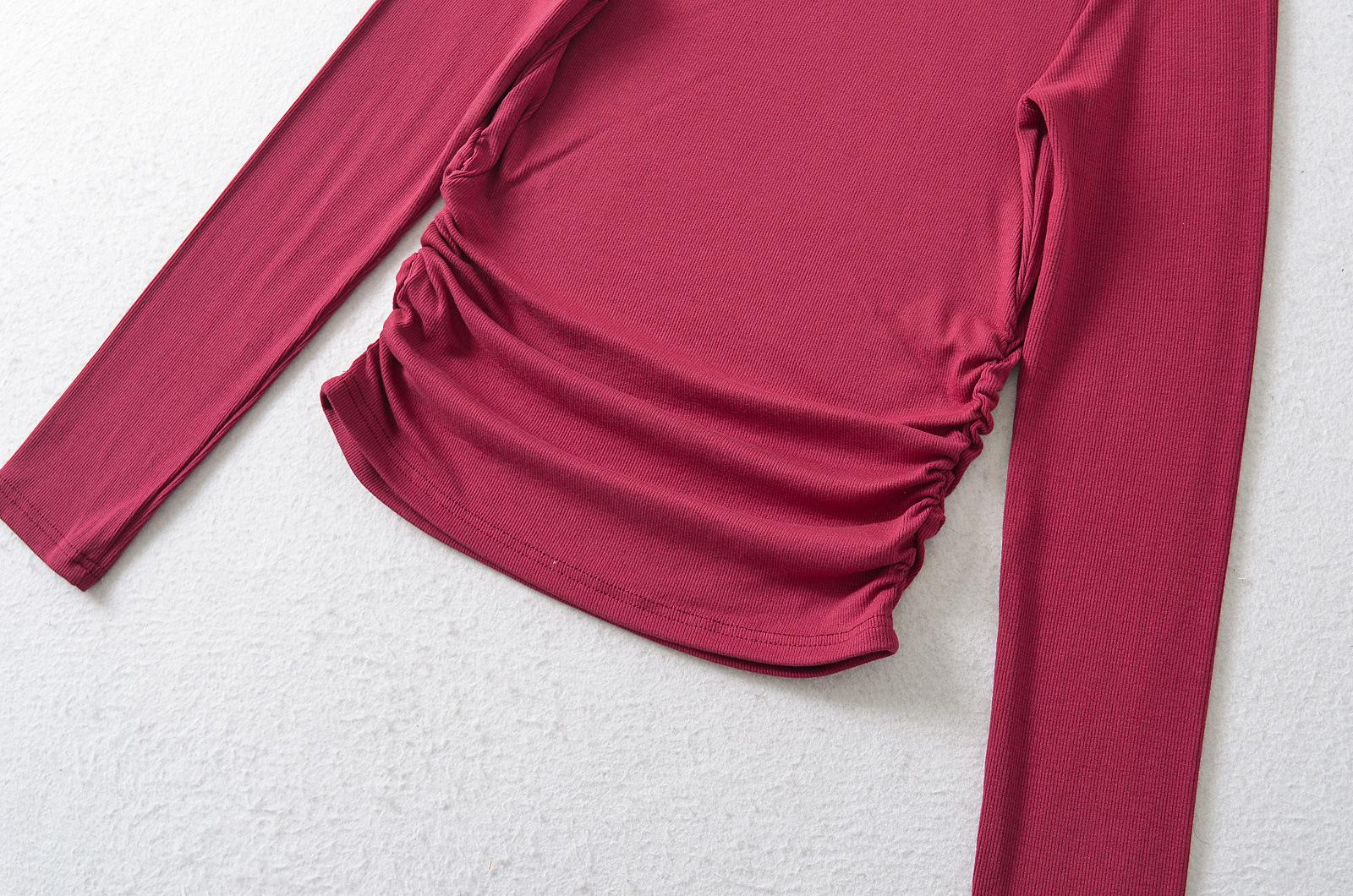 Camiseta de manga larga con cuello redondo y hombros descubiertos para mujer, estilo americano, estilo sexy, ajustada, con cintura plisada, para otoño e invierno de 2024