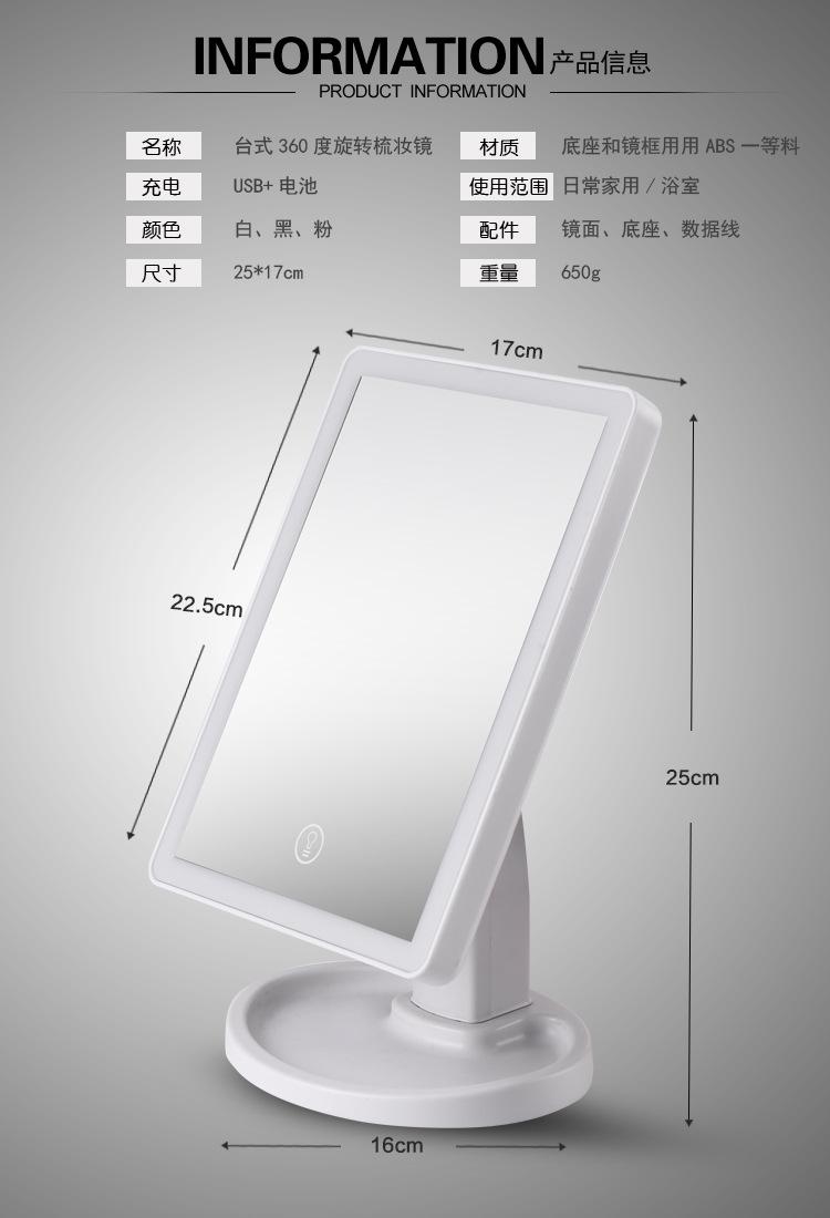 Nombre del producto: Espejo de tocador de escritorio giratorio 360°