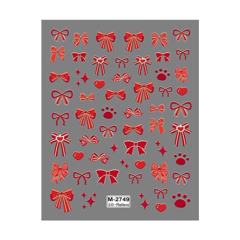 Nuevas pegatinas para uñas con lazo rojo en relieve 5D, pegatinas decorativas para uñas, venta al por mayor, M-2749
