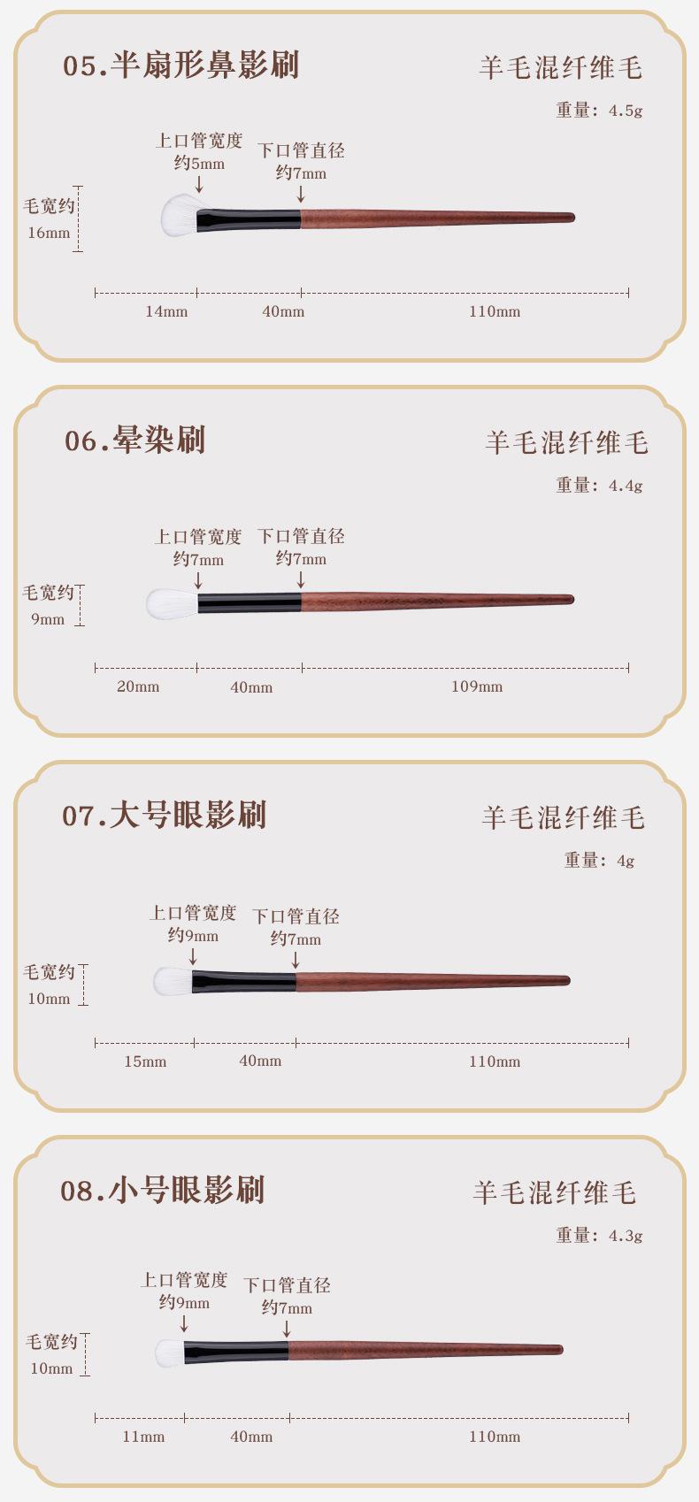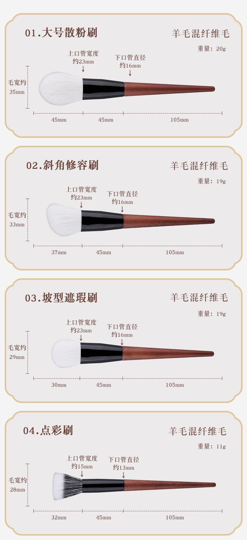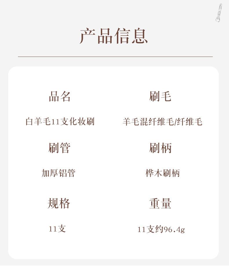 White wool 11-count makeup brush set, White wool 11-count makeup brush set + lychee pattern strap bag