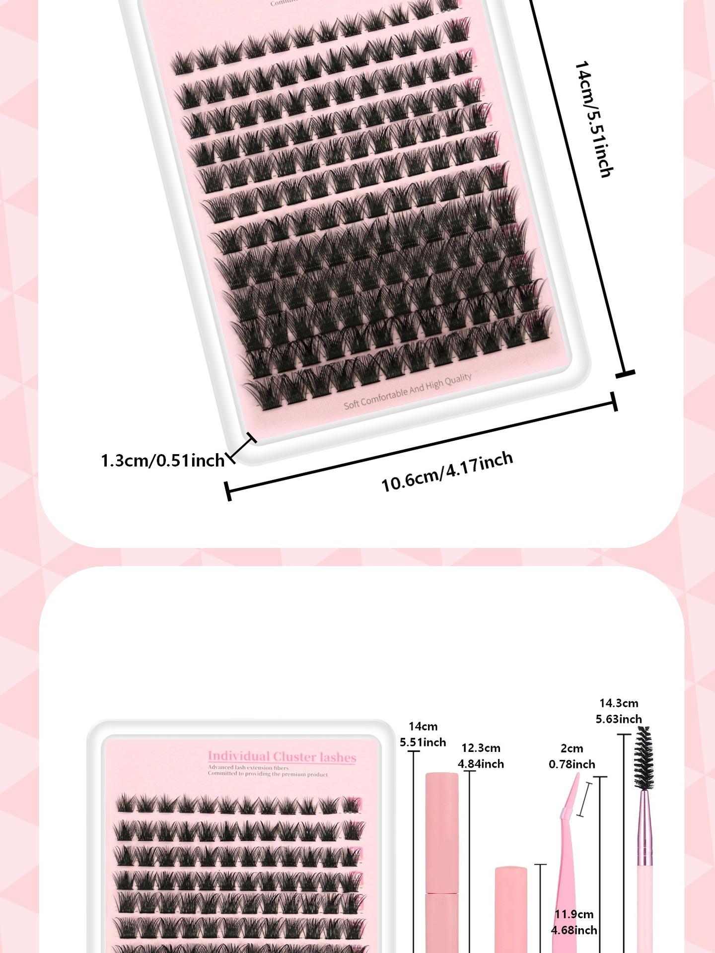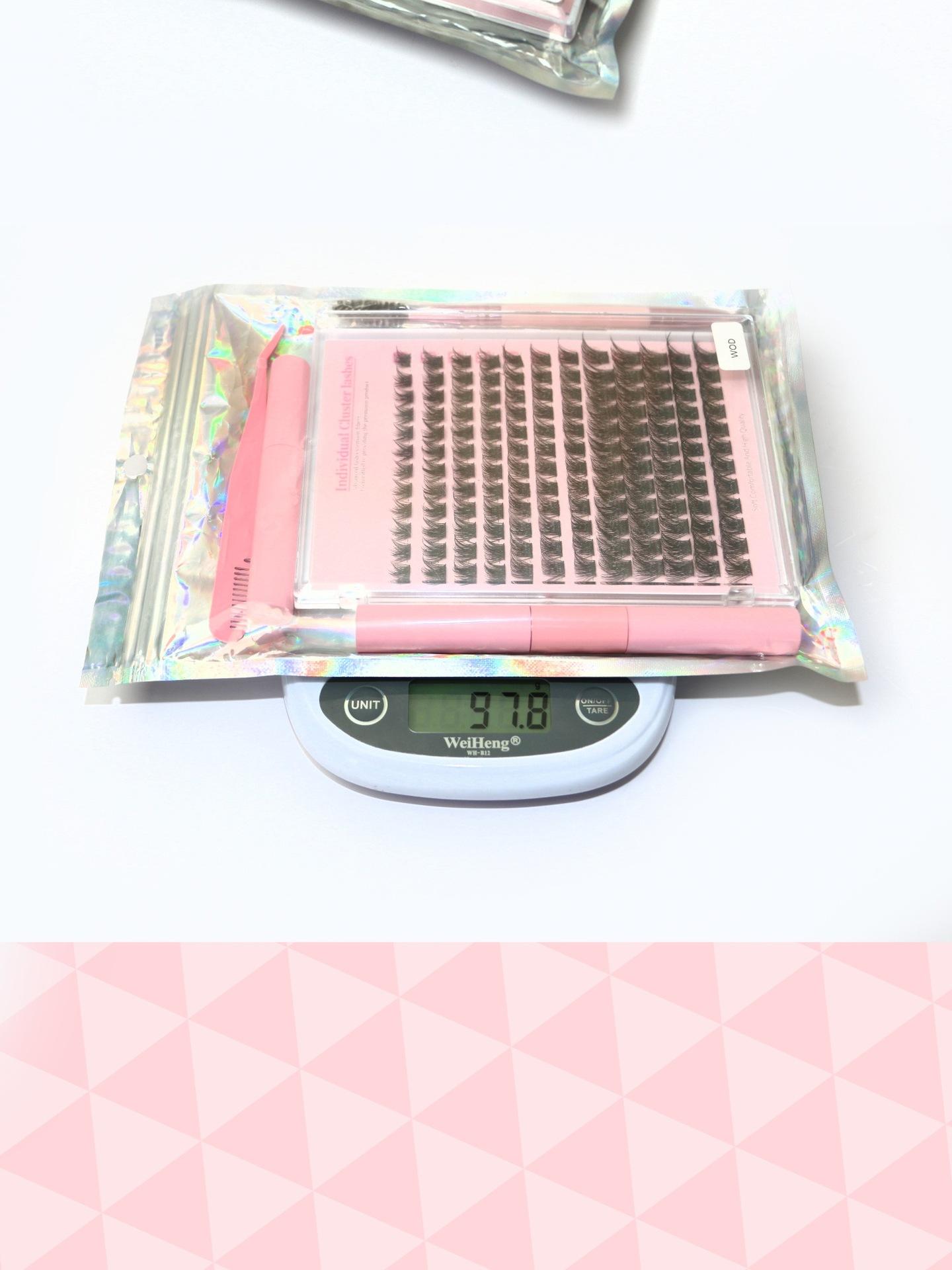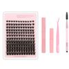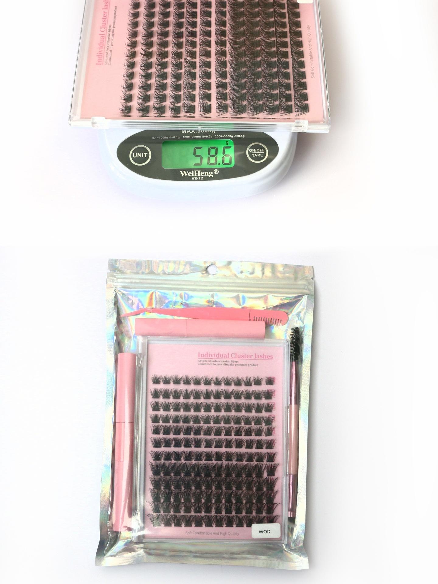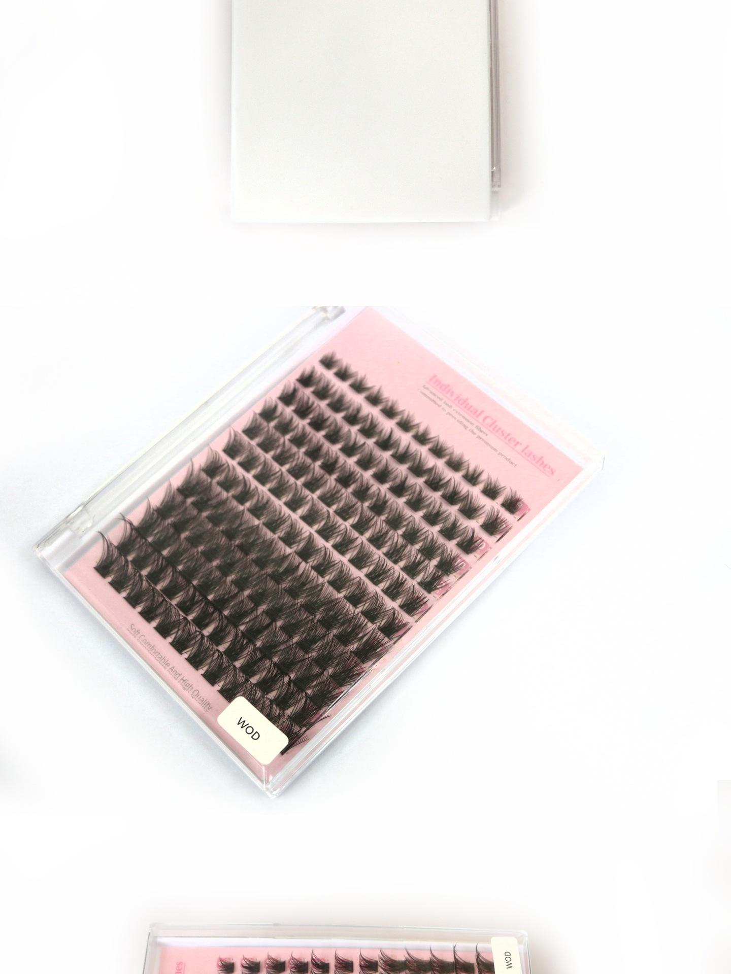 Diy 12-row wod eyelash box + glue + tweezers + makeup remover + powder brush 5-piece set (white and pink box (white and pink box random)