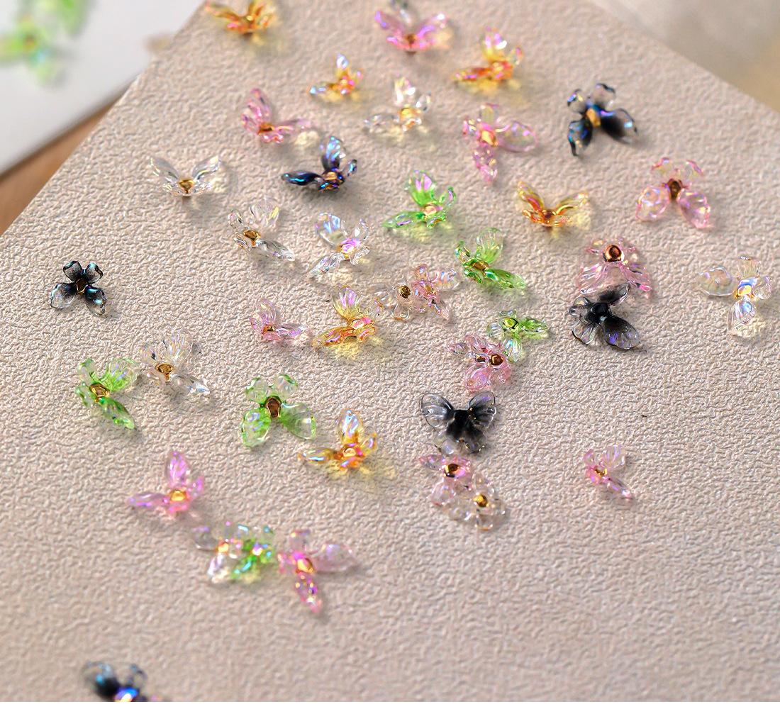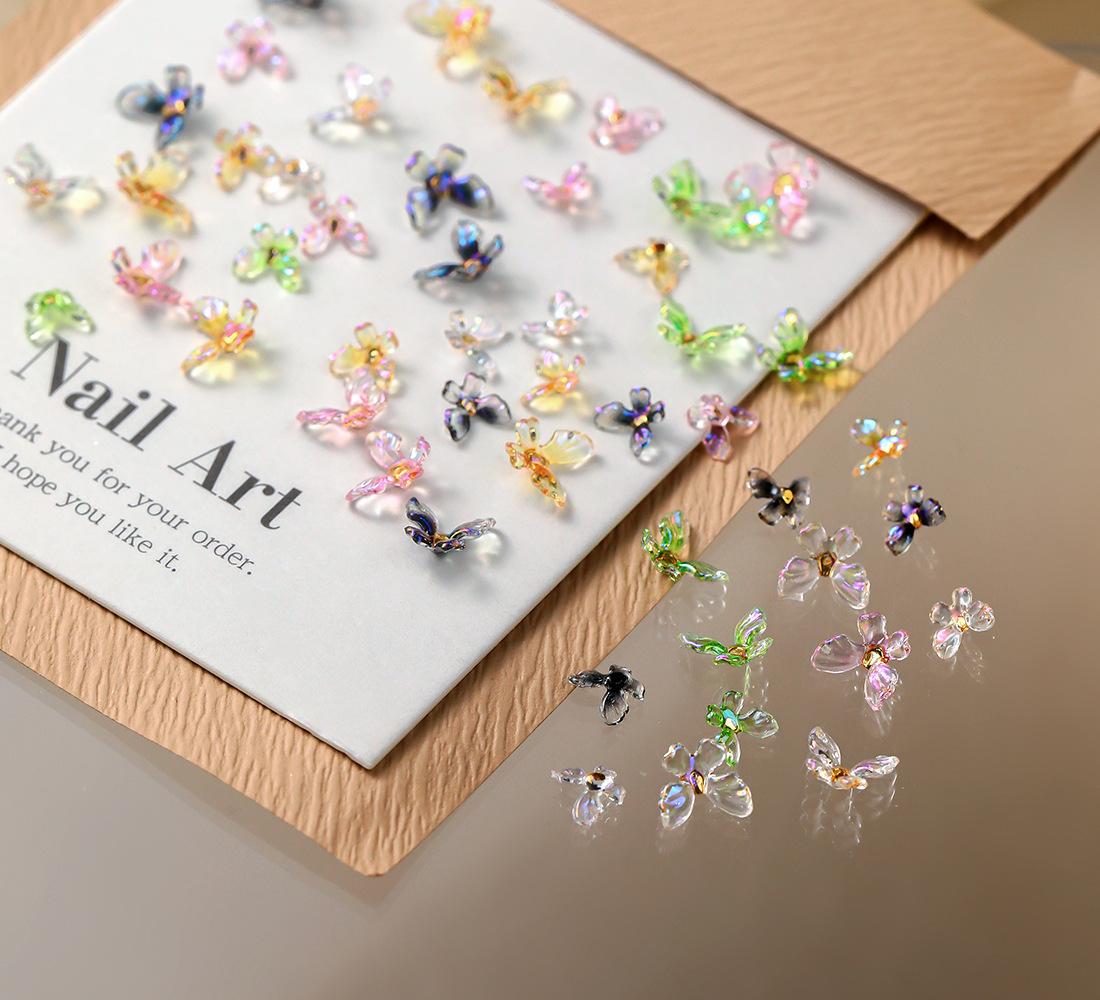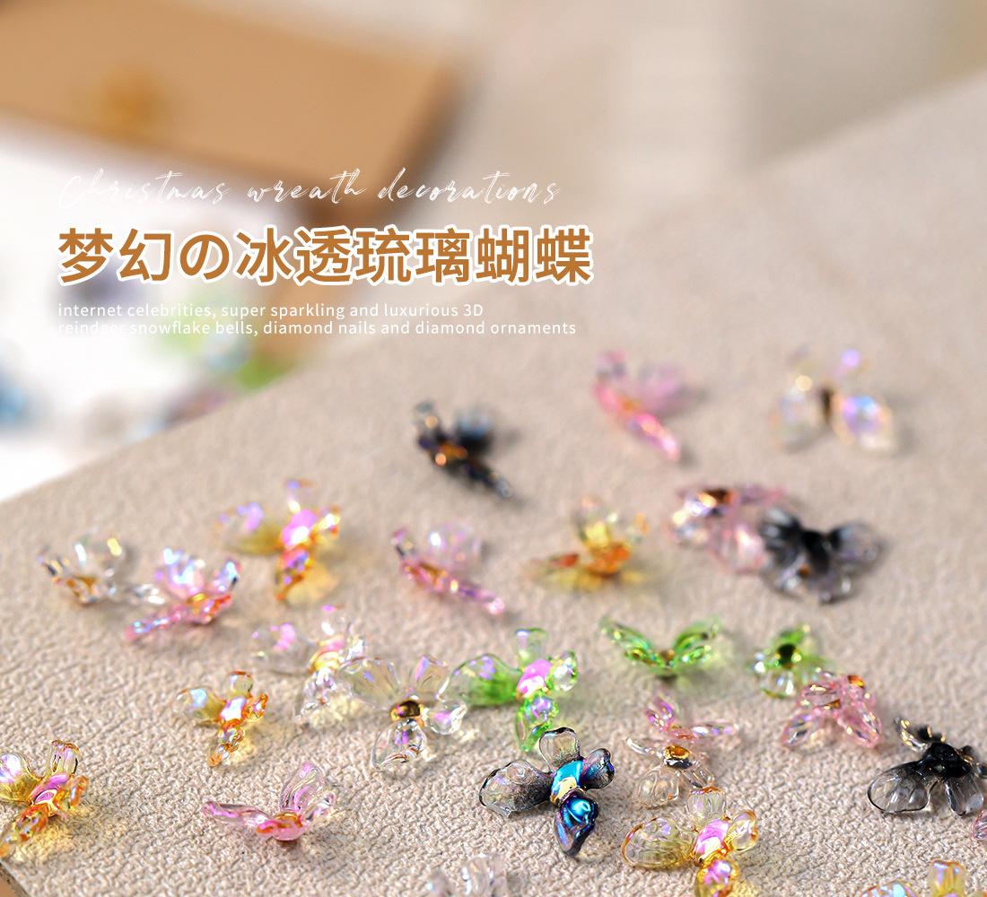 Accesorios Populares para Arte de Uñas Mezclados con Accesorios de Mariposas de Vidrio Iridiscente Tridimensional Mini Accesorios Portátiles para Uñas