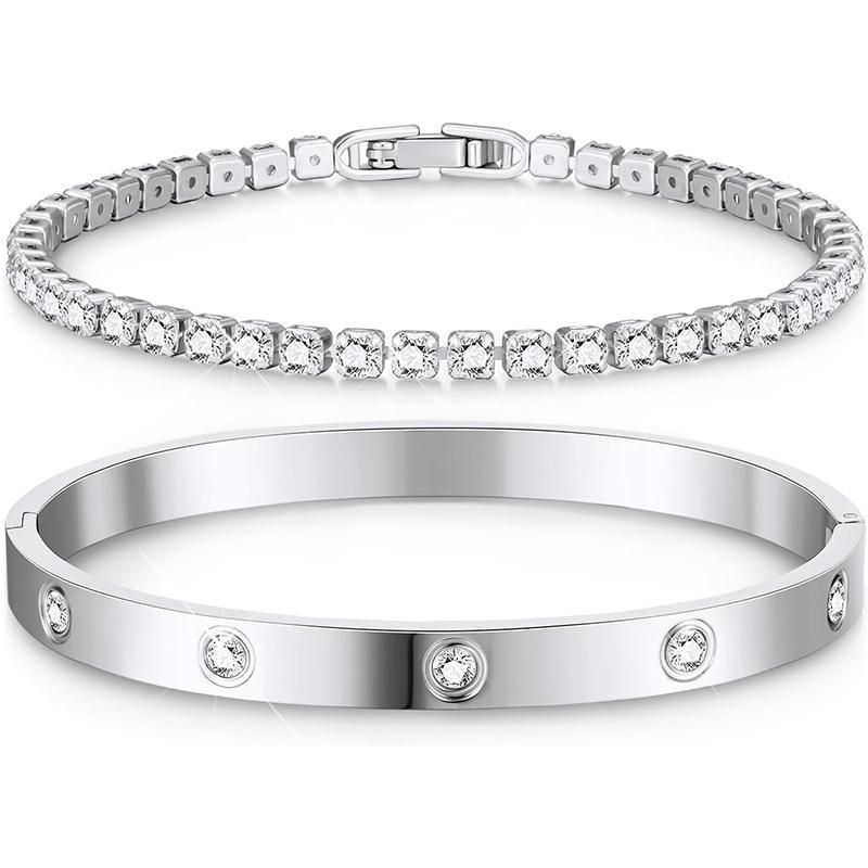 Pulsera de diamantes de circonita incrustada nueva de Amazon transfronteriza Europa y América, traje de pulsera de lujo ligero para mujer al por mayor, joyería de mano para niña