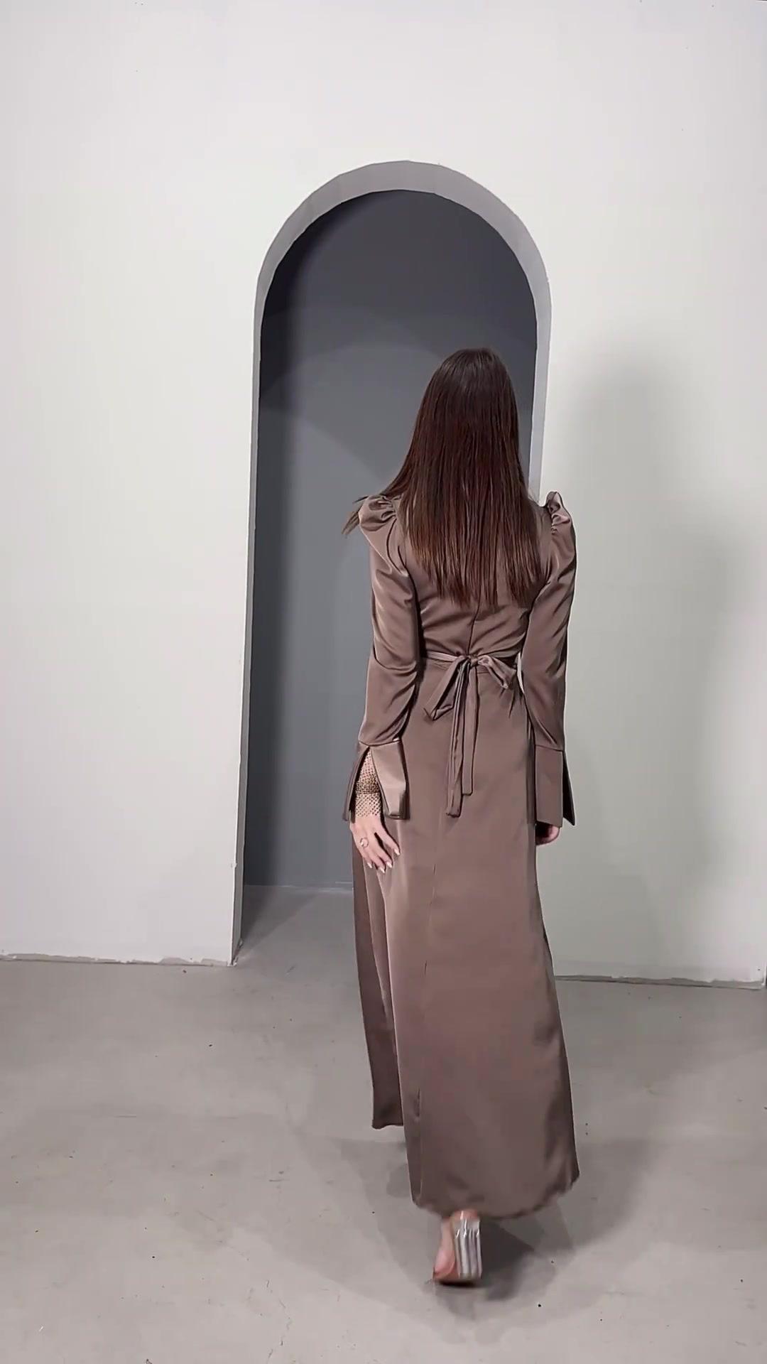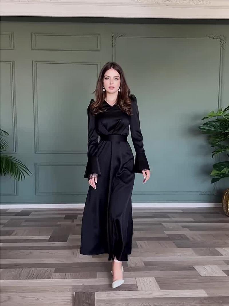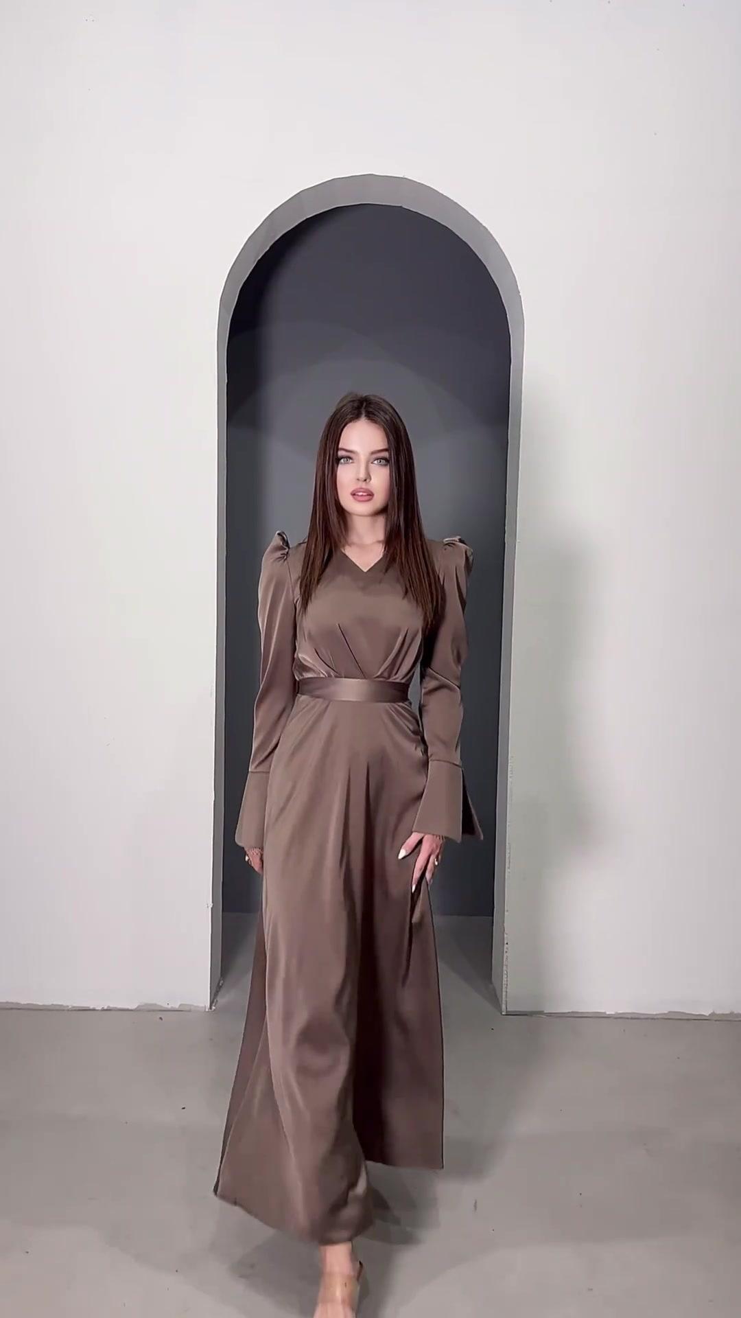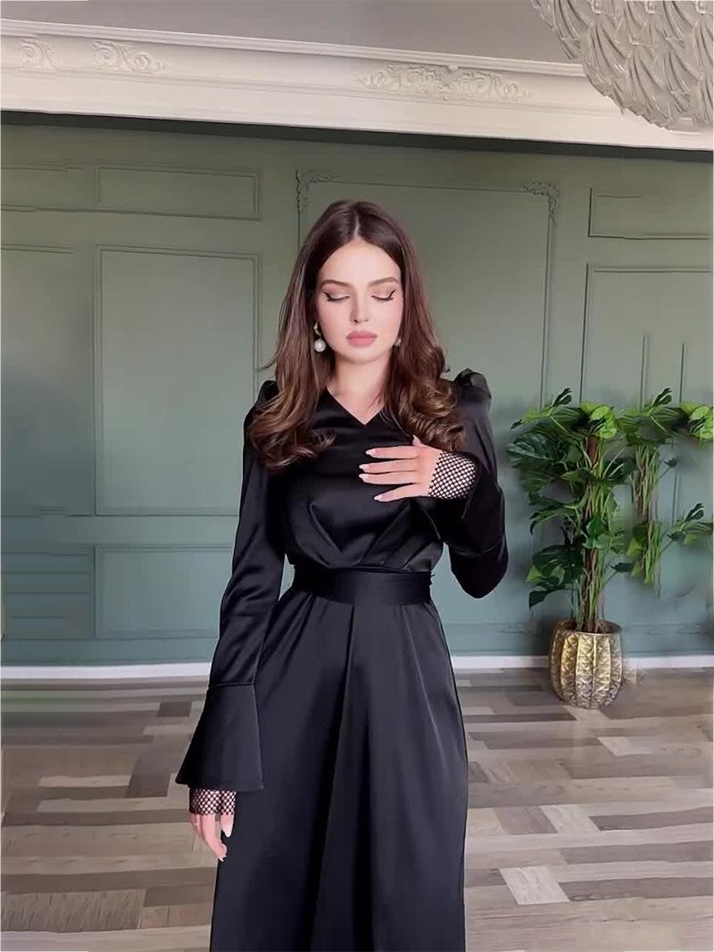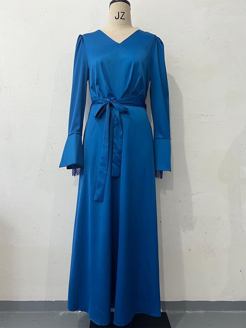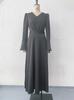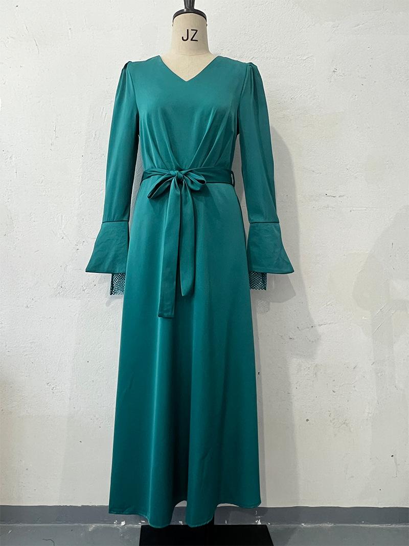 Vestido con cinturón ajustado y manga larga con escote en V y color liso, estilo europeo y americano, para otoño de 2023, transfronterizo de Amazon.