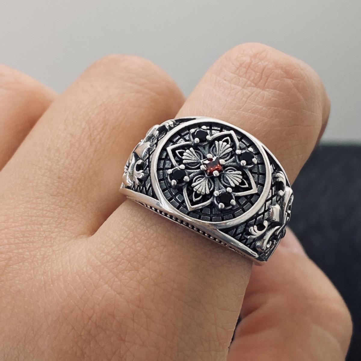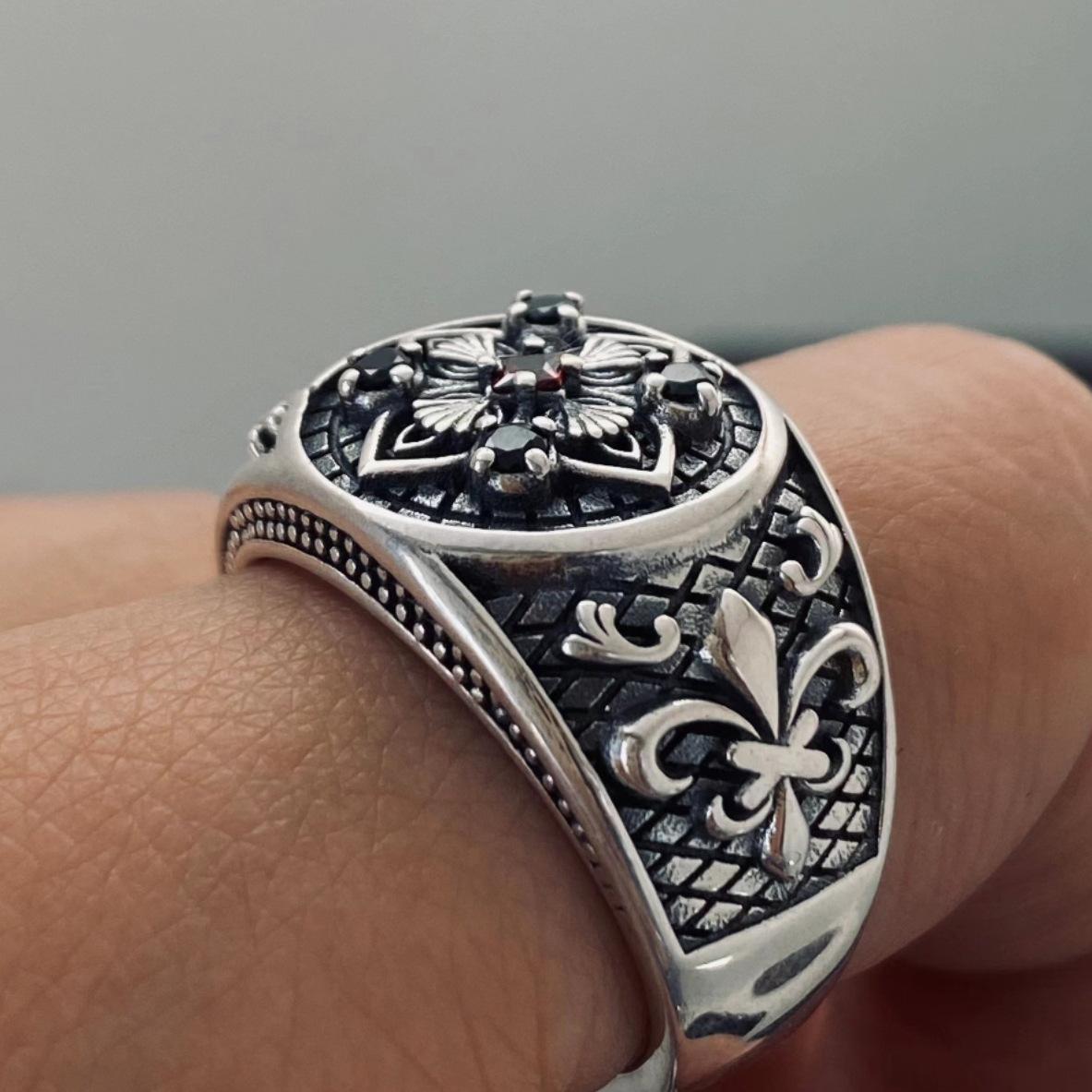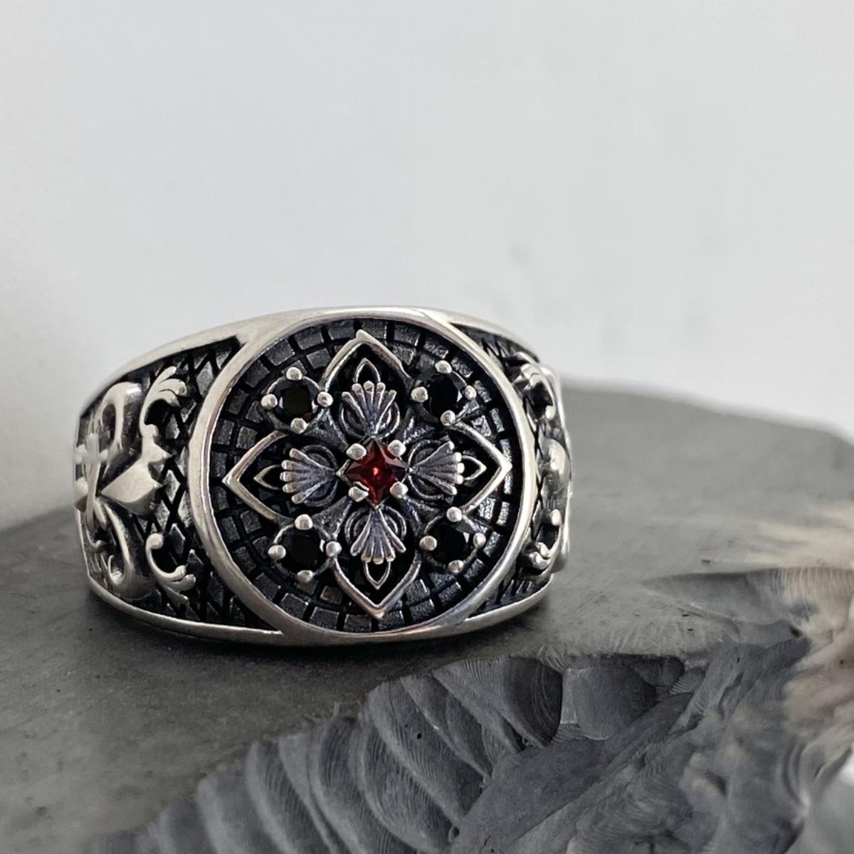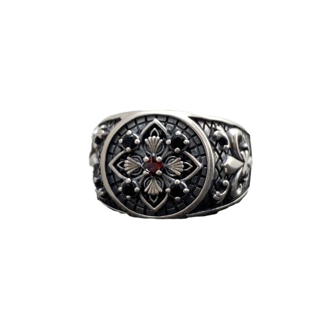 Xiangxu, anillo de apertura con patrón de circón incrustado de industria pesada de moda retro, anillo de marea dominante para hombres, venta directa de fábrica