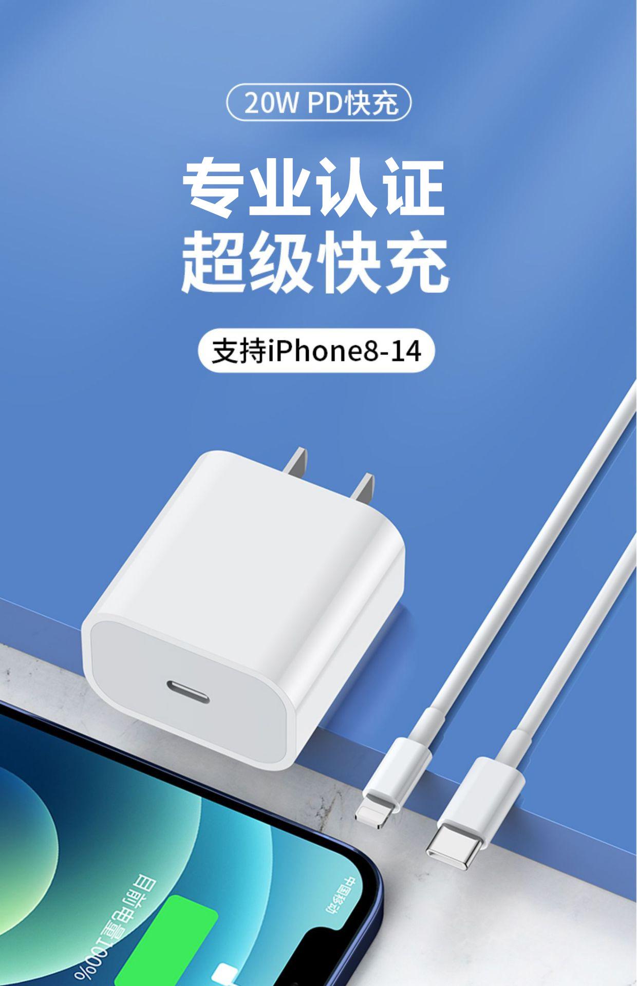 Cabezal de Carga Rápida Pd 20W Adecuado para Iphone14 Apple 13 Cabezal de Carga Cargador Carga Rápida Teléfono Móvil Set de Cable de Datos