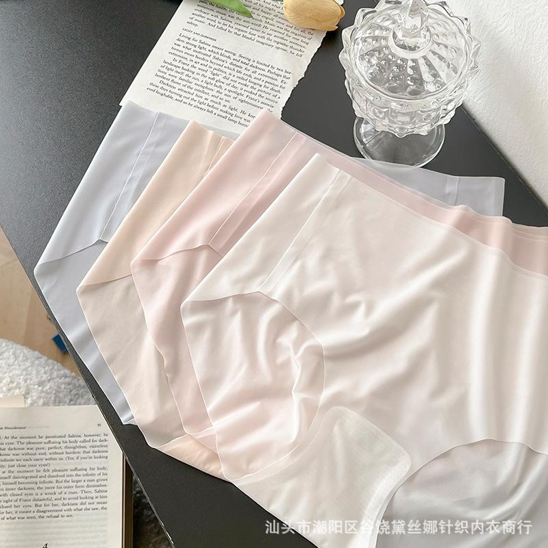 Braguitas de verano de una pieza de seda helada color melocotón para mujer, ligeras, sin marcas, de algodón puro, antibacterianas, con entrepierna y cadera.