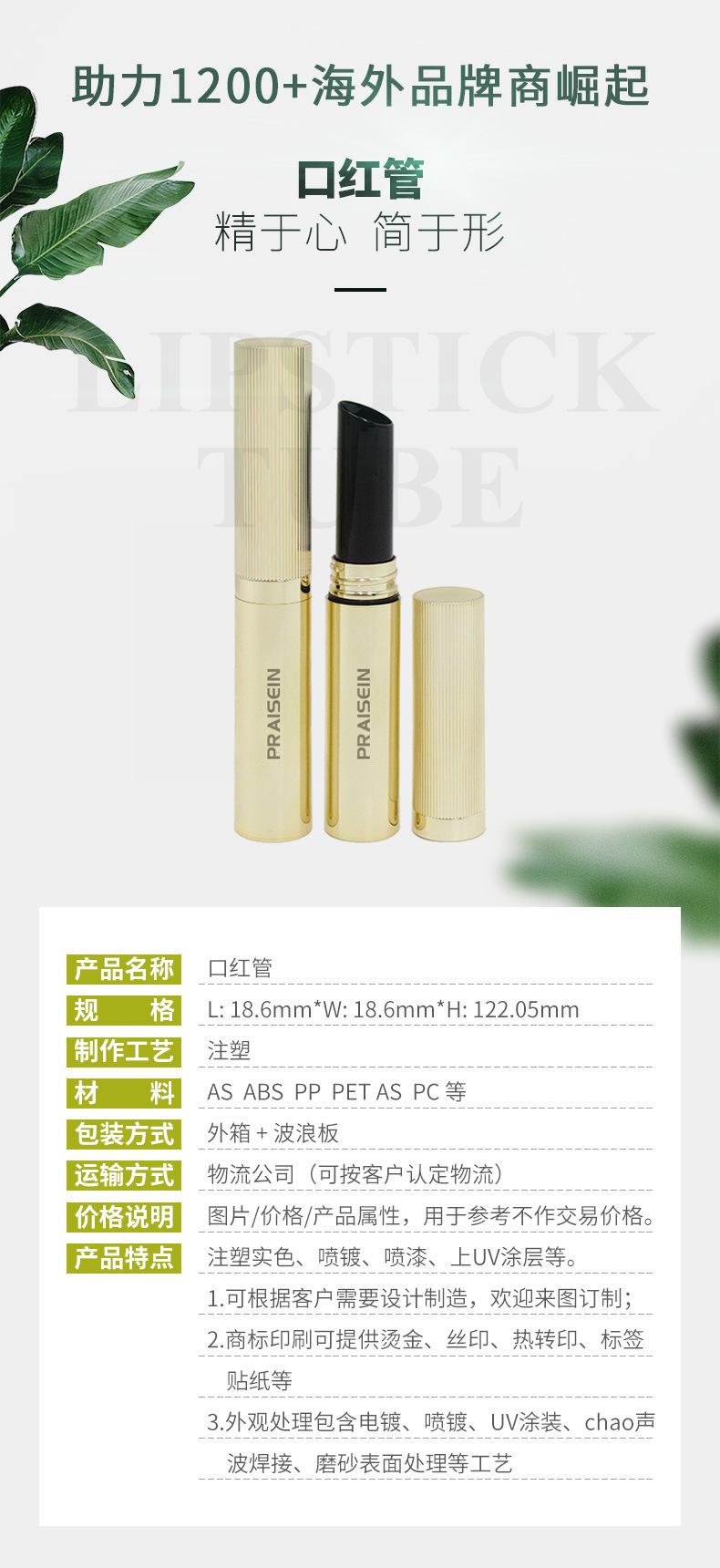 Tubo Vacío de Labial Dorado Hermético Redondo de Plástico Oblicuo Material de Empaque Personalización