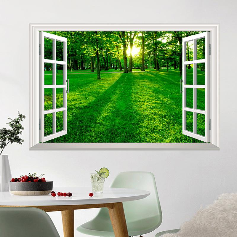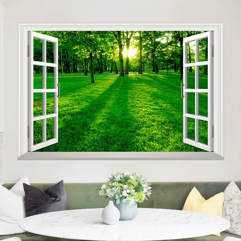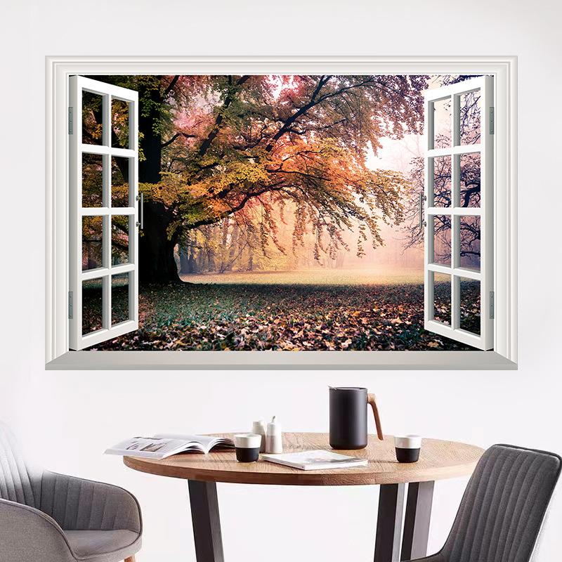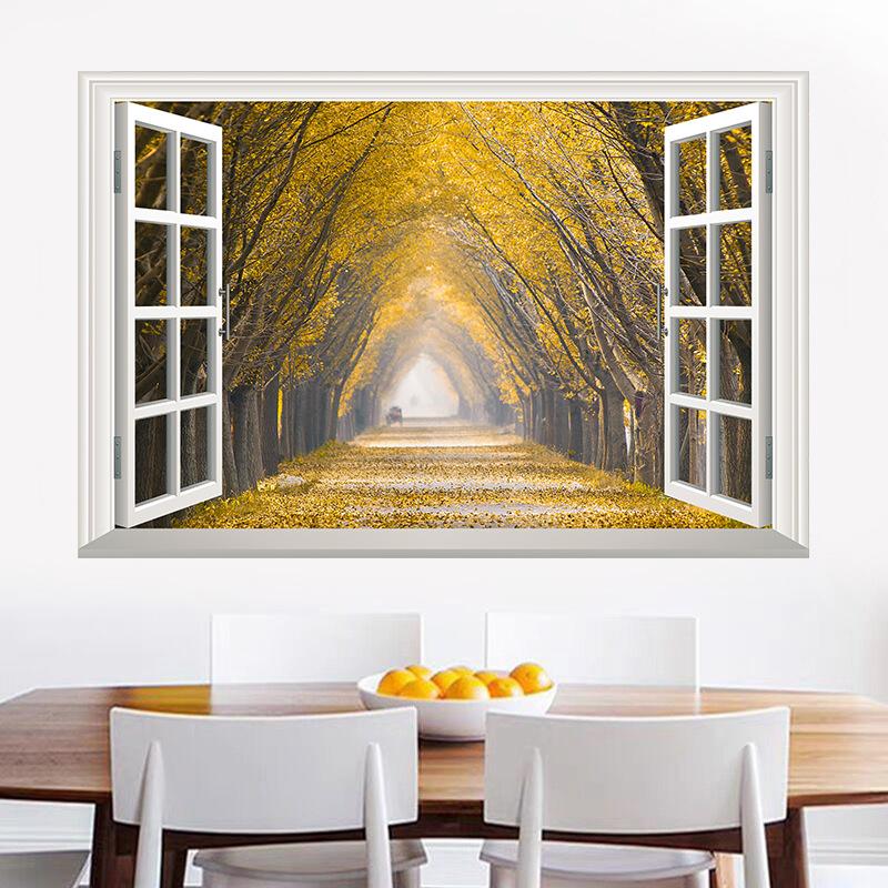 Compra Papel tapiz autoadhesivo pegatinas de pared mural sala de estar pared de fondo pintura de paisaje ventana falsa creativa flor árbol pintura de paisaje pegatinas pegatinas pegatinas al por mayor en Joom.pro