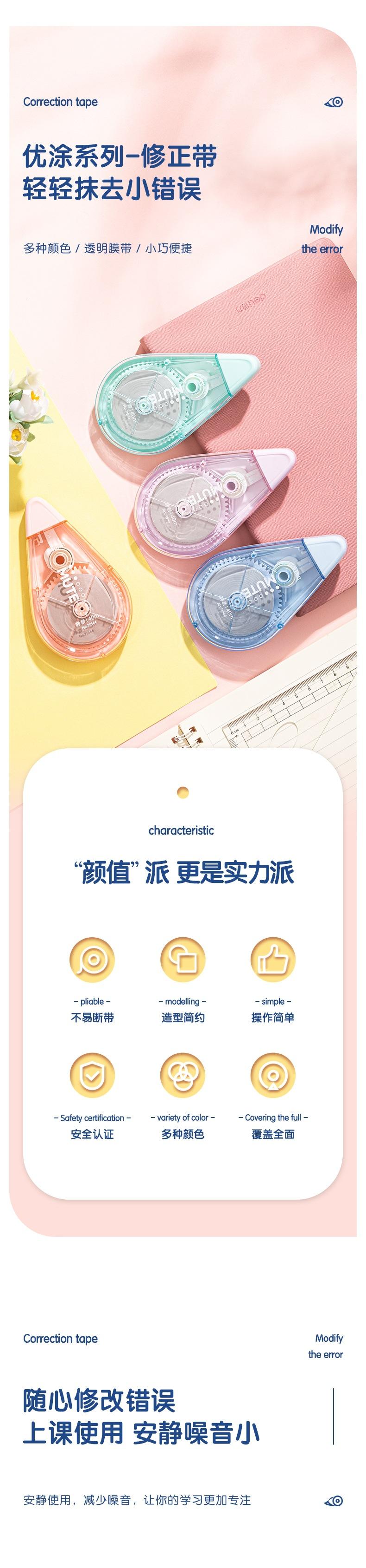 Deli Deli 71544 cinta correctora 40m suave y no fácil de romper con cinta correctora de gran capacidad cinta correctora papelería de oficina