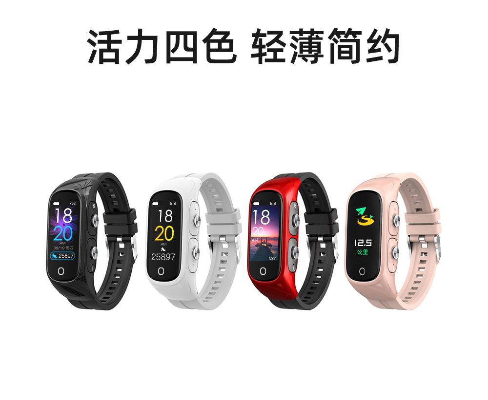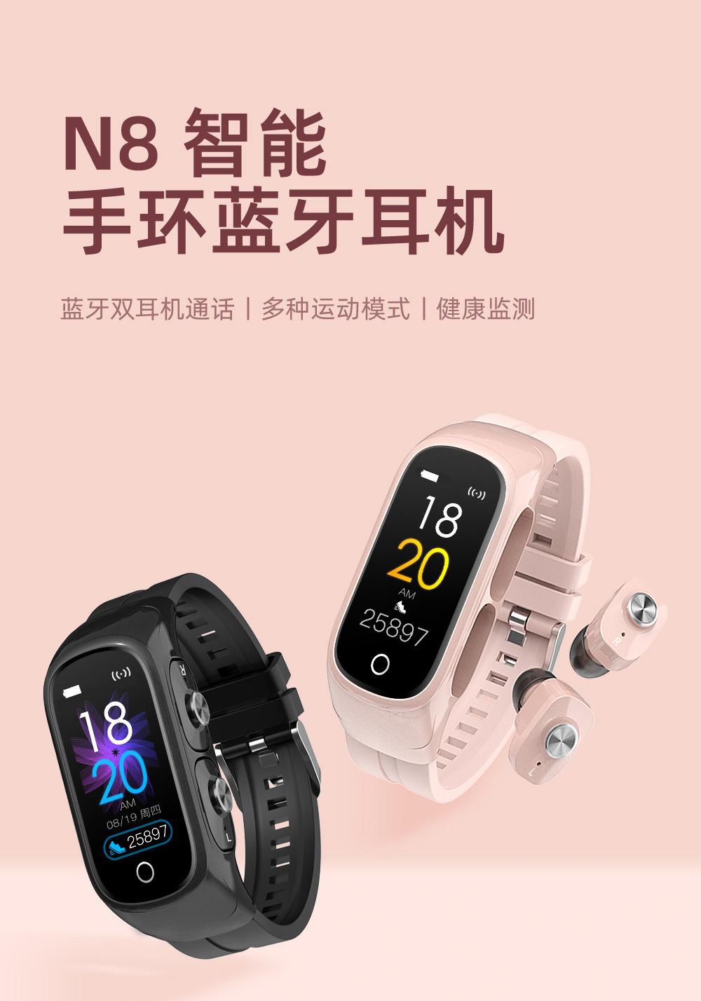 Compra Nuevo N8 Pantalla Táctil Completa Pulsera Inteligente Auriculares Bluetooth TWS 2 en 1 Llamada Deportes Reloj Inteligente al por mayor en Joom.pro