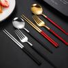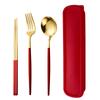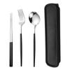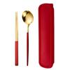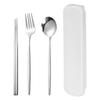 Cubiertos Portátiles de Acero Inoxidable Portugués Cuchara Tenedor Palillos Set de Tres Piezas Celebridad de Internet de Aspecto Sofisticado Set para Estudiantes para Exteriores