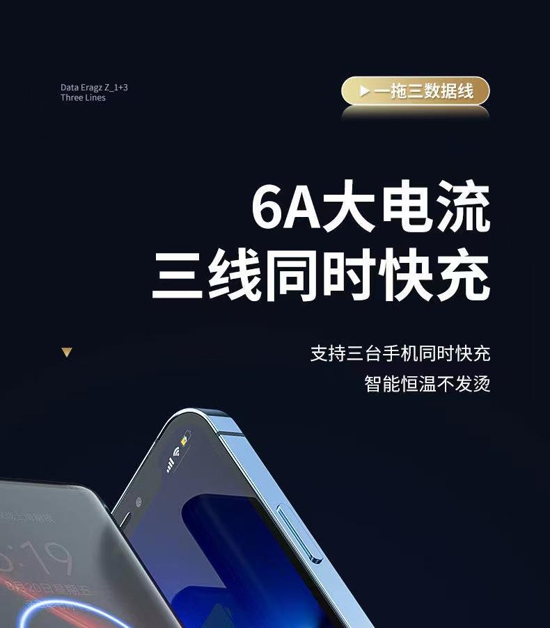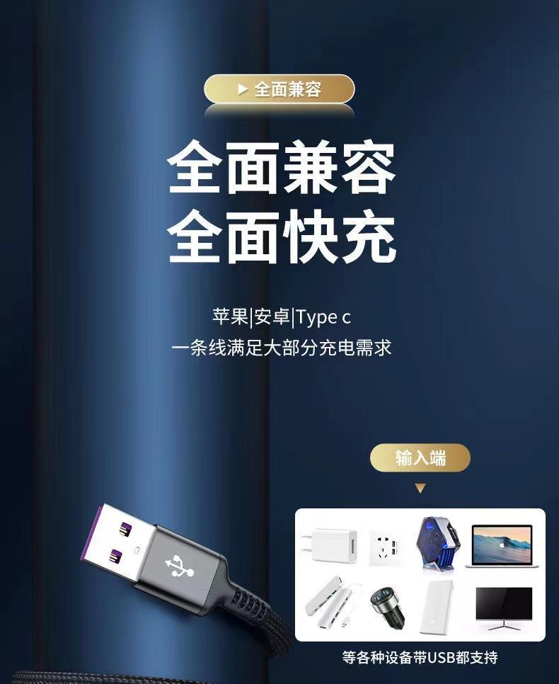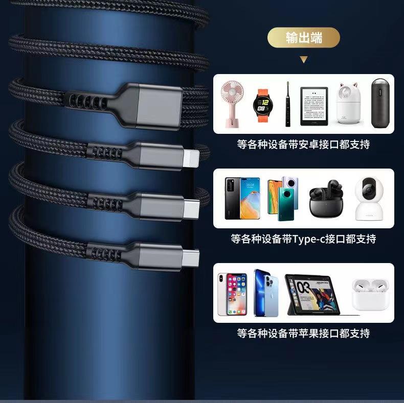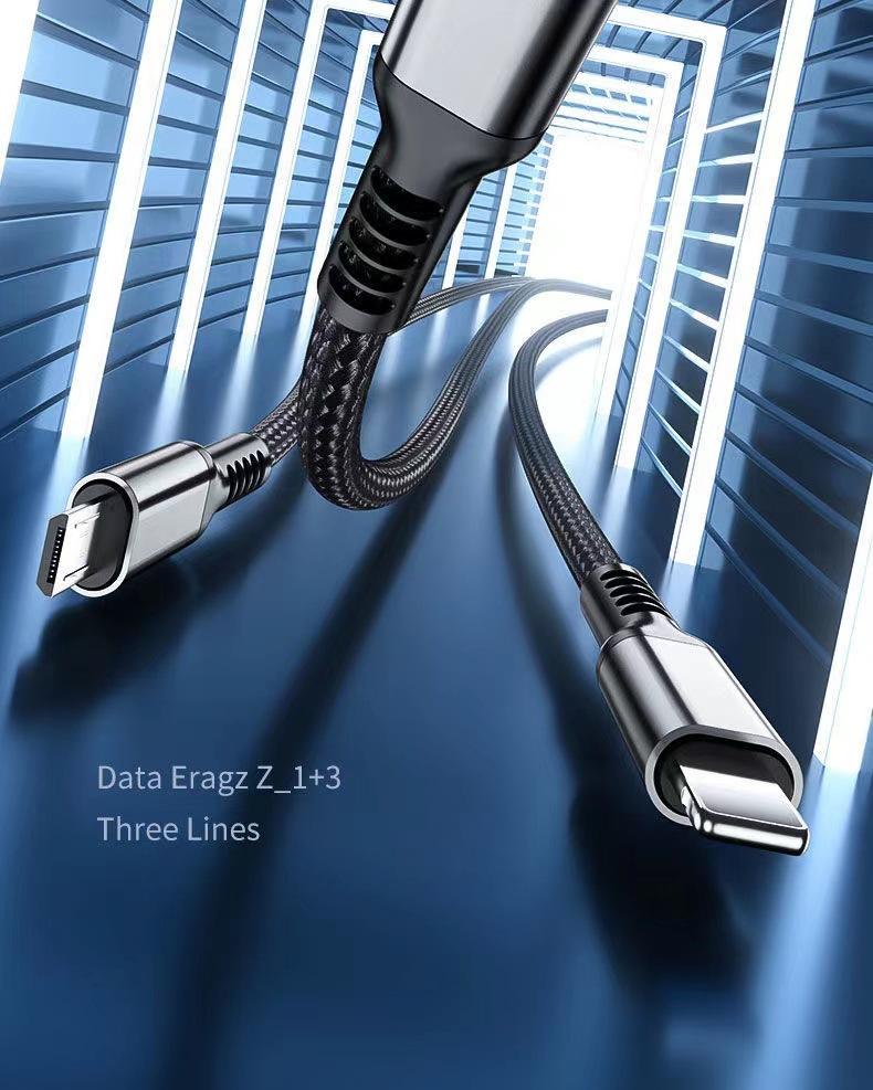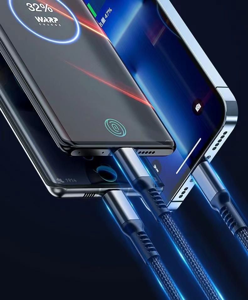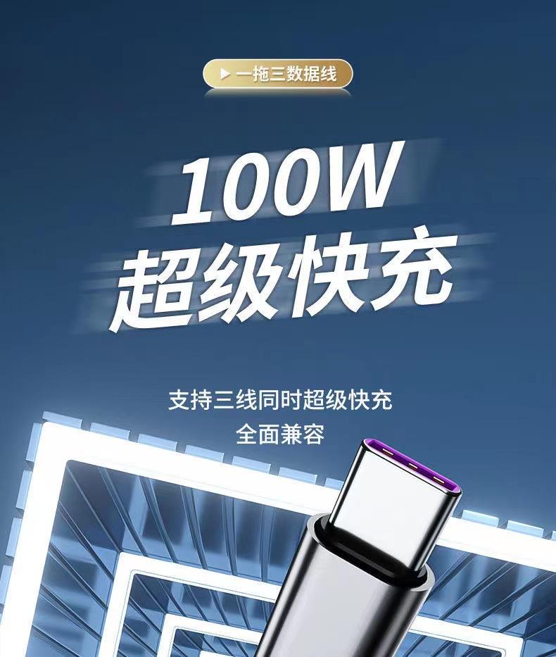 Carga Súper Rápida de 66W Uno-A-Tres Adecuada para Android Tipo-C Apple Trenzado Tres-En-Uno Cable de Datos para Teléfono Móvil