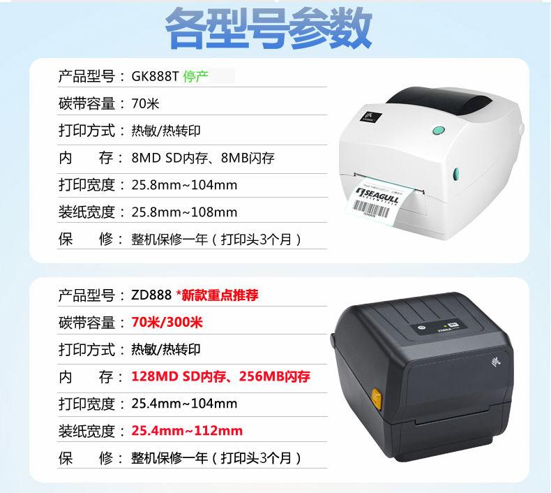 Zebra label printer zd888t barcode qr code self-adhesive supermarket price tag electronic single gk888t