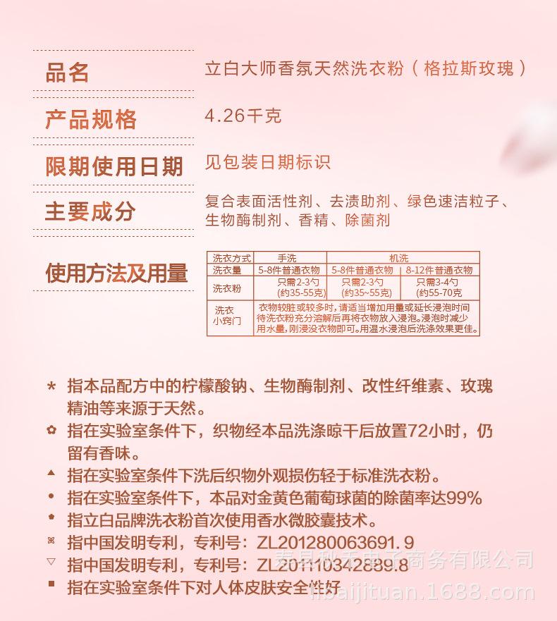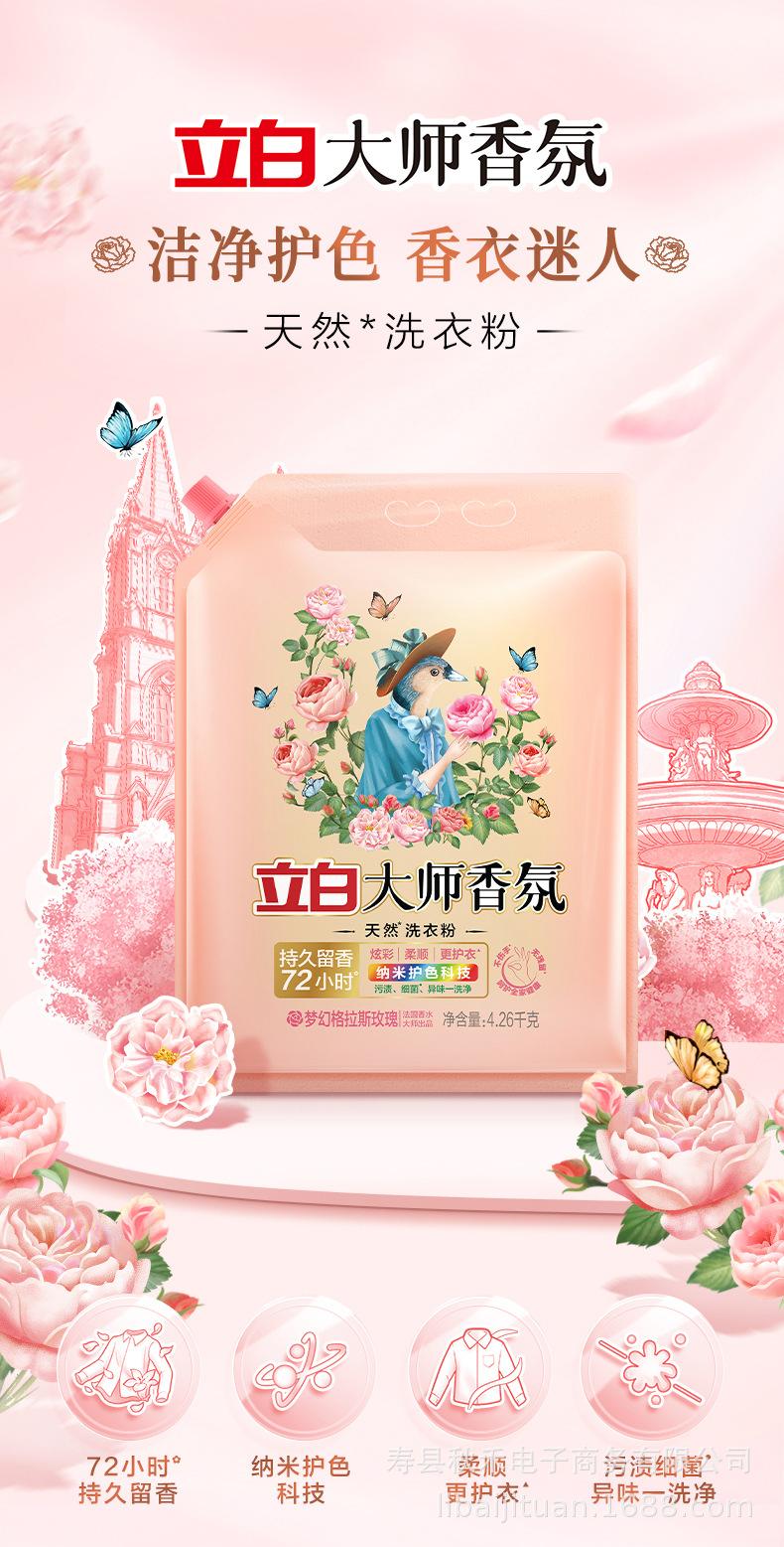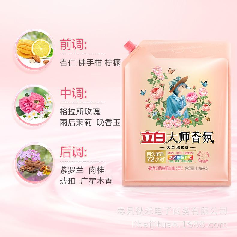 Detergente en polvo con fragancia maestra Li Bai, 4,26 kg, boquilla desviadora, fragancia duradera, bolsa de detergente en polvo con protección de color suave, venta al por mayor