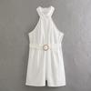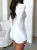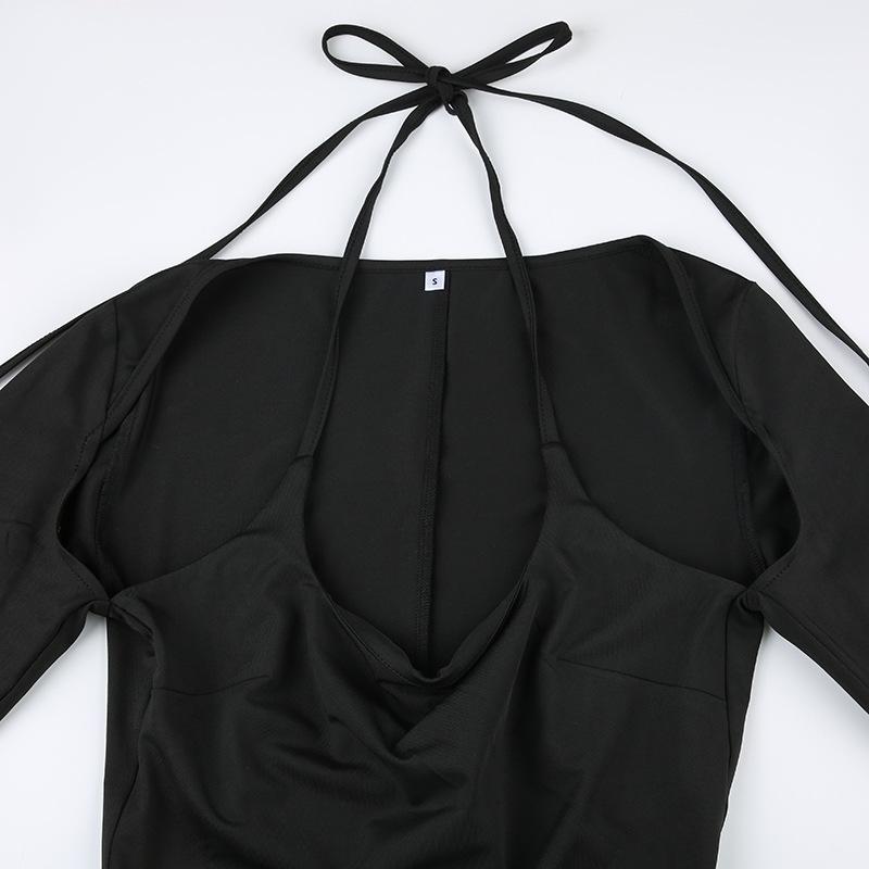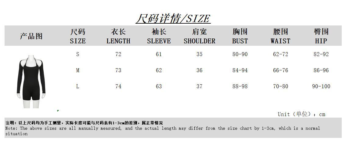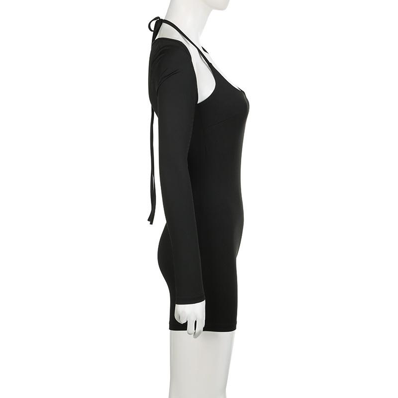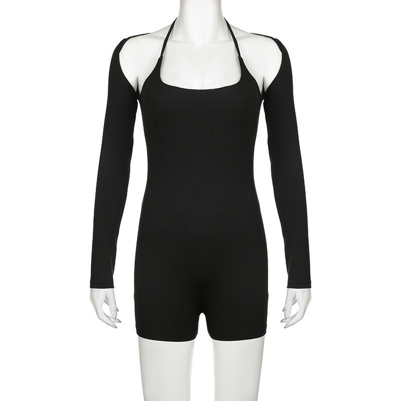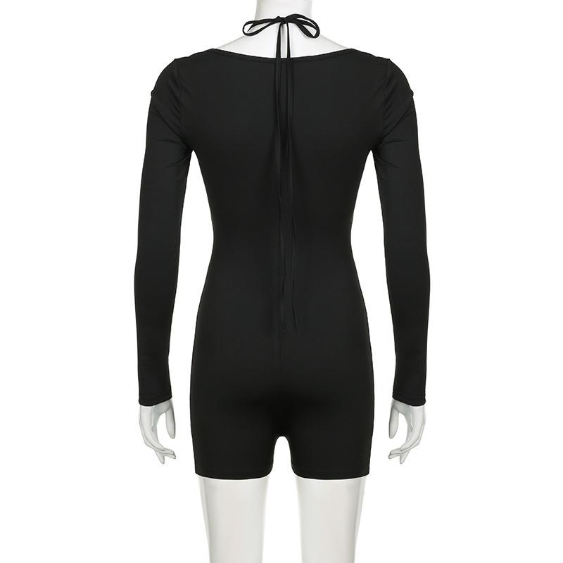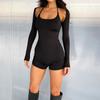 Pantalones cortos ajustados de una pieza con diseño de manga larga, cuello redondo, costuras halter, color sólido, para mujer europea y americana de primavera 2024
