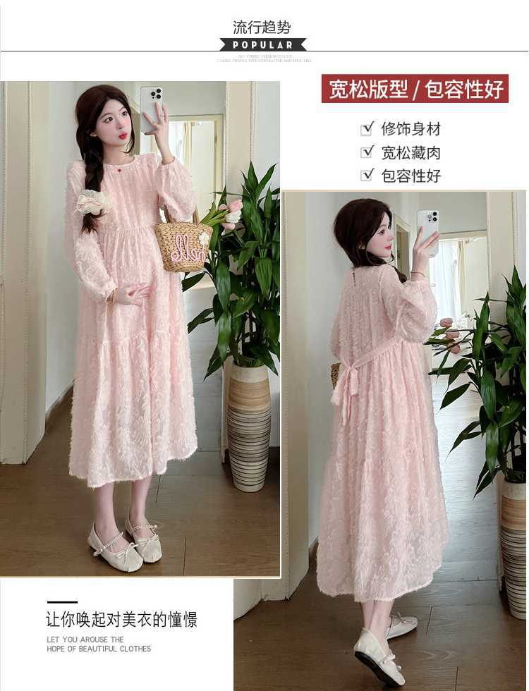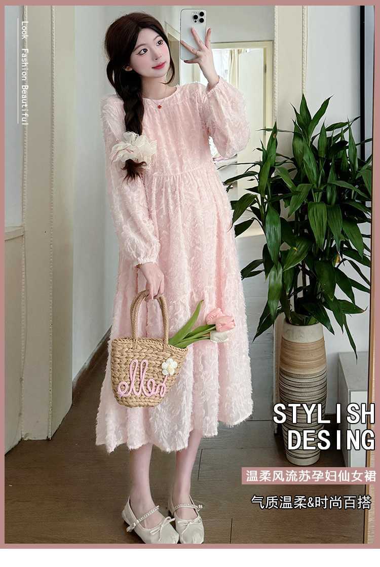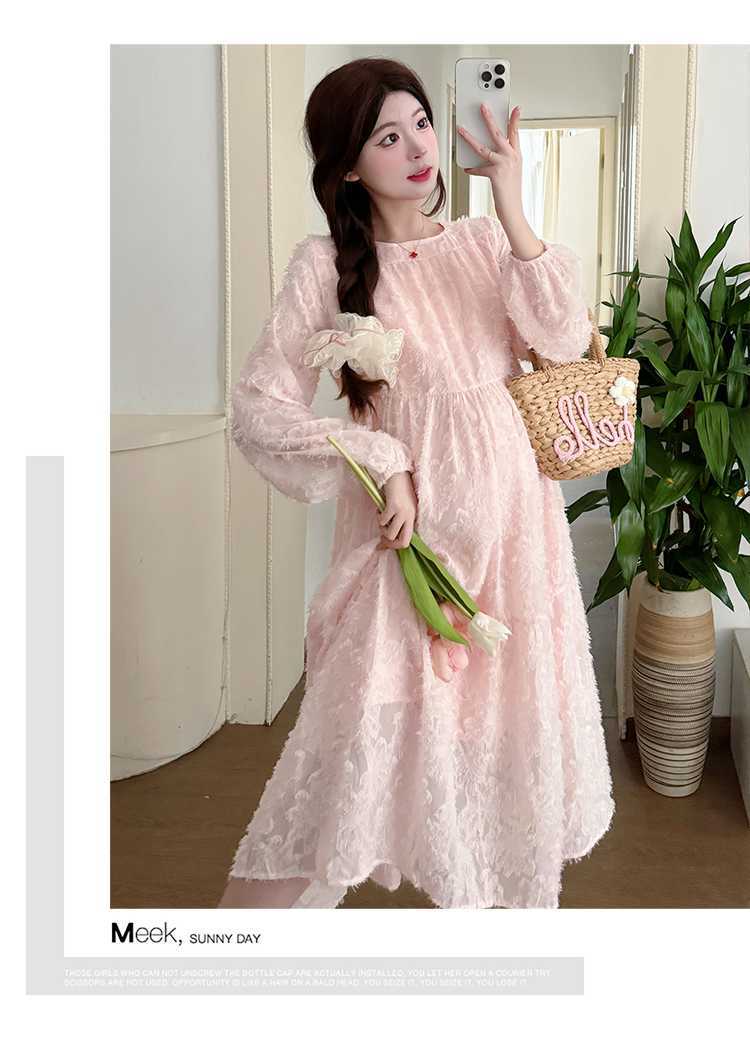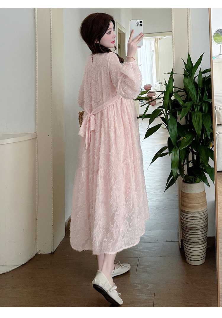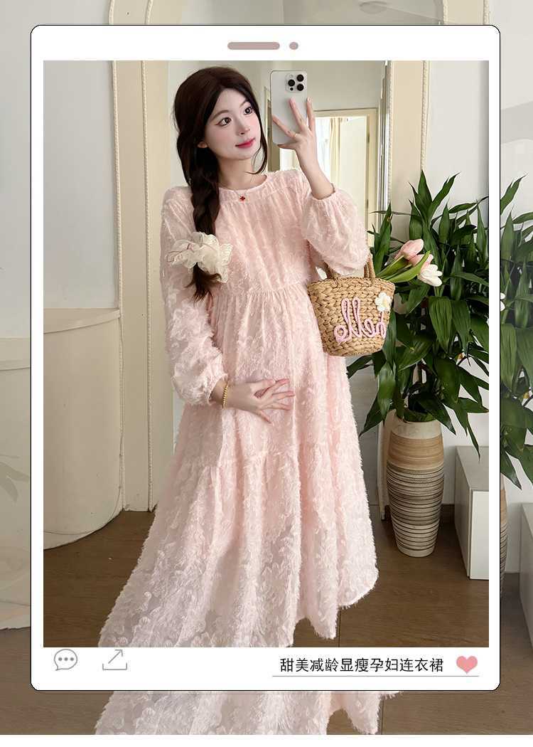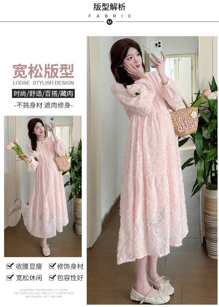 Vestido de maternidad de primavera 2025 con encaje dulce, cintura alta y cobertura abdominal, nuevo vestido de maternidad coreano suelto y sencillo.