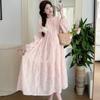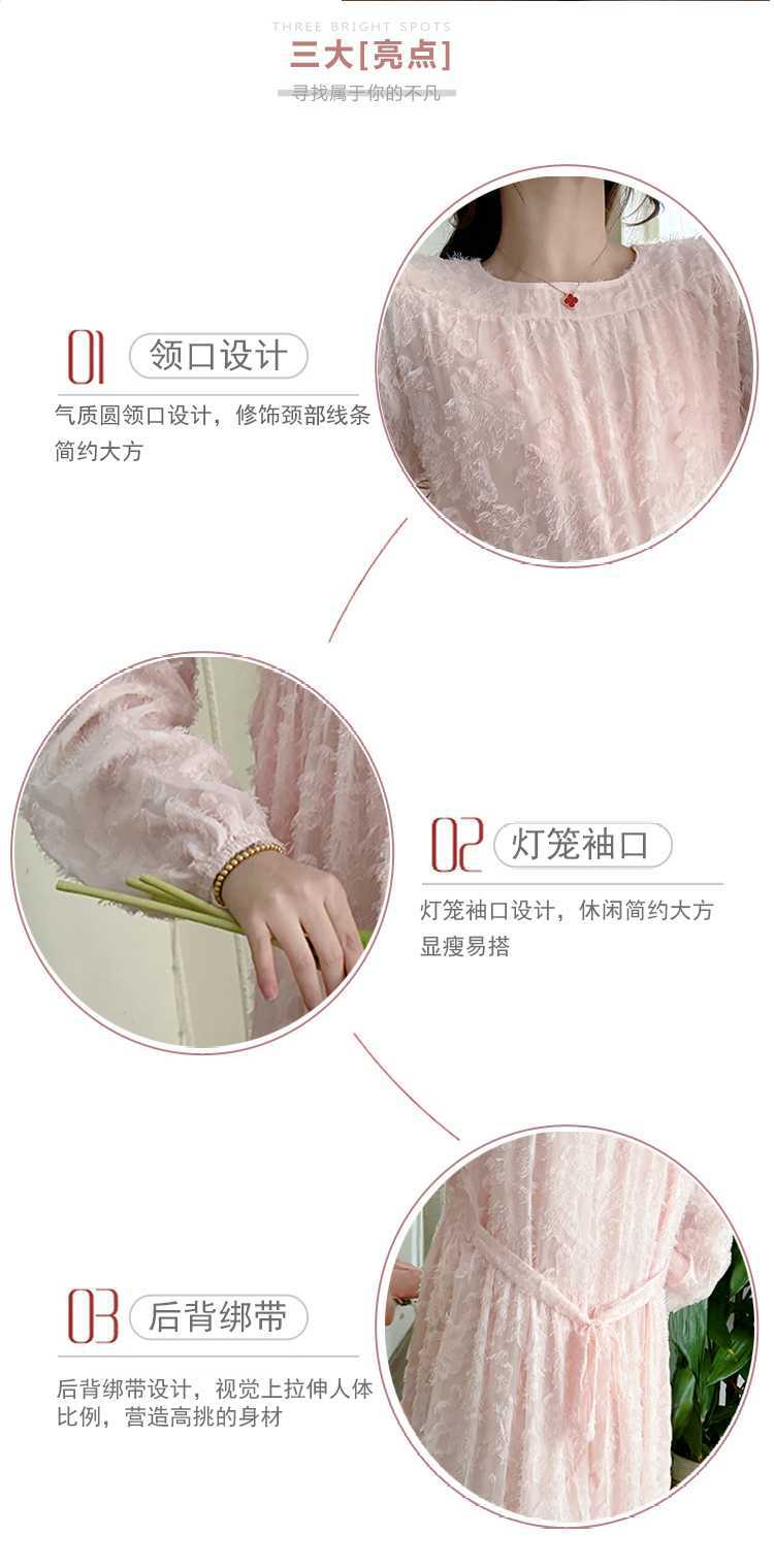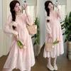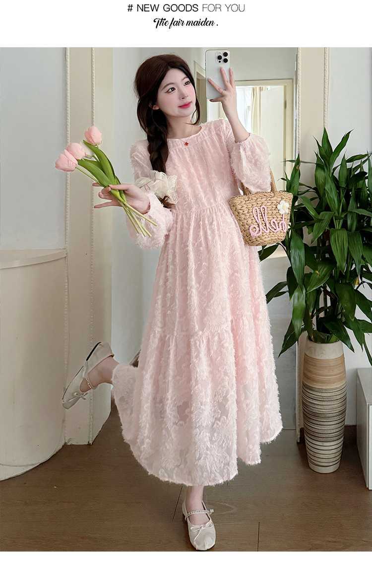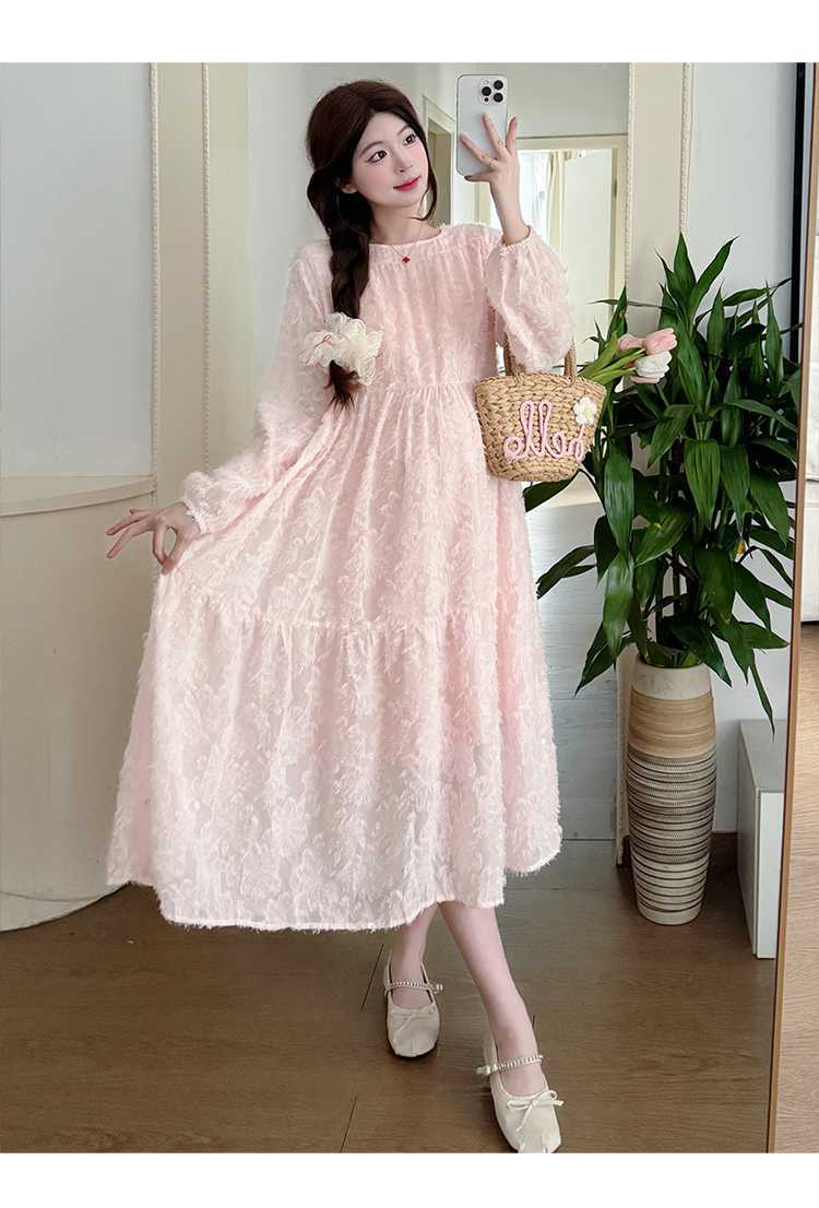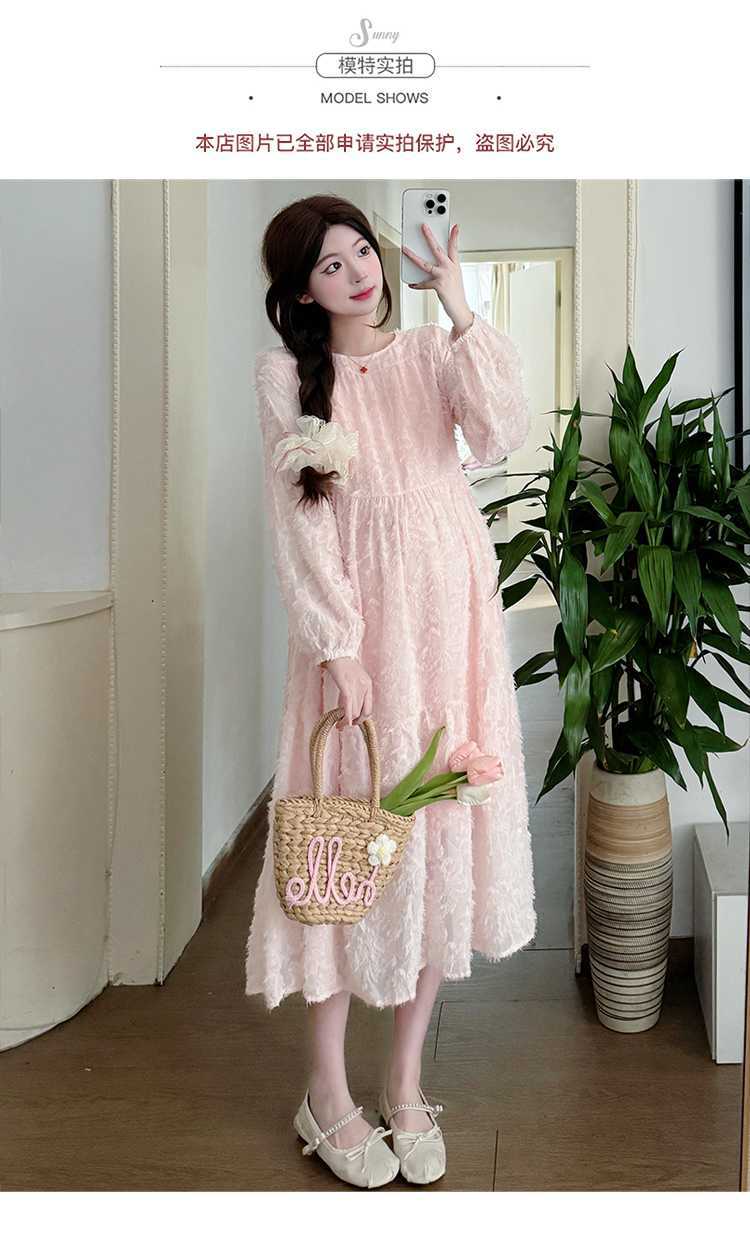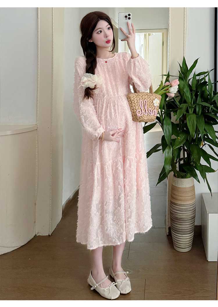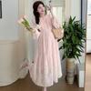 Vestido de maternidad de primavera 2025 con encaje dulce, cintura alta y cobertura abdominal, nuevo vestido de maternidad coreano suelto y sencillo.