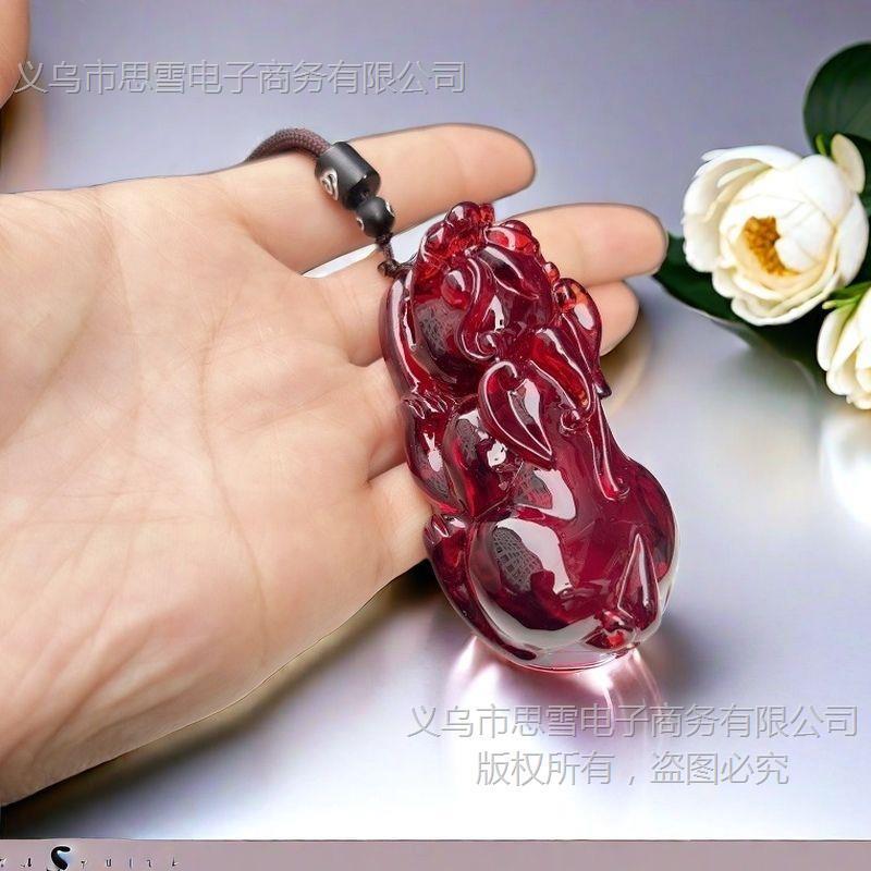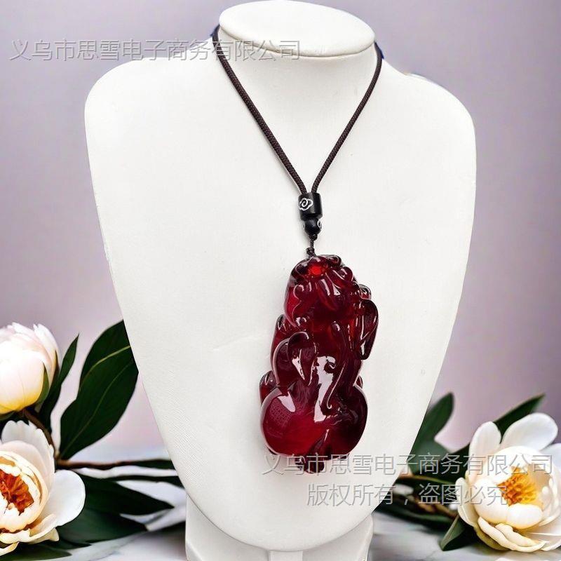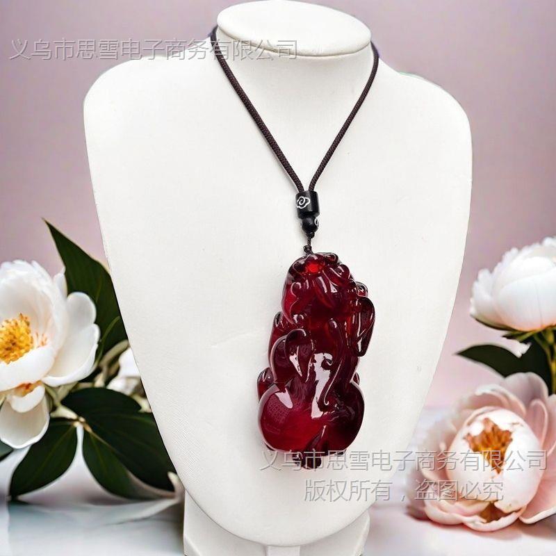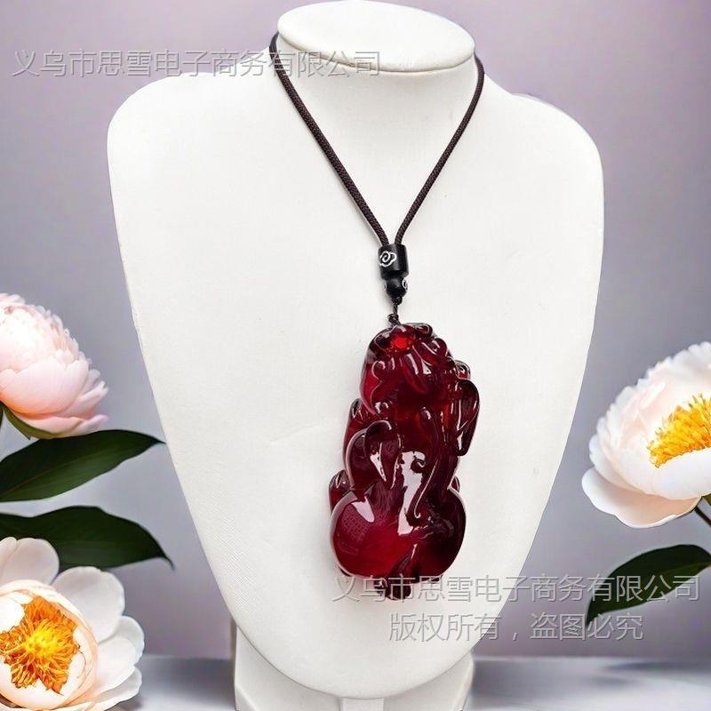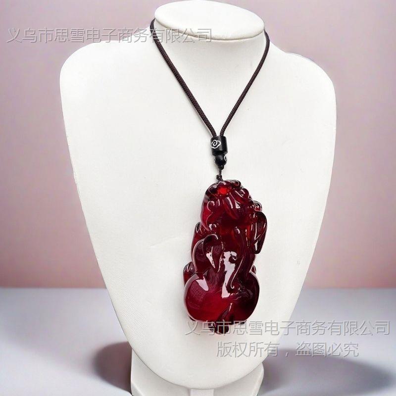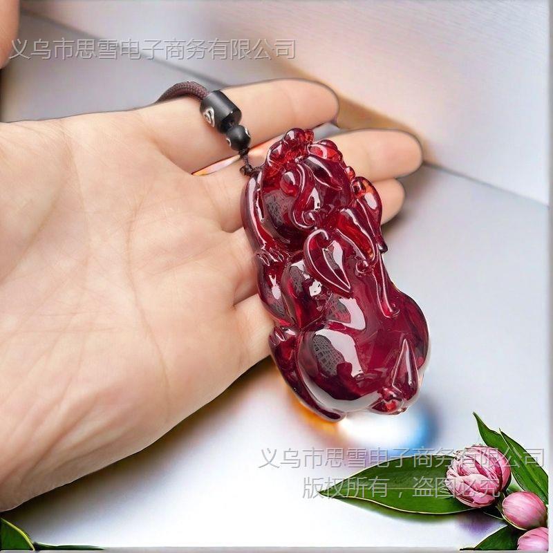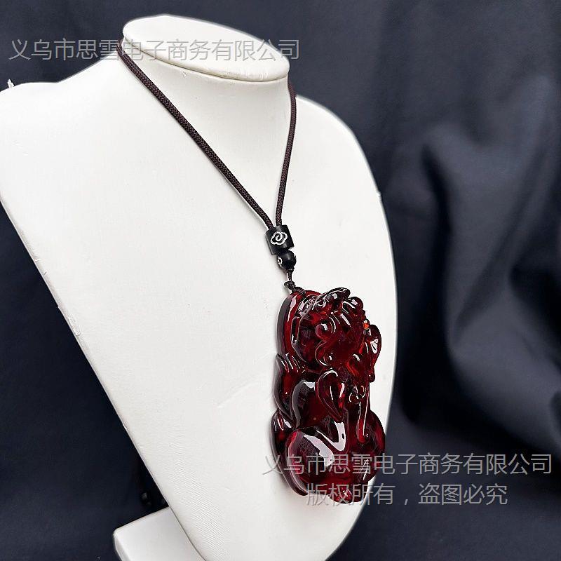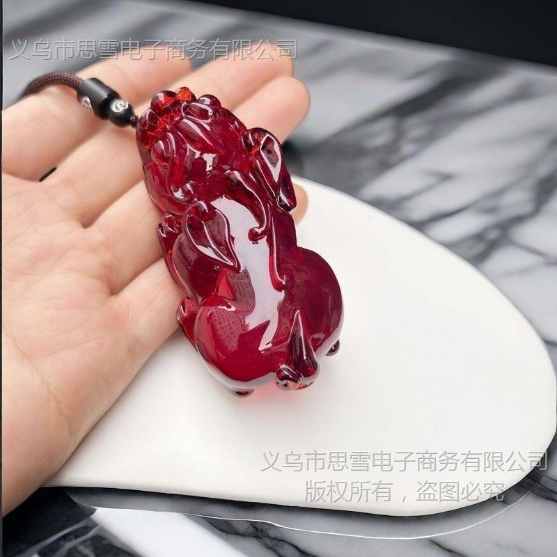 Colgante de cera de abejas Pixiu, adornos de ámbar, collar morado con sangre, joyería, regalo, mango de Pixiu con caca de sangre
