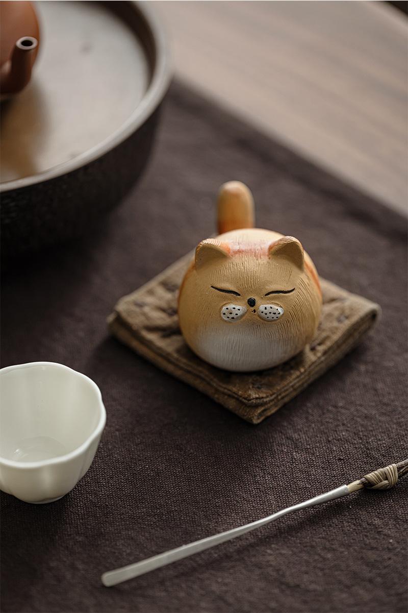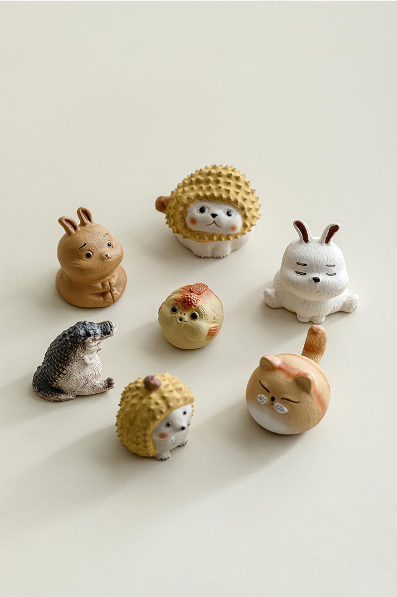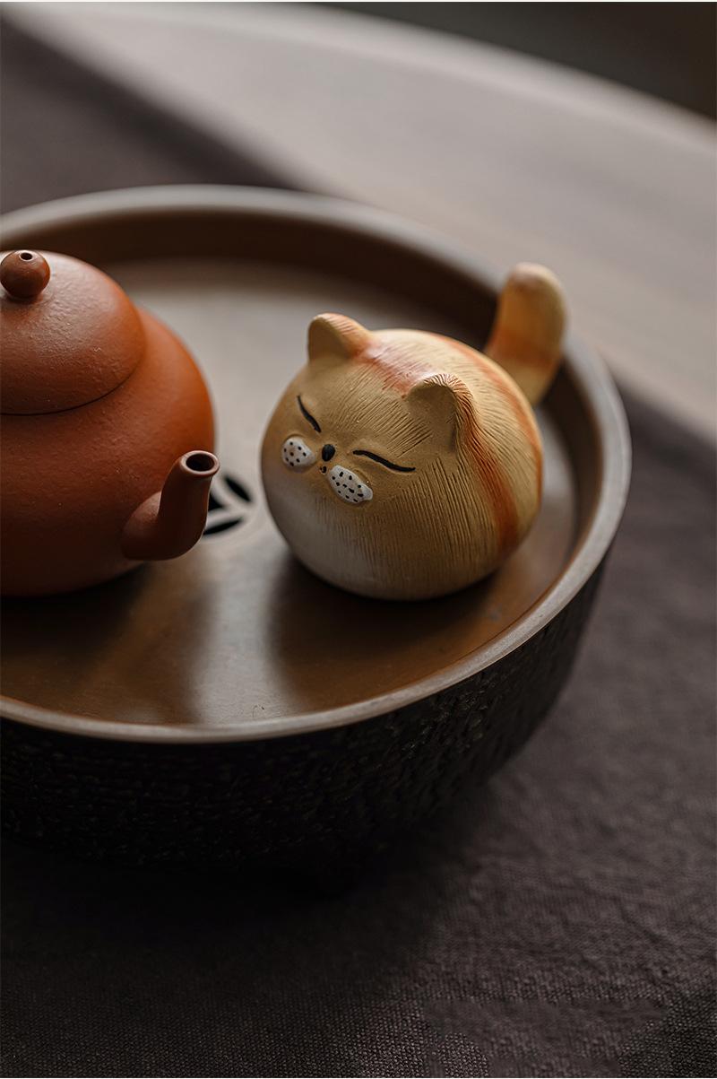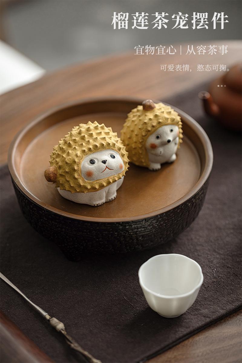 Mascota de té de arena morada, gato durian, decoración hecha a mano, juego de té de erizo, linda y linda ceremonia del té, mesa de té, juego de té, accesorios