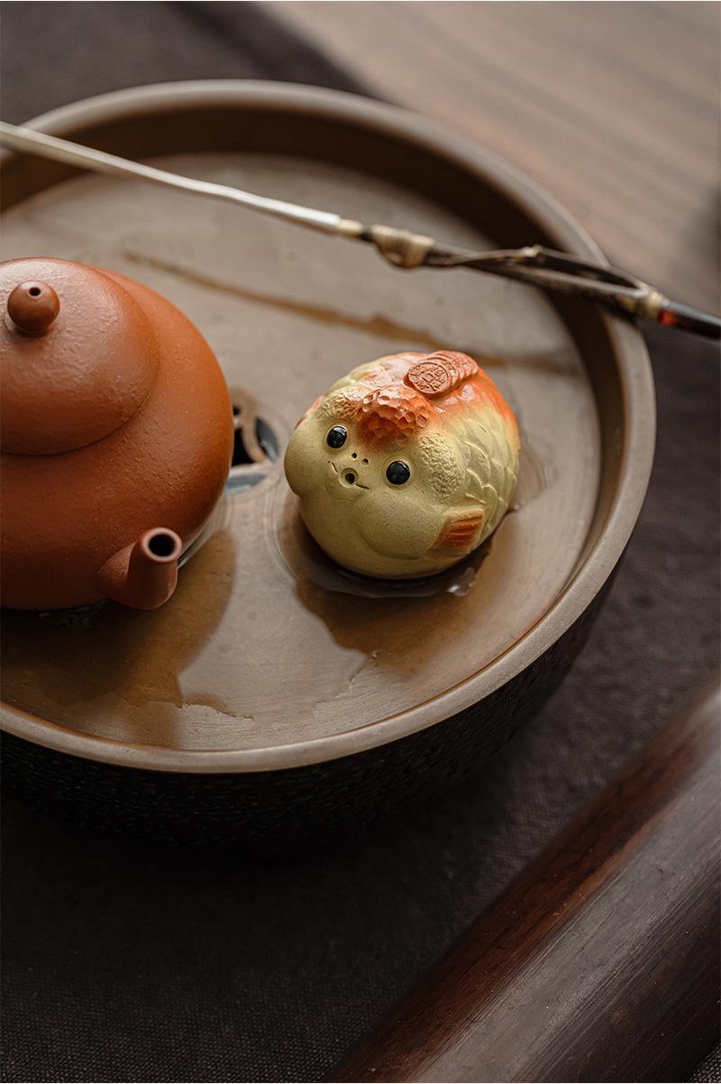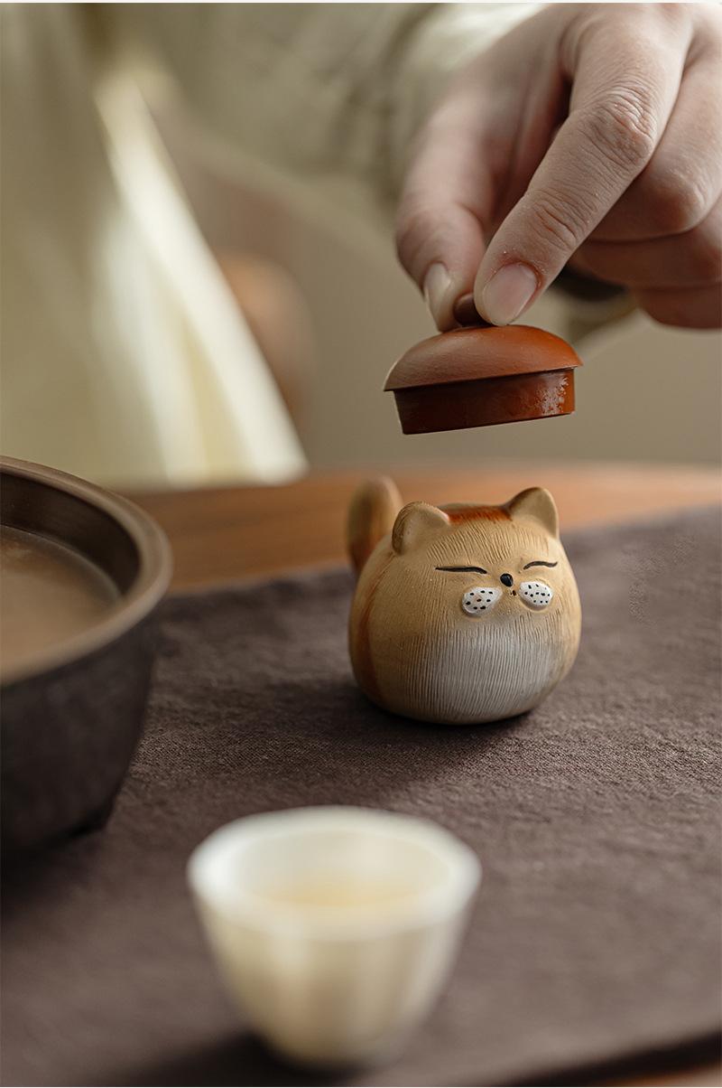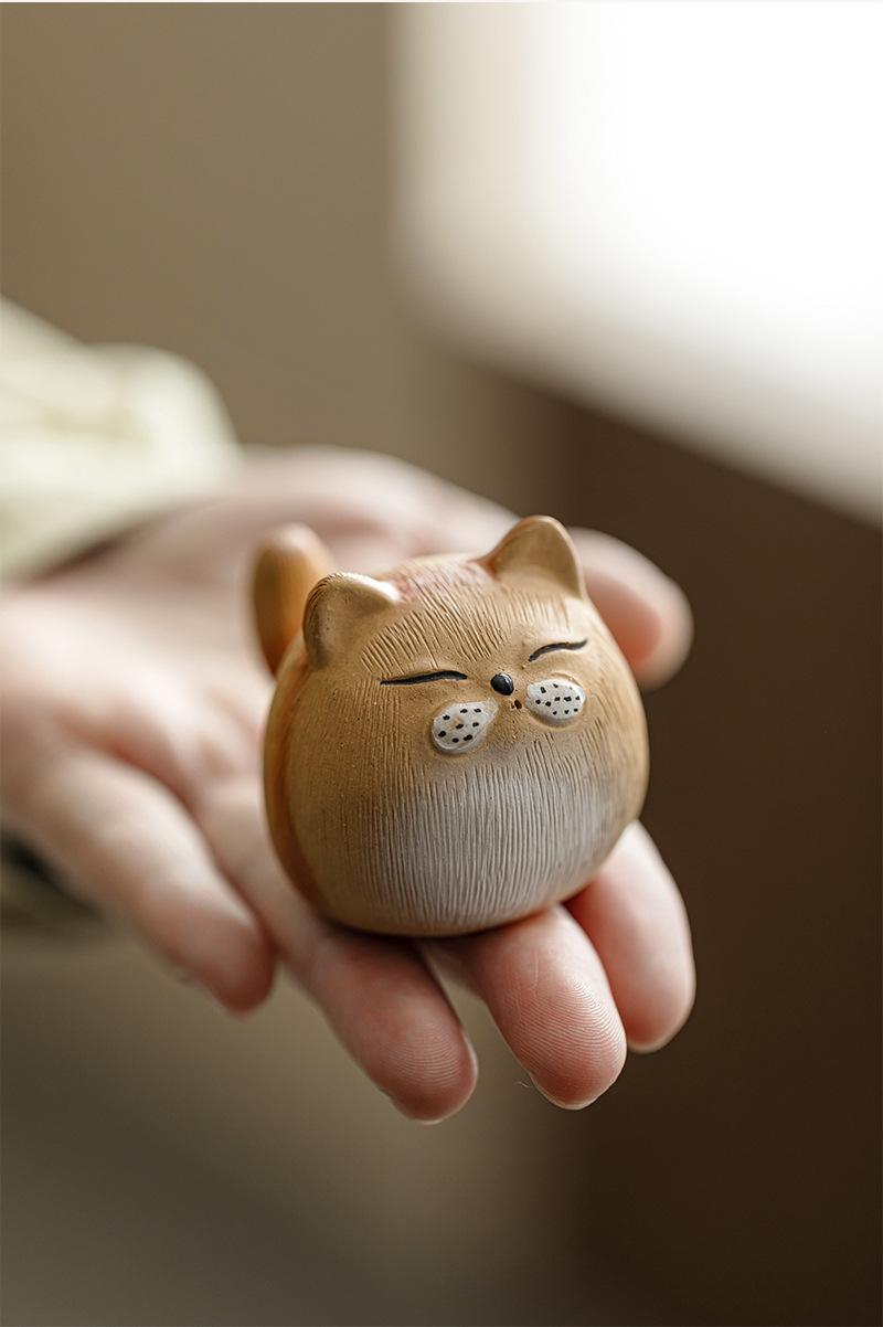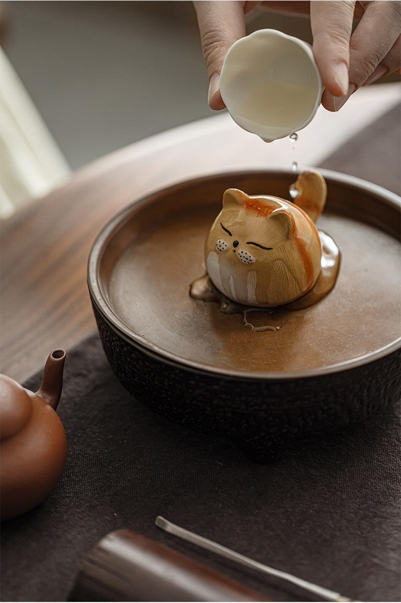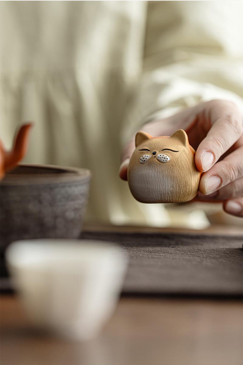 Mascota de té de arena morada, gato durian, decoración hecha a mano, juego de té de erizo, linda y linda ceremonia del té, mesa de té, juego de té, accesorios